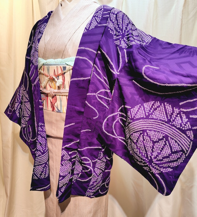 アンティーク 紫色地に絞りの羽織り〜大きな毬柄〜