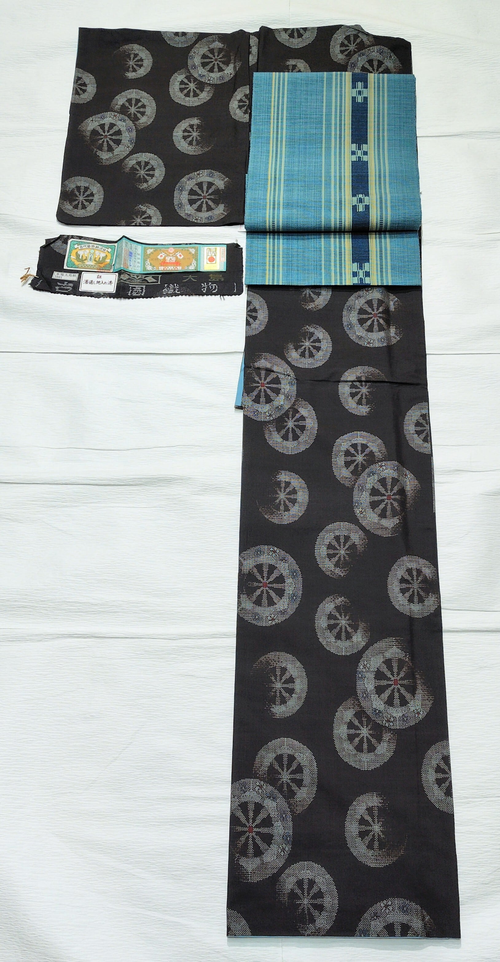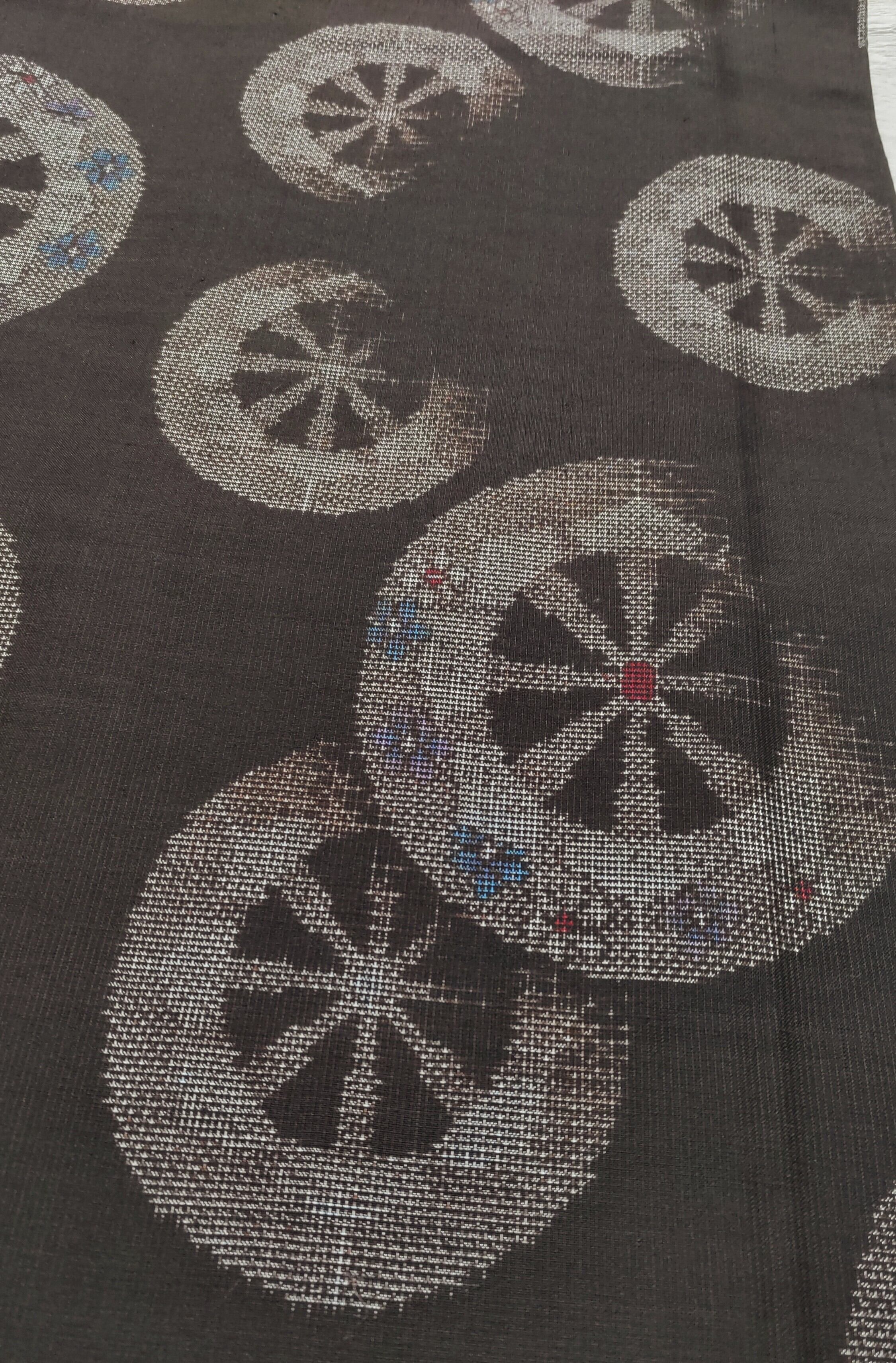 こちらは伝統工芸品の丸伝マーク、古代染色 純泥染め、組合の証紙付きの鹿児島の本場大島紬です。