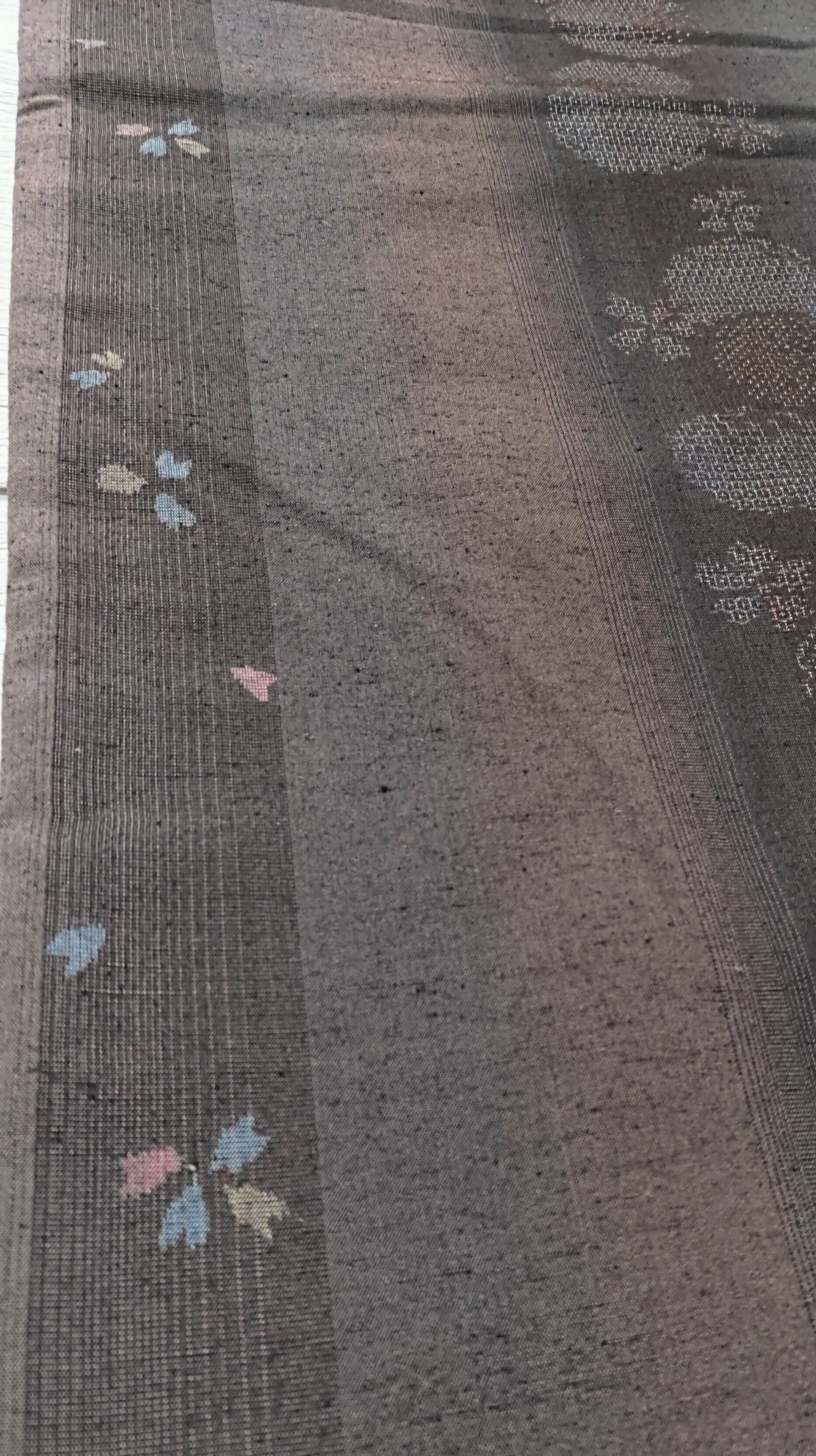 こちらは重要無形文化財指定の最高級品 本場結城紬ではなく、結城紬を気軽に着たい、試してみたい、よりモダンな色柄を楽しみたいという方にも手に取りやすく…と作られている、極めて近年タイプの結城紬です。