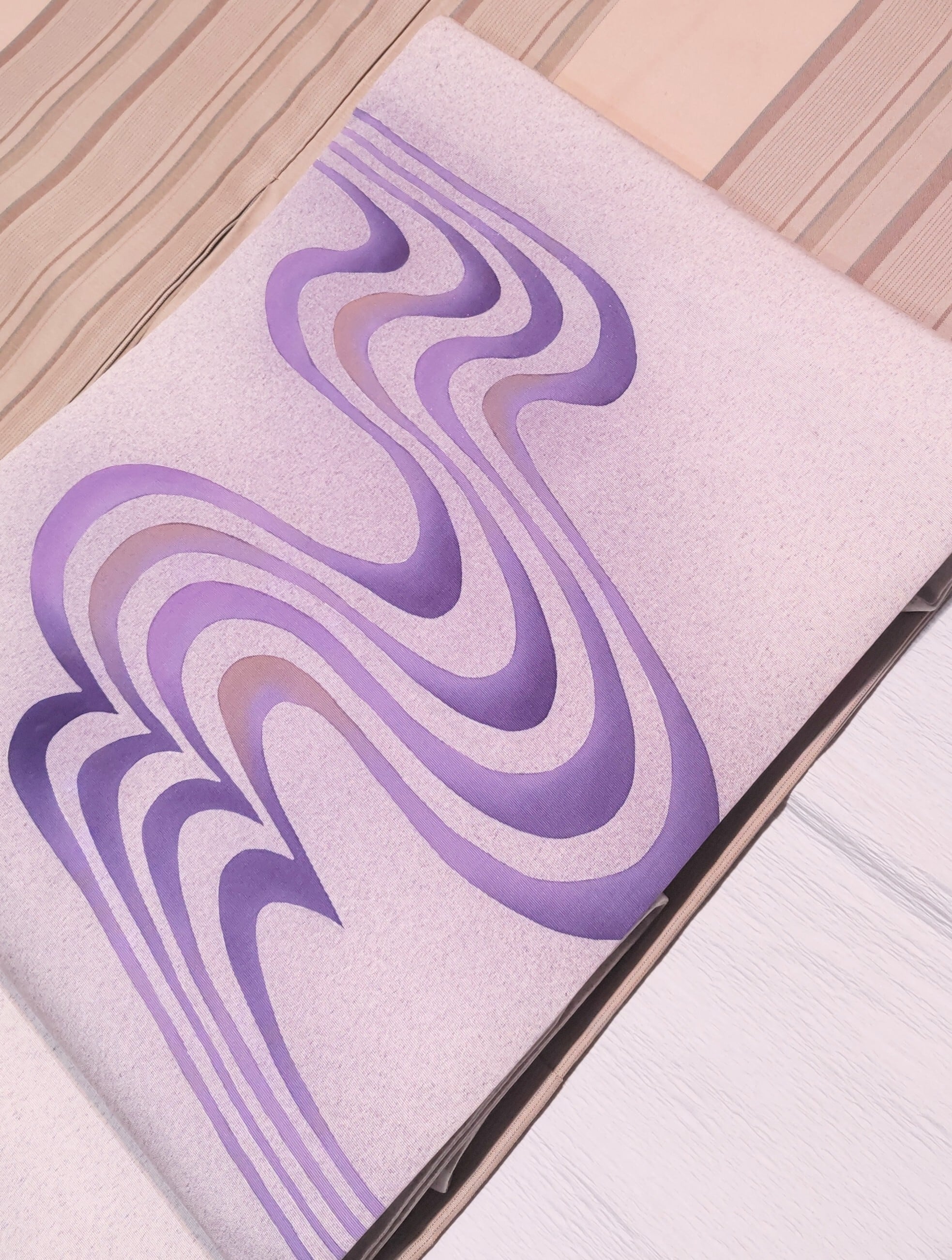灰色地にラベンダー色の流水柄がシックで美しい印象。