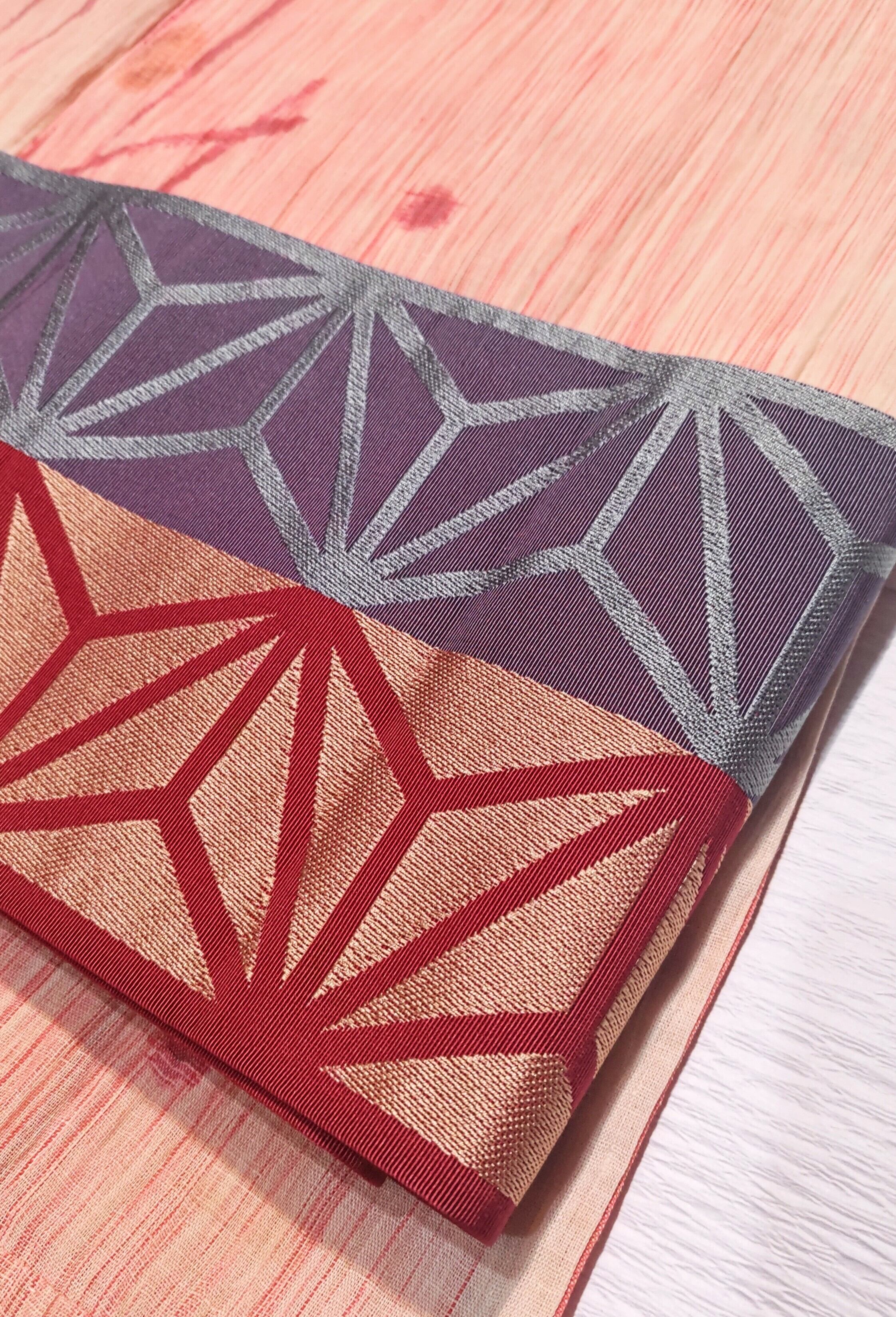 個性的な色合い 麻の葉柄の博多織り半幅帯