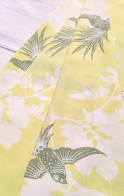 セオα浴衣 淡い黄緑色に異国の鳥柄です。