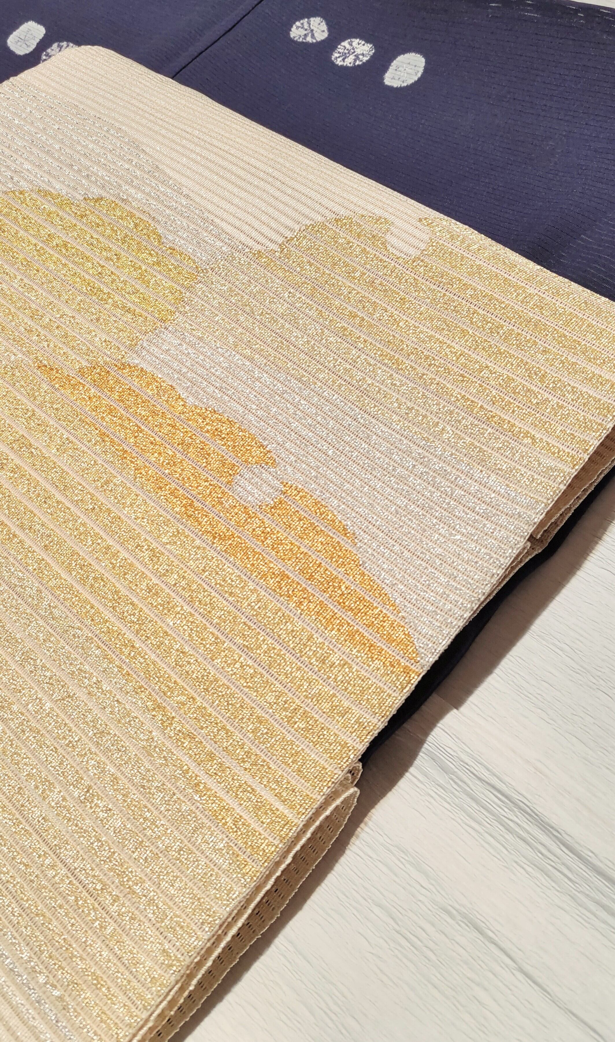 白地に金銀行糸の色合いが涼しげで、夏のお着物や上質な浴衣と相性抜群◎