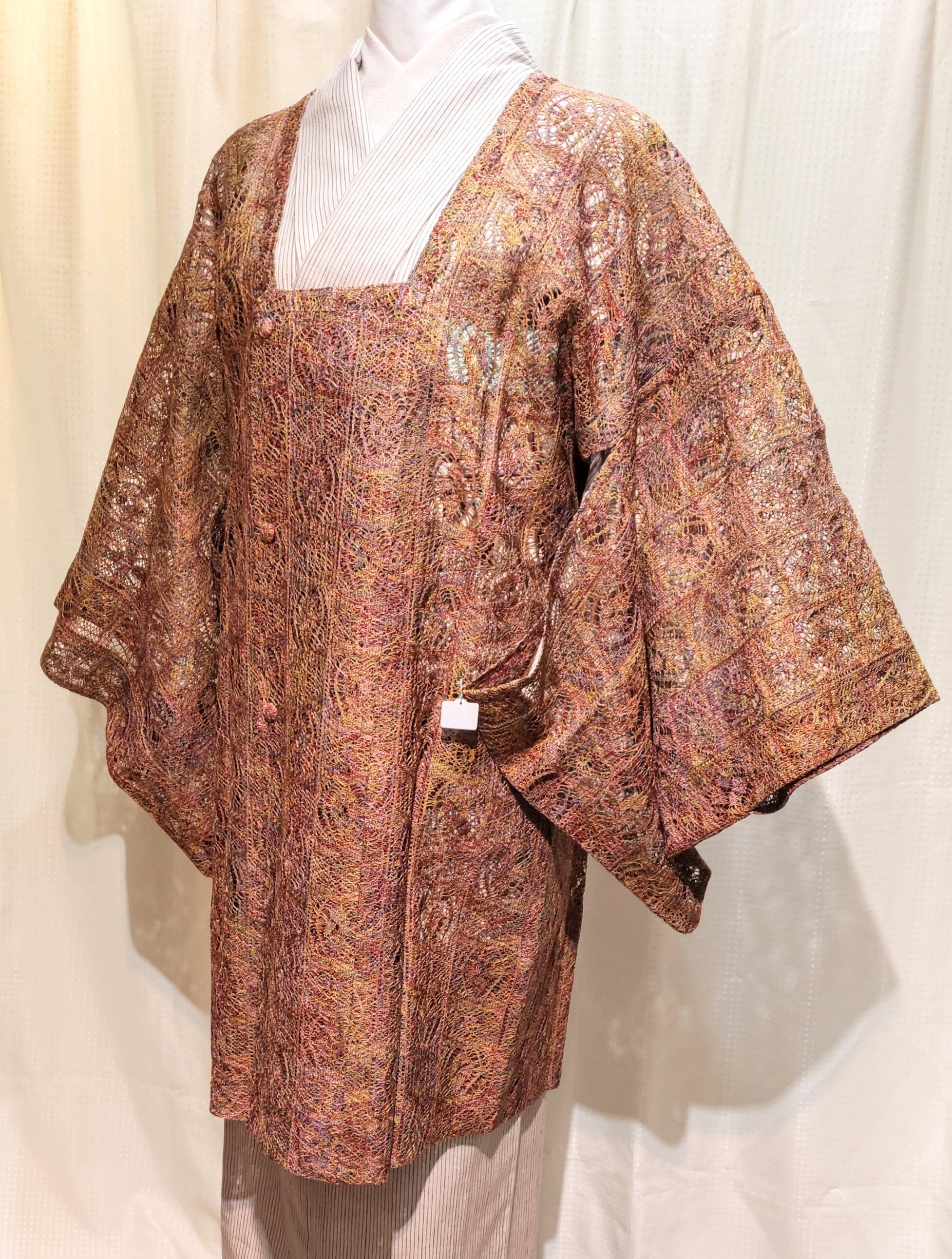 とても細い絹の糸を丁寧に繊細に編んで作られたレース道行き。