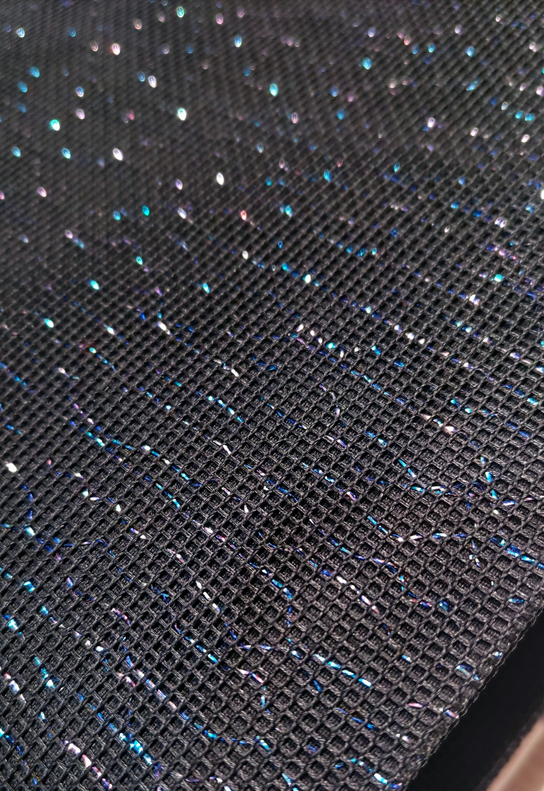 素材は黒色の部分はおそらく絹、キラキラした糸は素材不明です。
