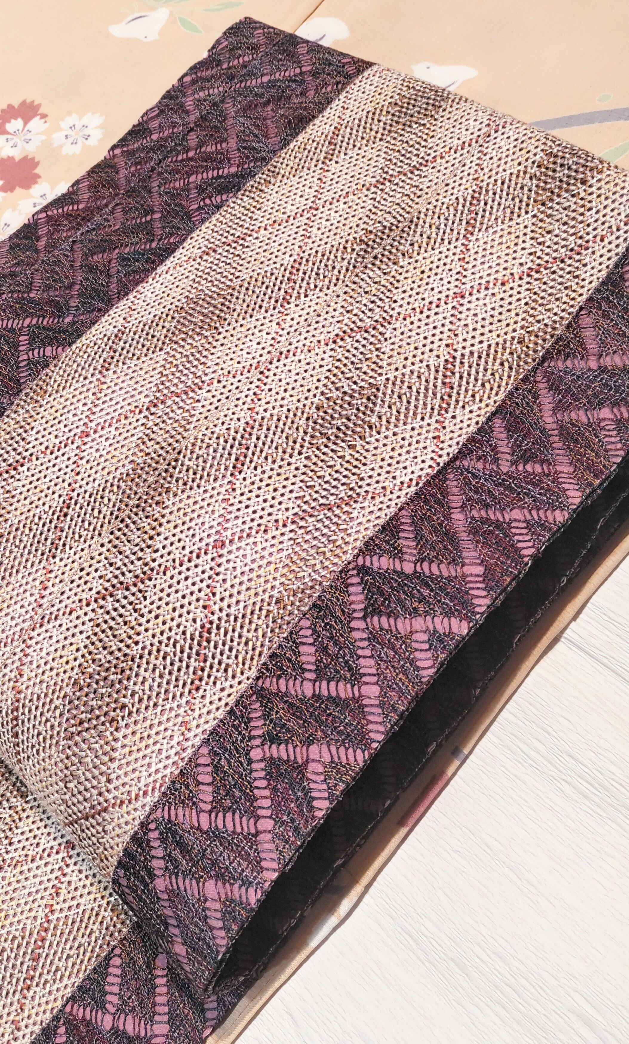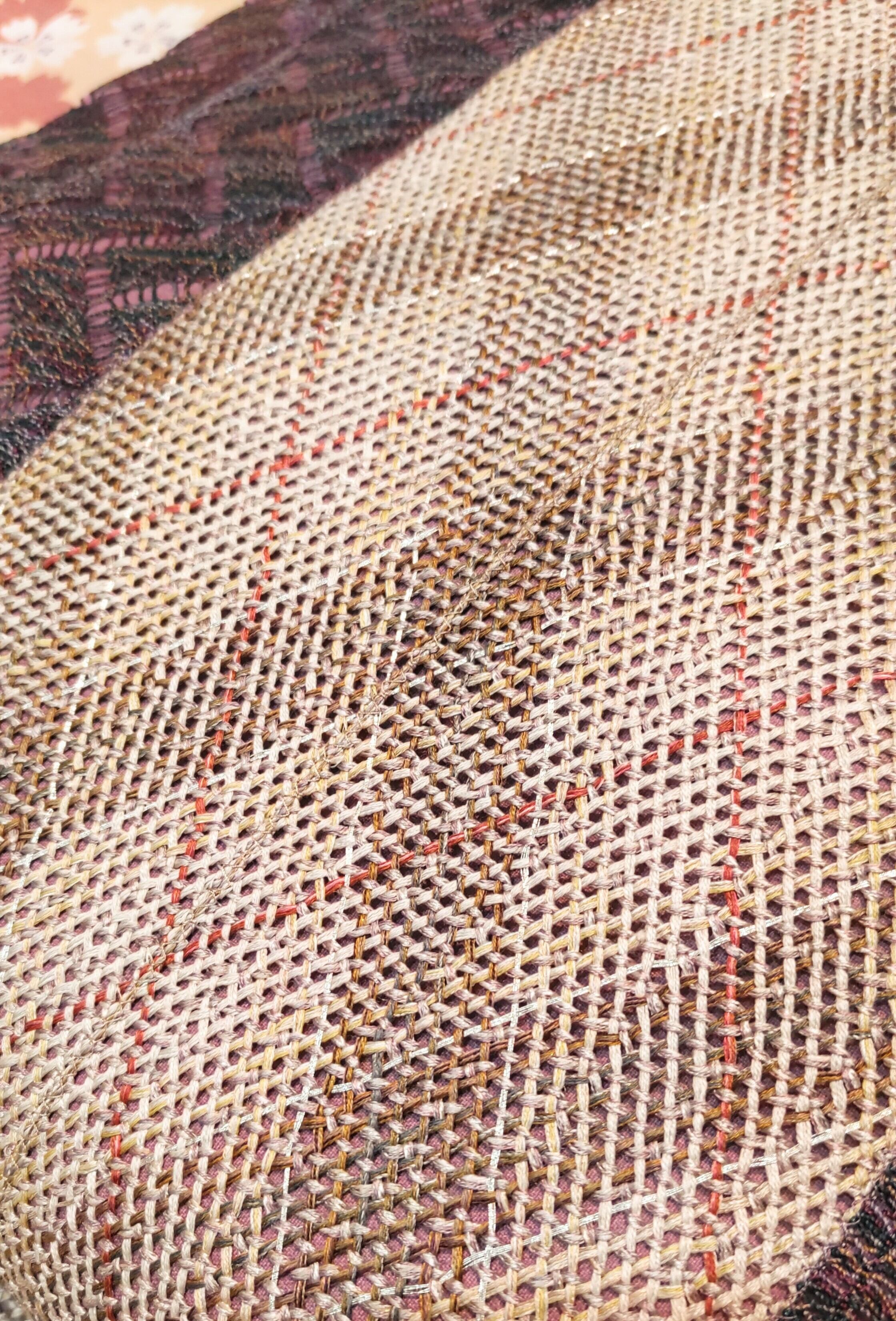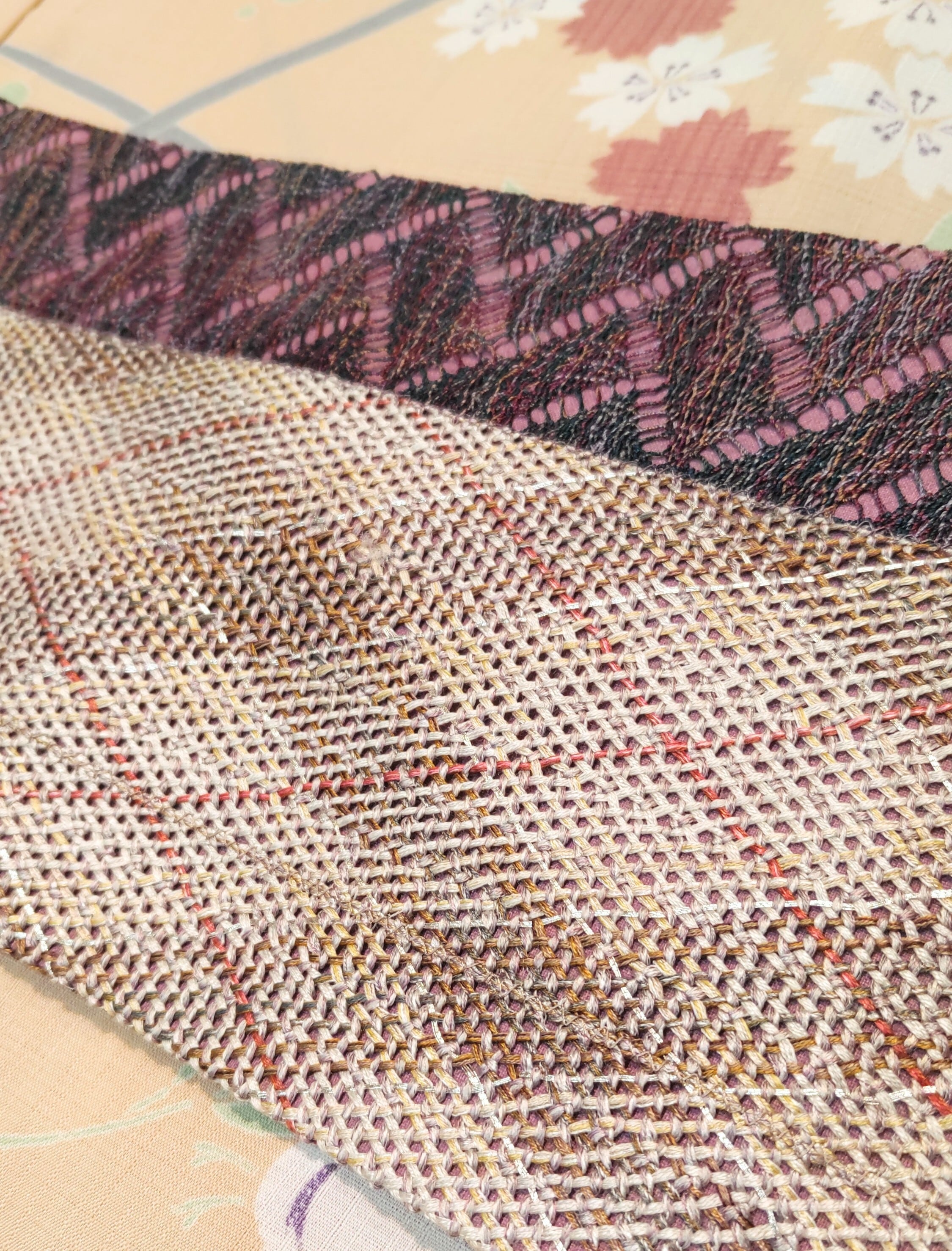 こちらは組紐のような織りとレース編みを組み合わせた夏向きの名古屋帯です。