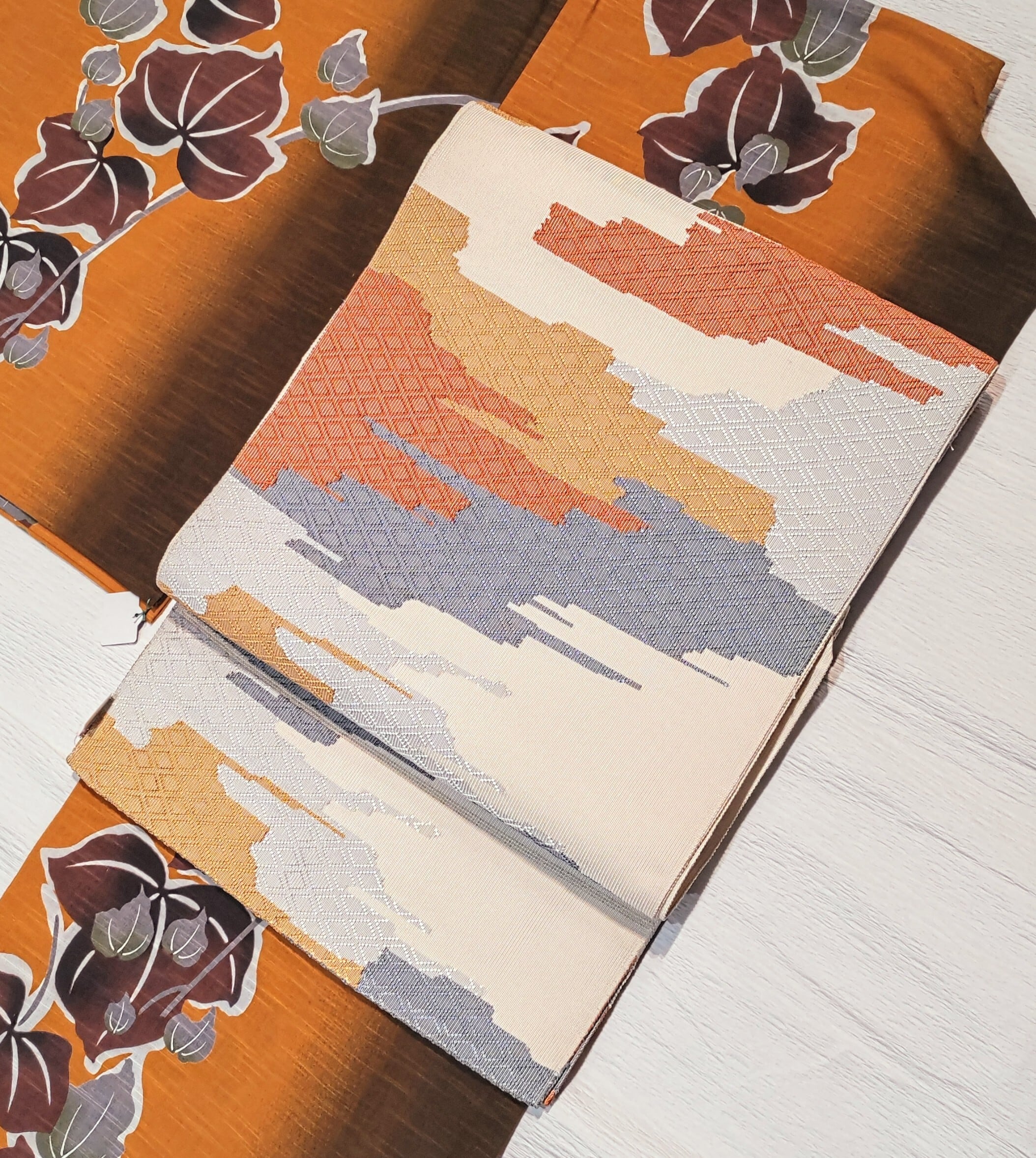 (コーディネートの参考にお着物と帯を組み合わせている物もありますが、単品での販売となります。参考コーディネートでお召し頂く場合はそれぞれご購入くださいませ。)