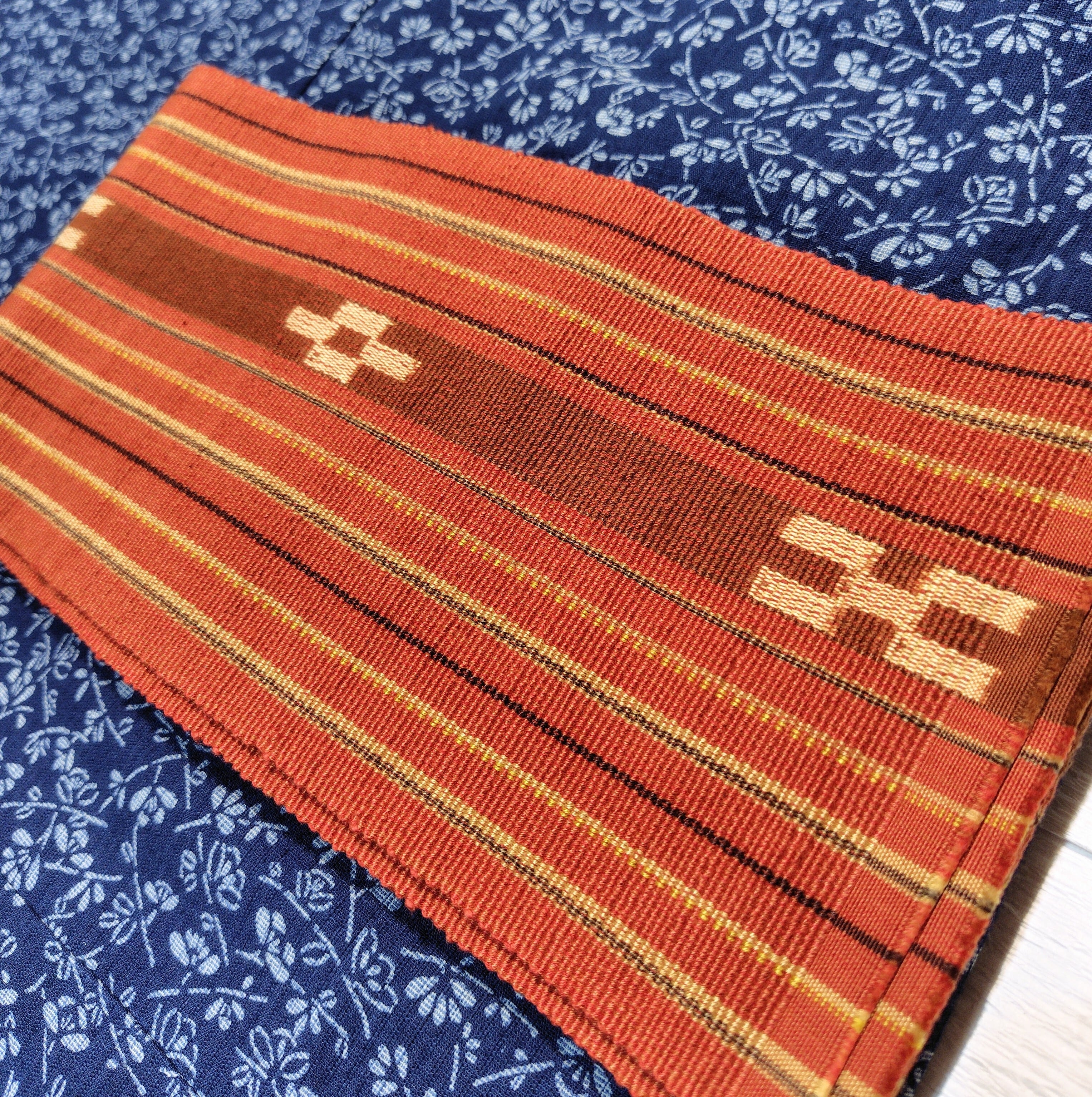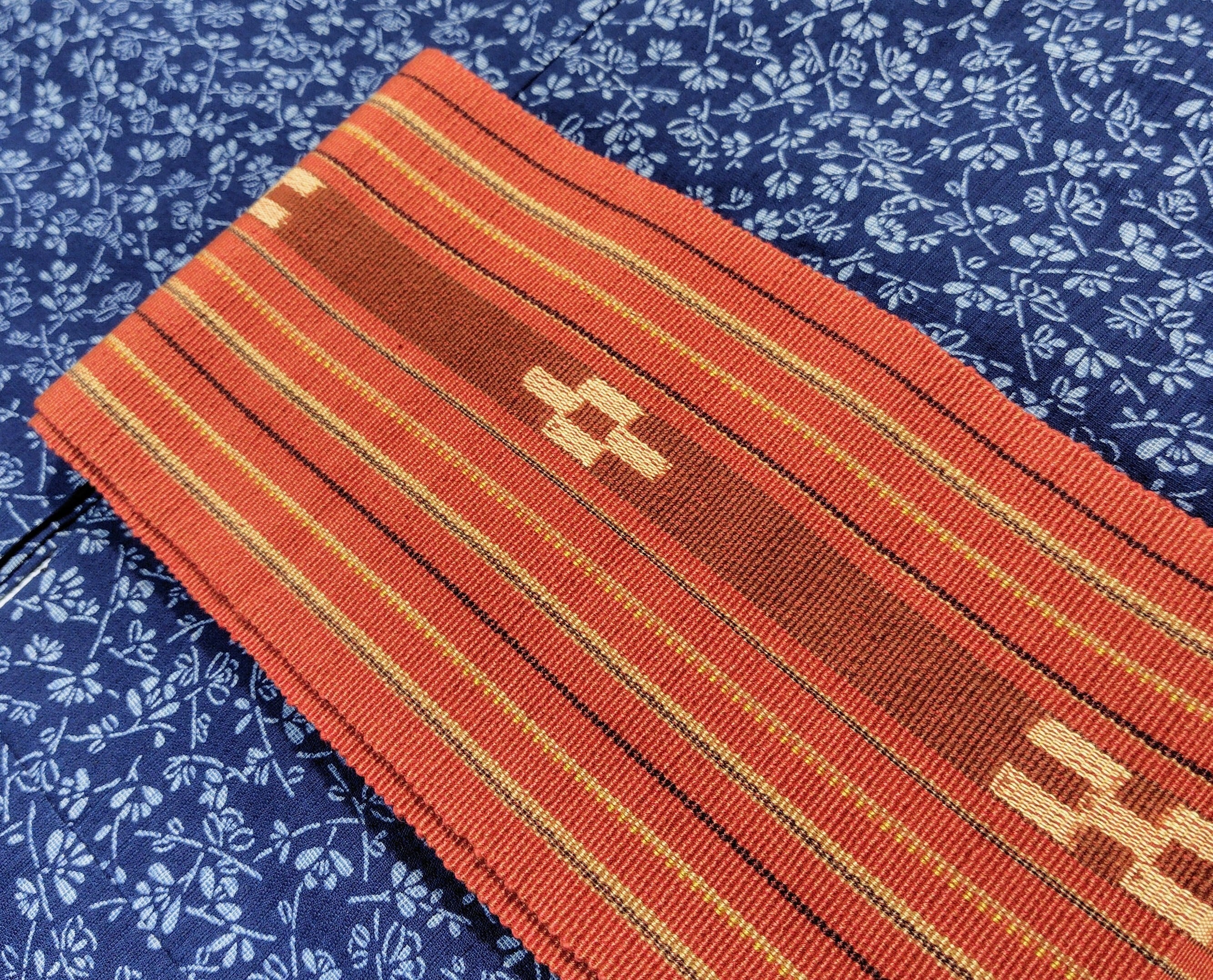 八重山みんさーの半幅帯 煉瓦色です。