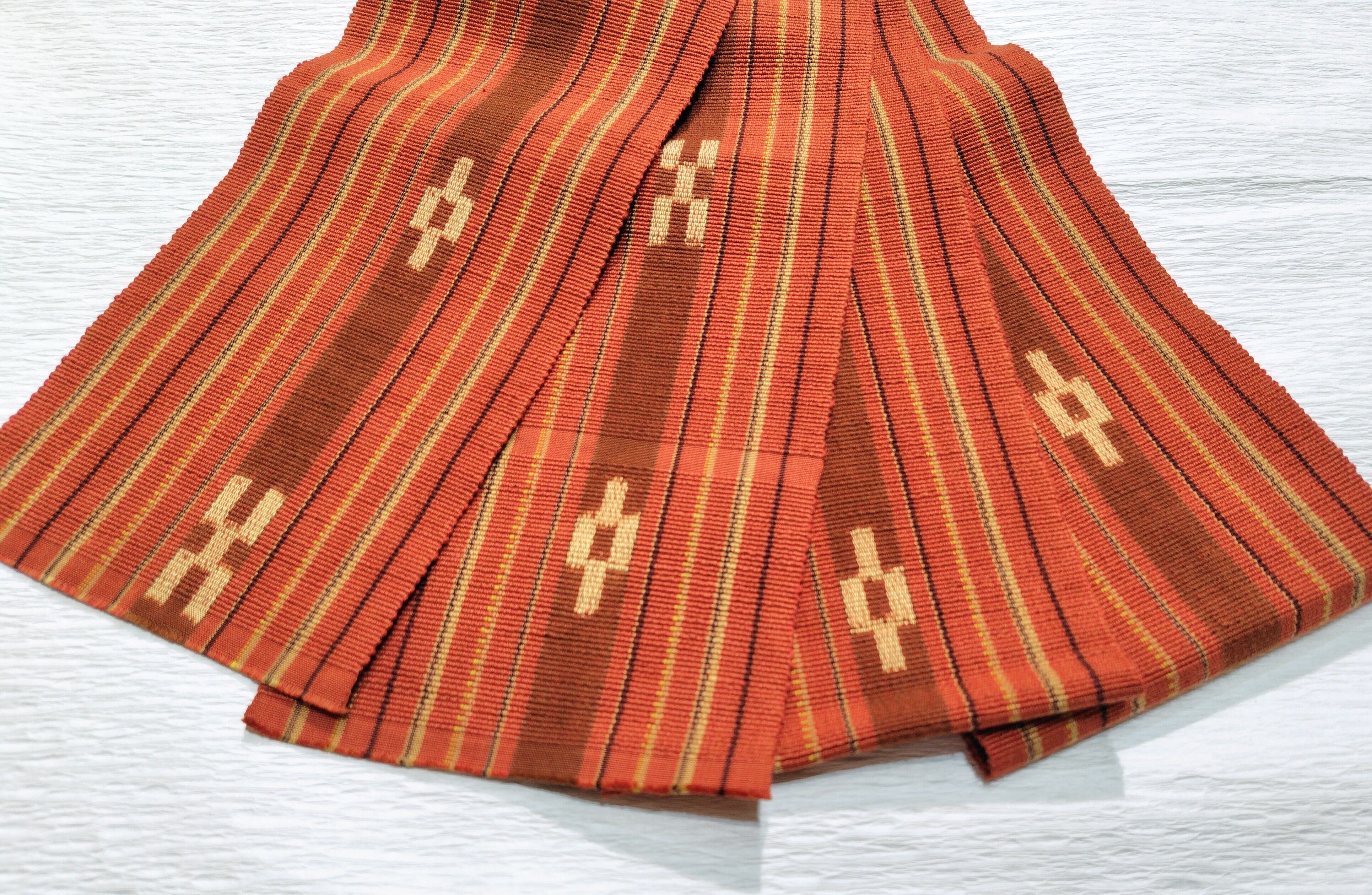 八重山みんさーの半幅帯 煉瓦色