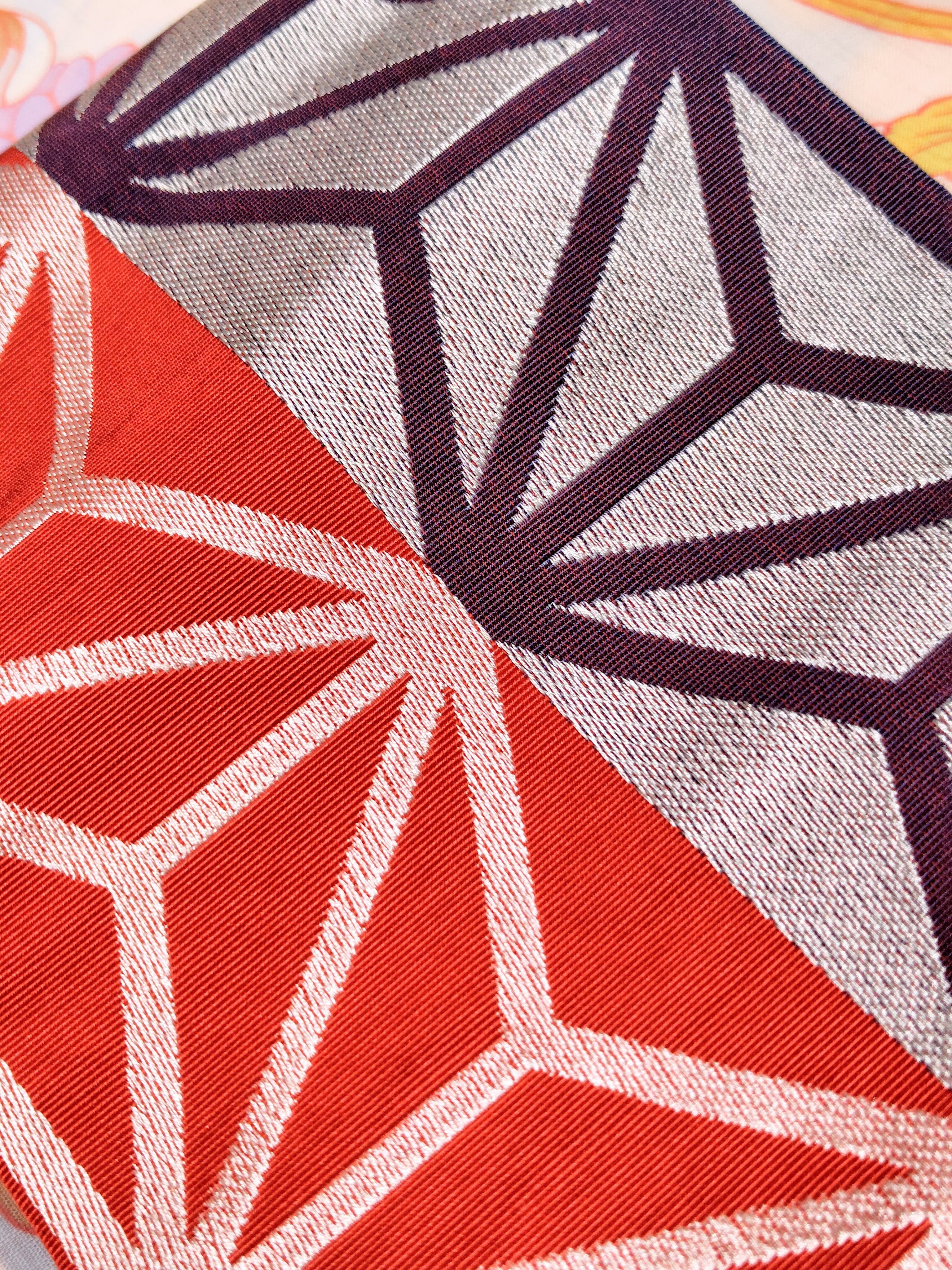変わり麻の葉柄の博多織り半幅帯 未使用品です。