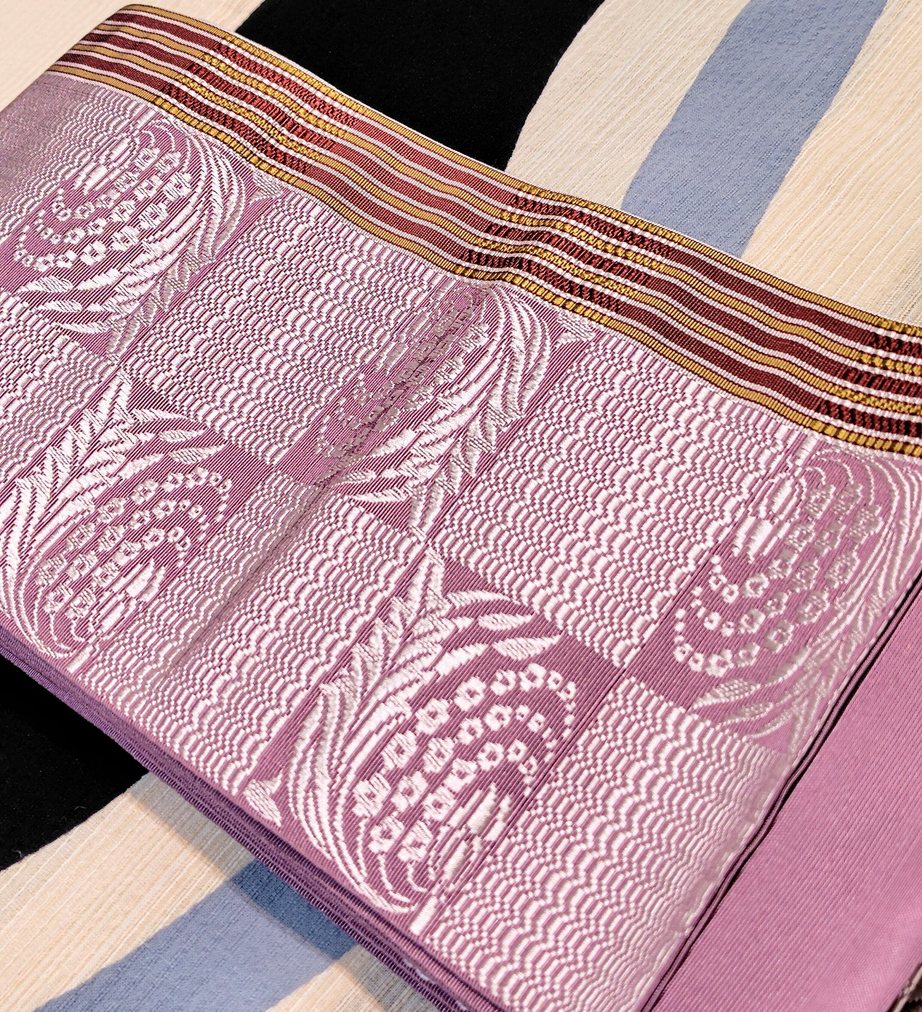 淡い紫色に稲穂柄の博多織の半幅帯 リバーシブル