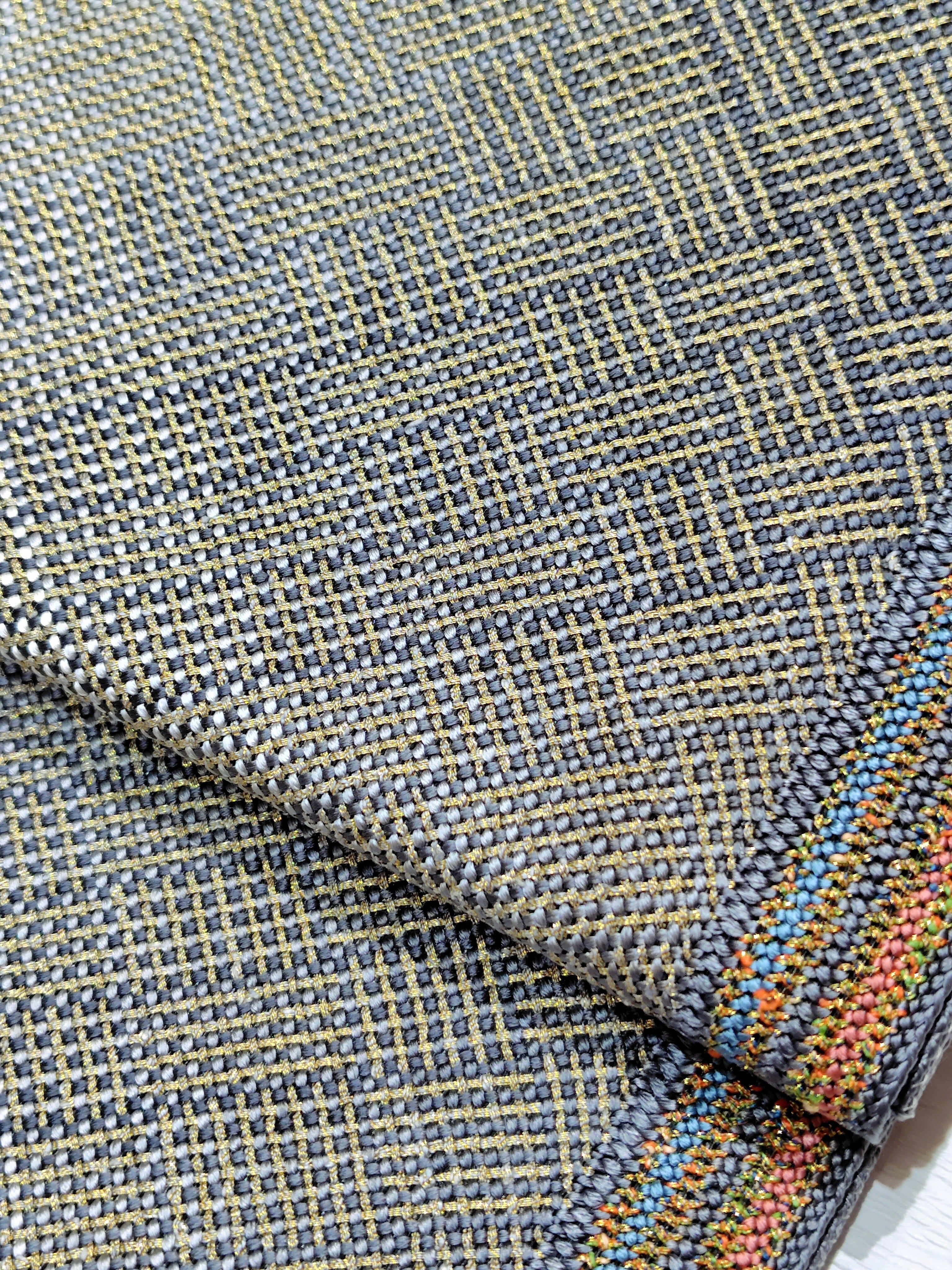 タータンチェックや網目、三木崩しのような柄に見える織り。