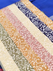 モダンな色柄で大人気の井上絹織さんのラベルつき。