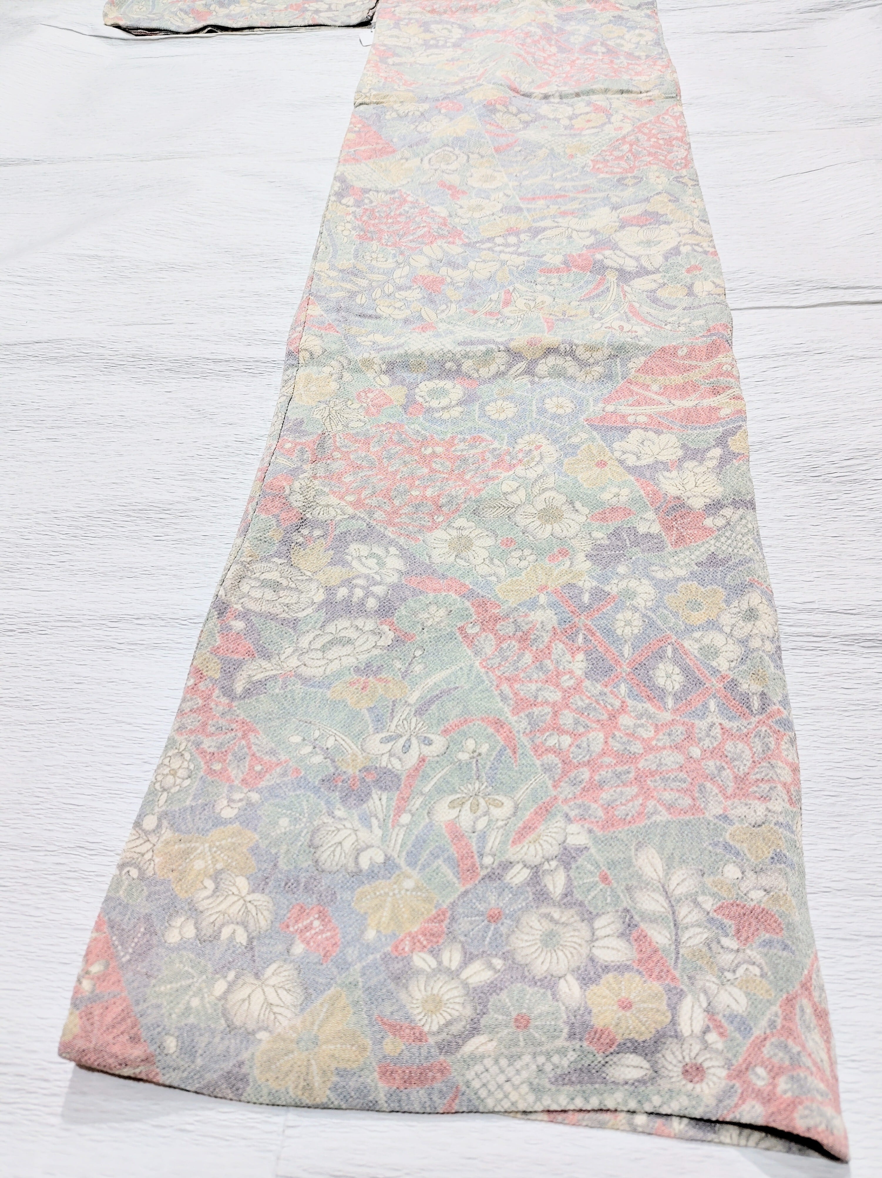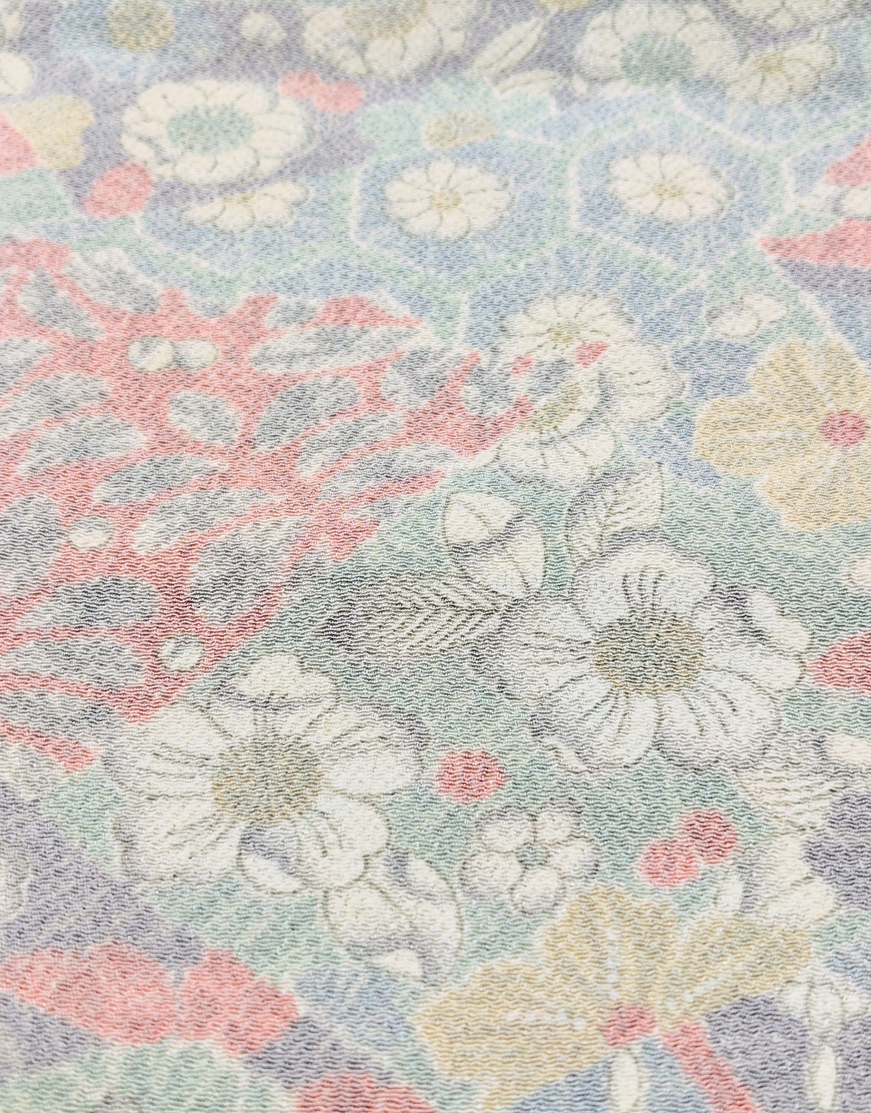 単衣 柔らかな縮緬 淡い色合いの小紋
