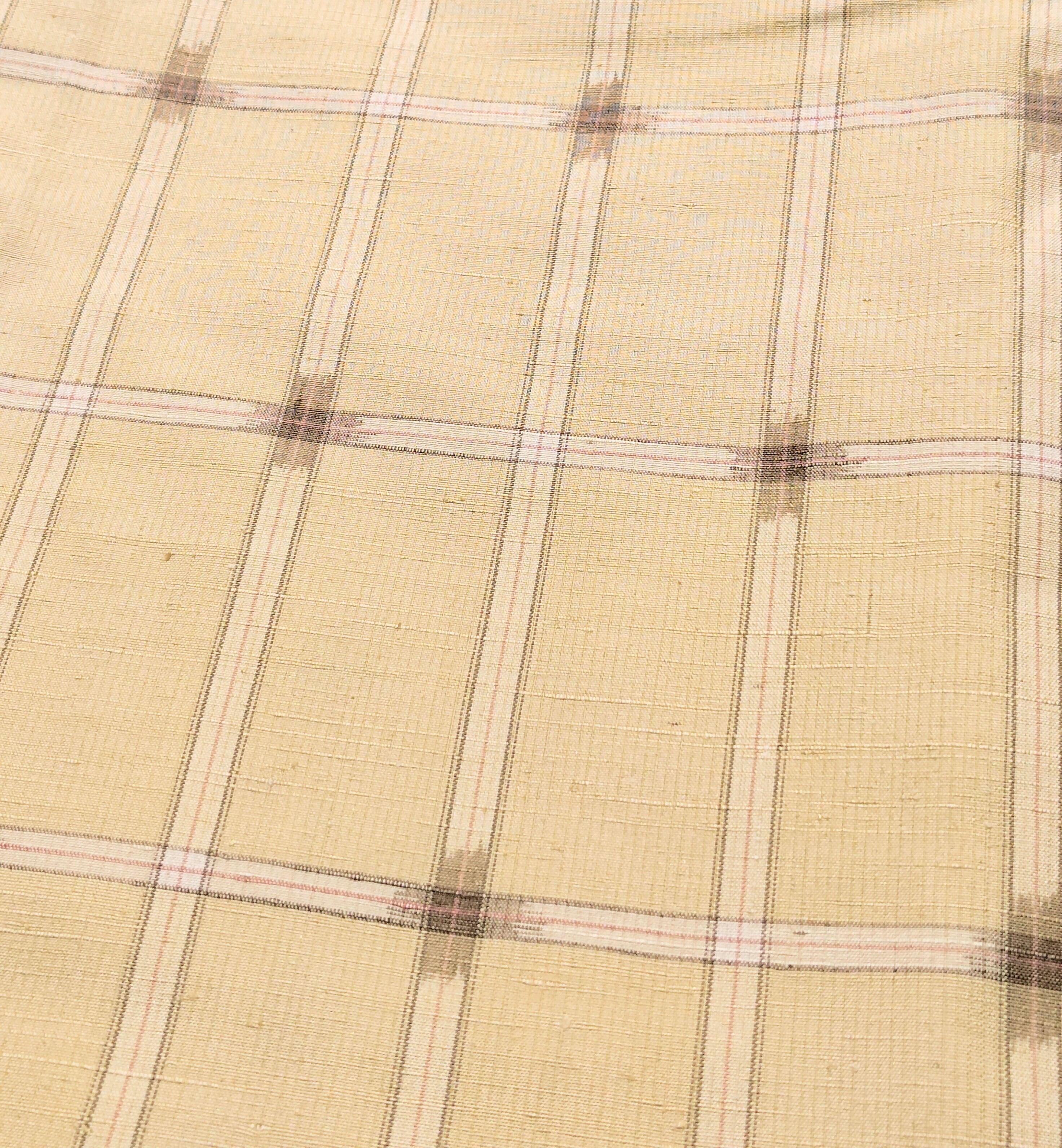 裄 約69.5cm 単衣の紬 生成り地にグレー色のチェック柄