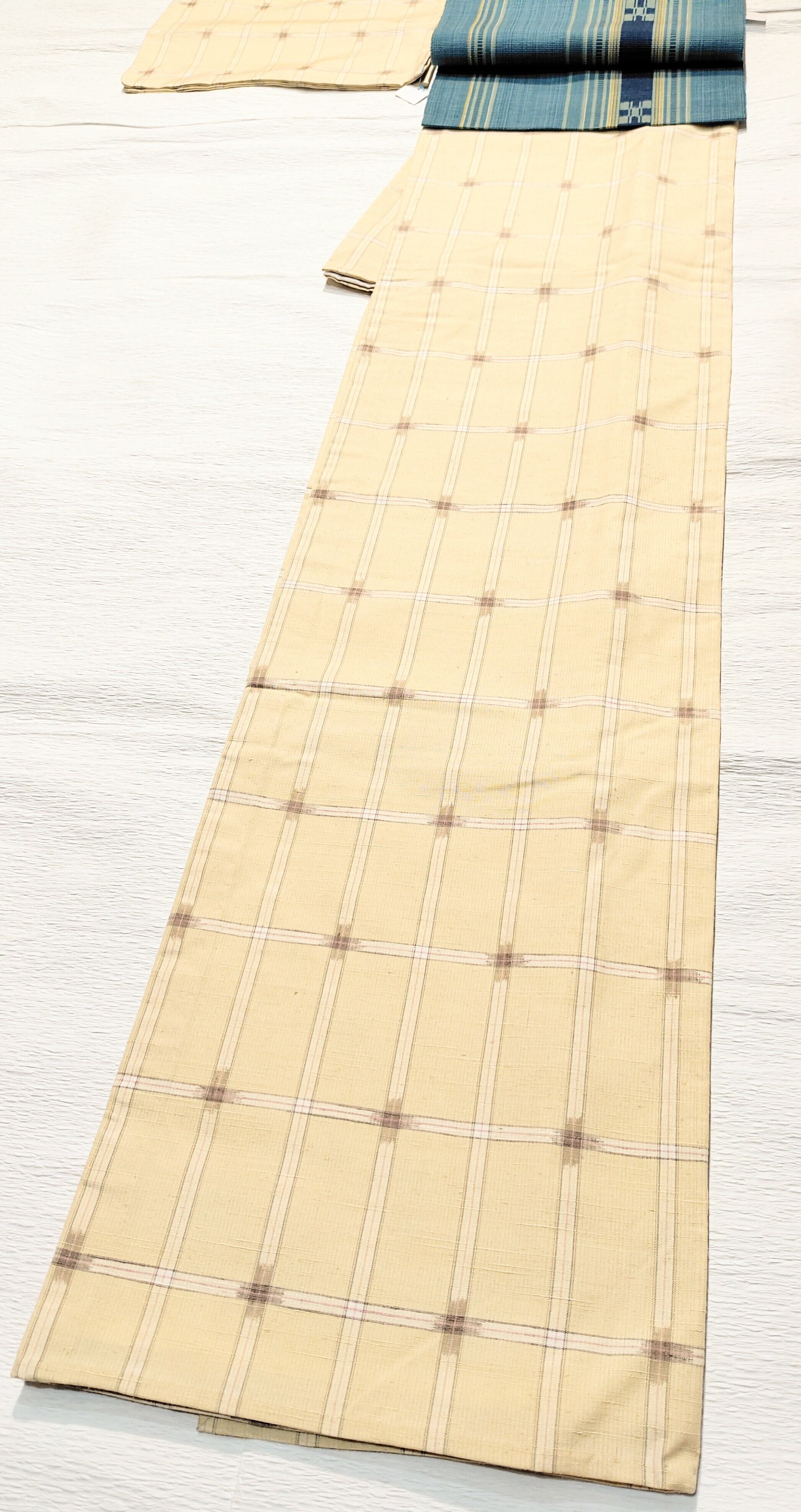 薄めのお色のチェック柄のお着物は探すとなかなか出会えないため、お見逃しなく。