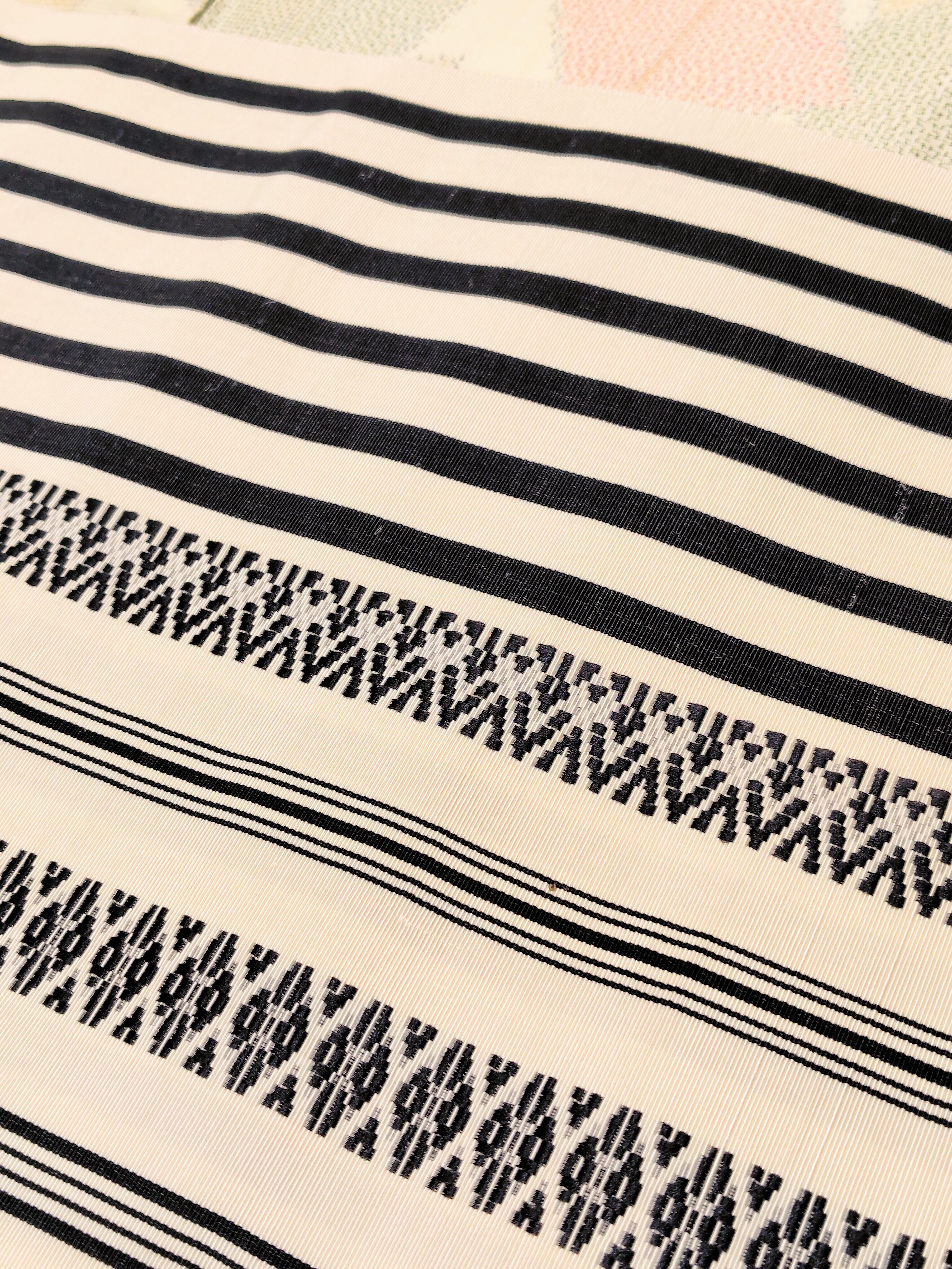 白黒ボーダーと献上柄の博多織 名古屋帯