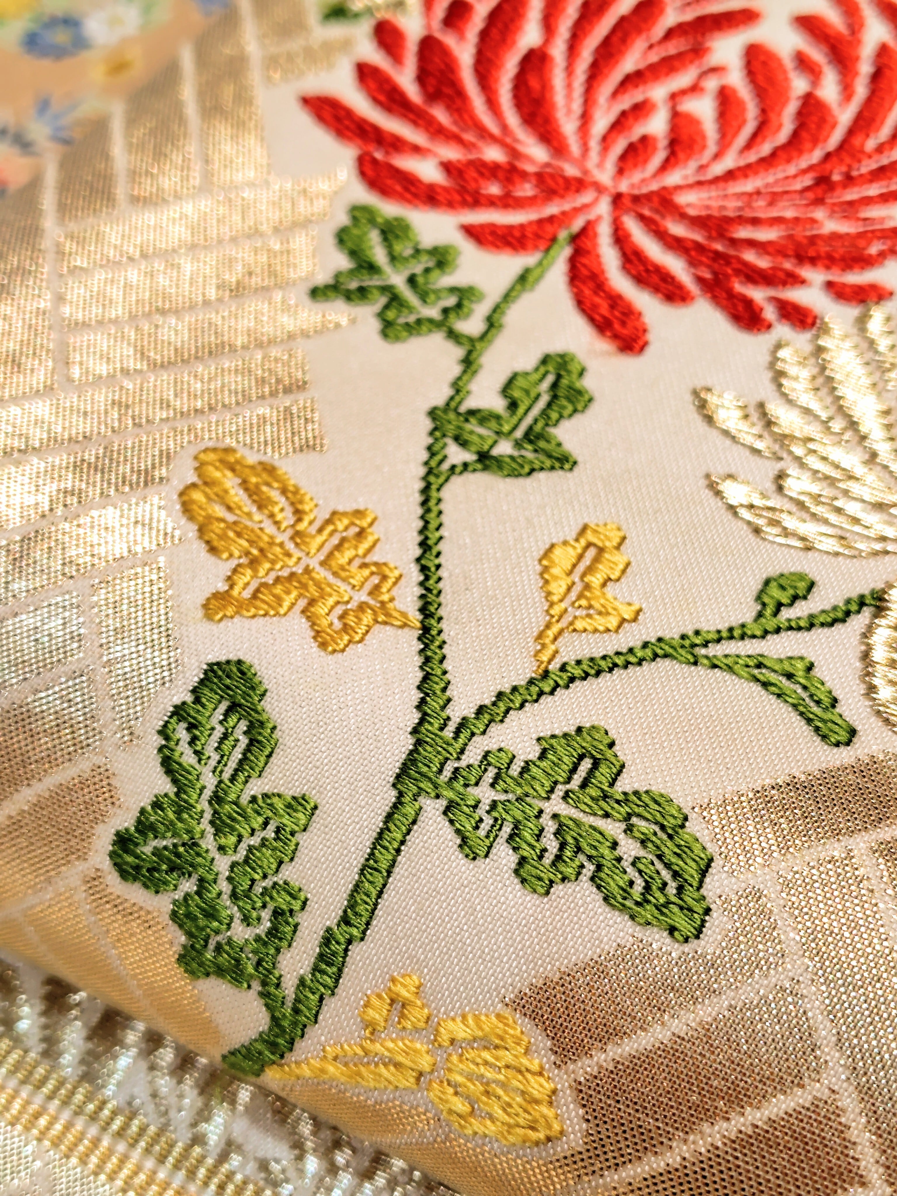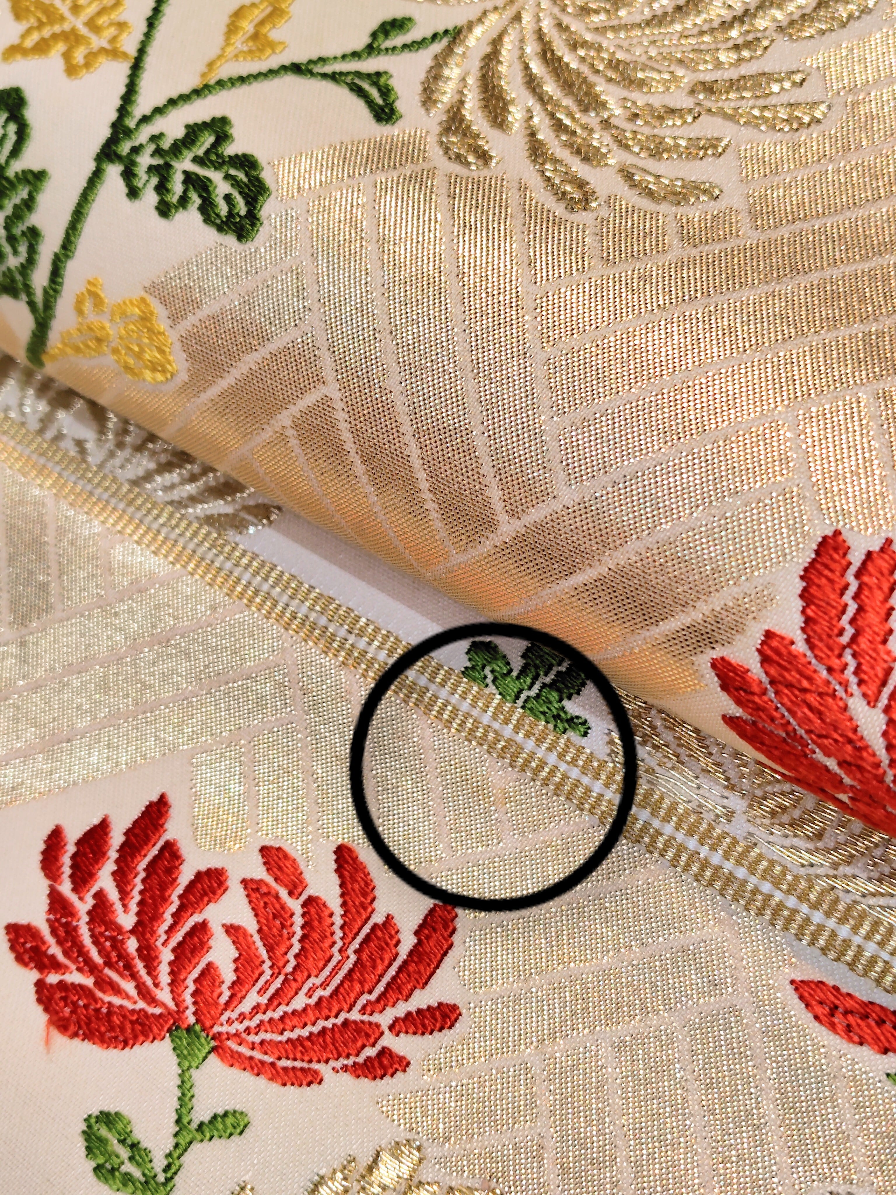 白地(アイボリー系の白)に金糸の組み合わせが素敵。