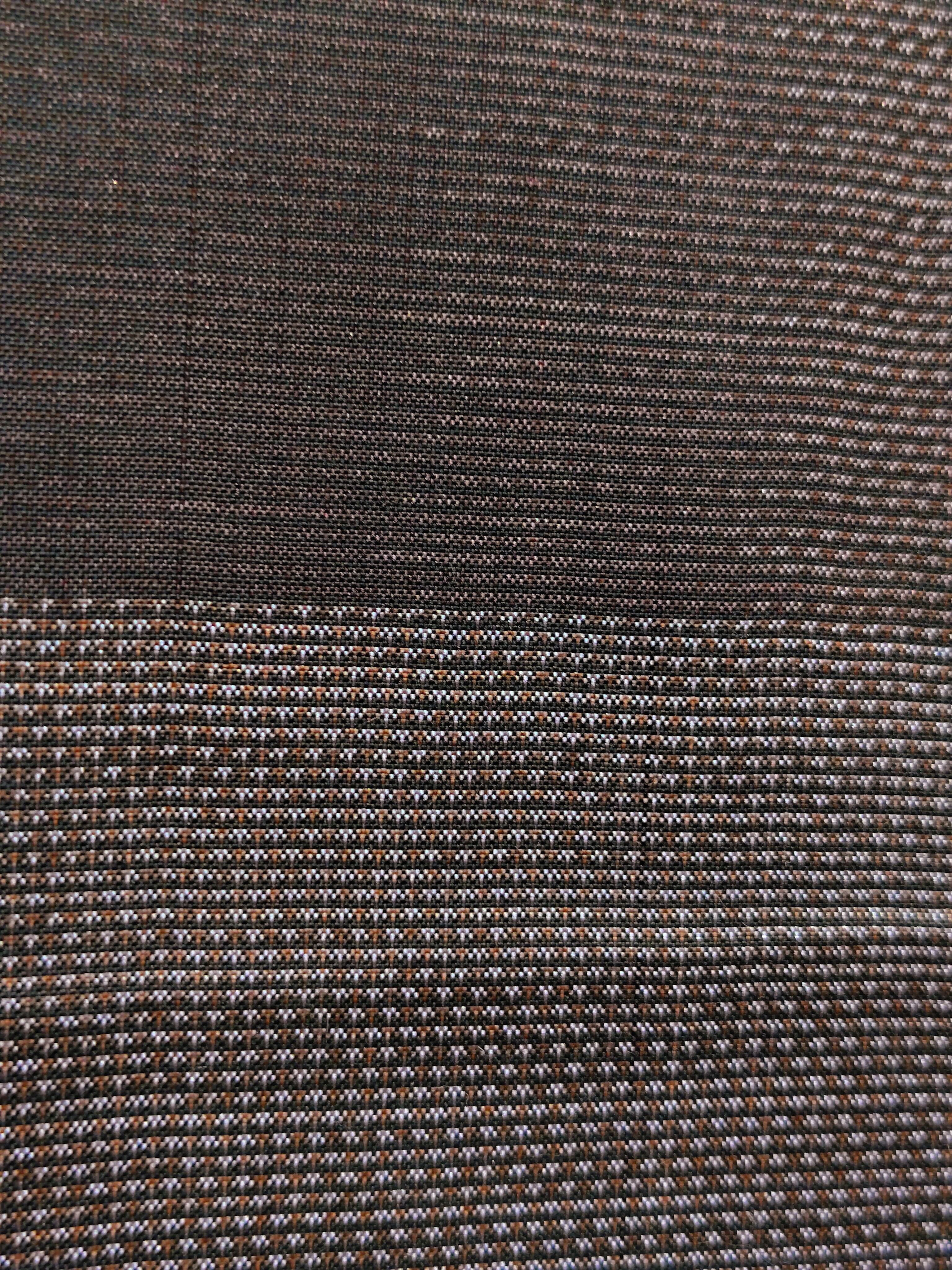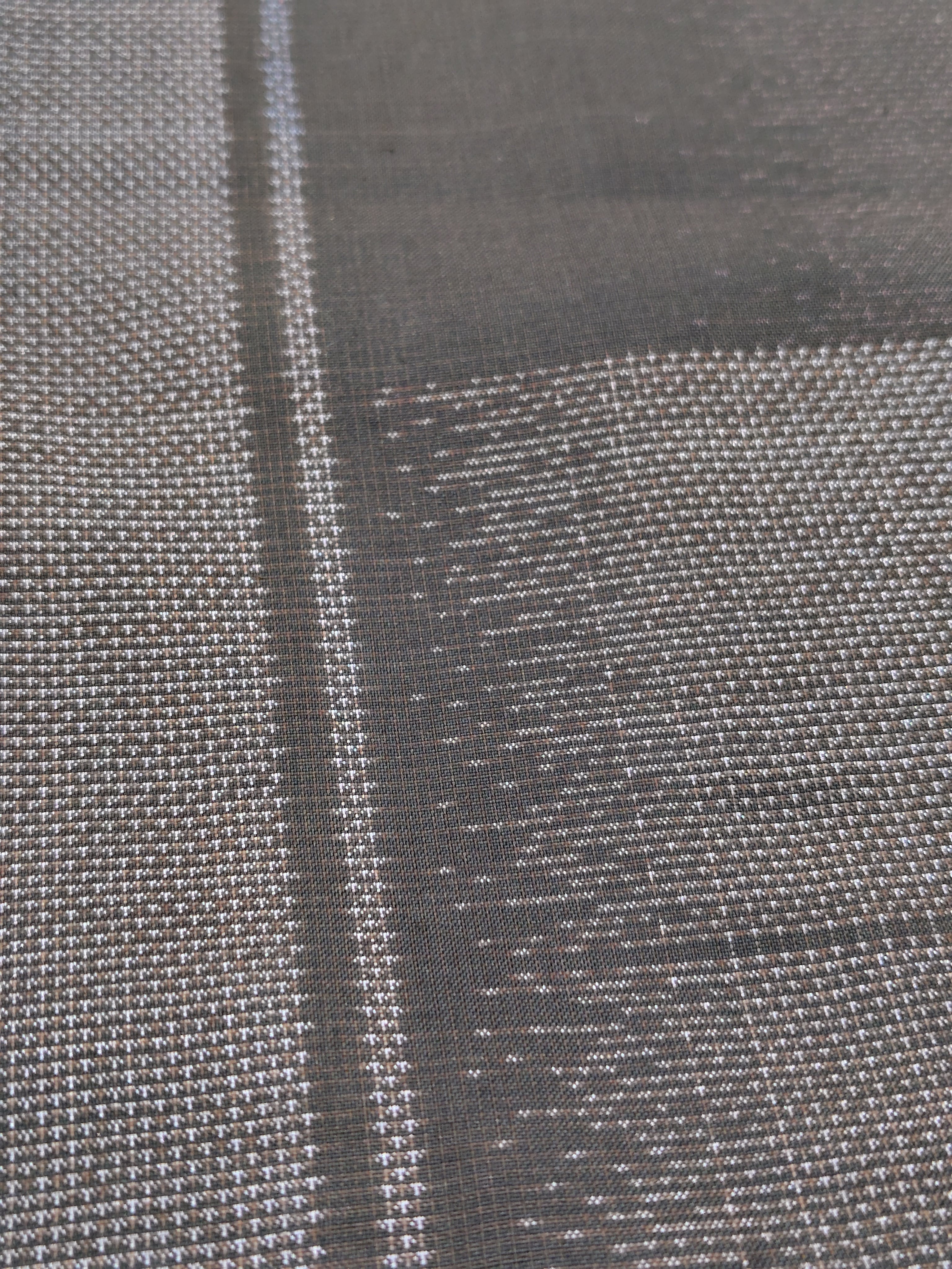 (離れると地の茶色と絣の青色によって、少しだけ紫色にも見えます。)