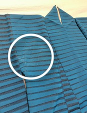 (表面は衿に線状のくすみ、胸元や腰紐付近などに白くすみとアイロンで取れない皺があります。