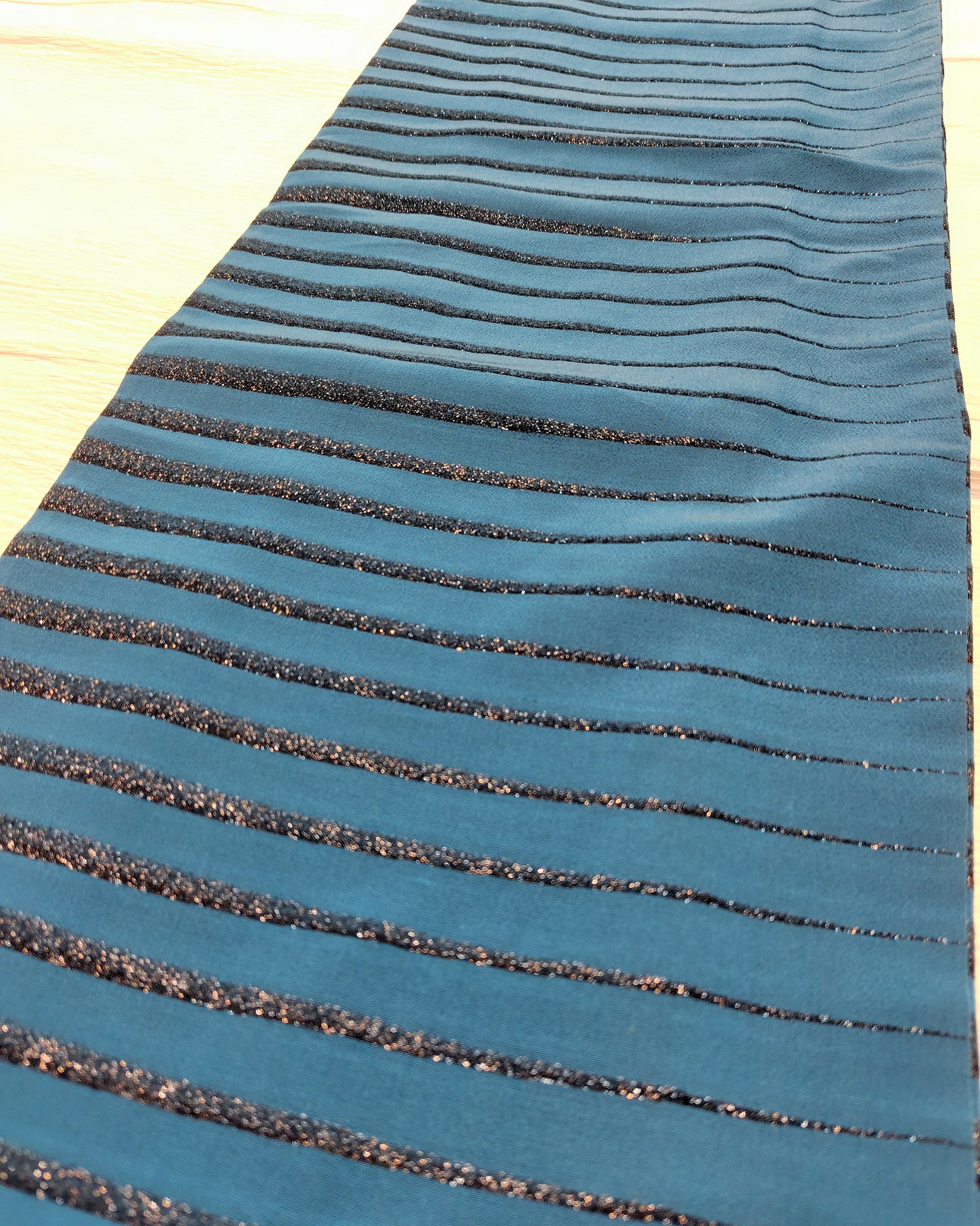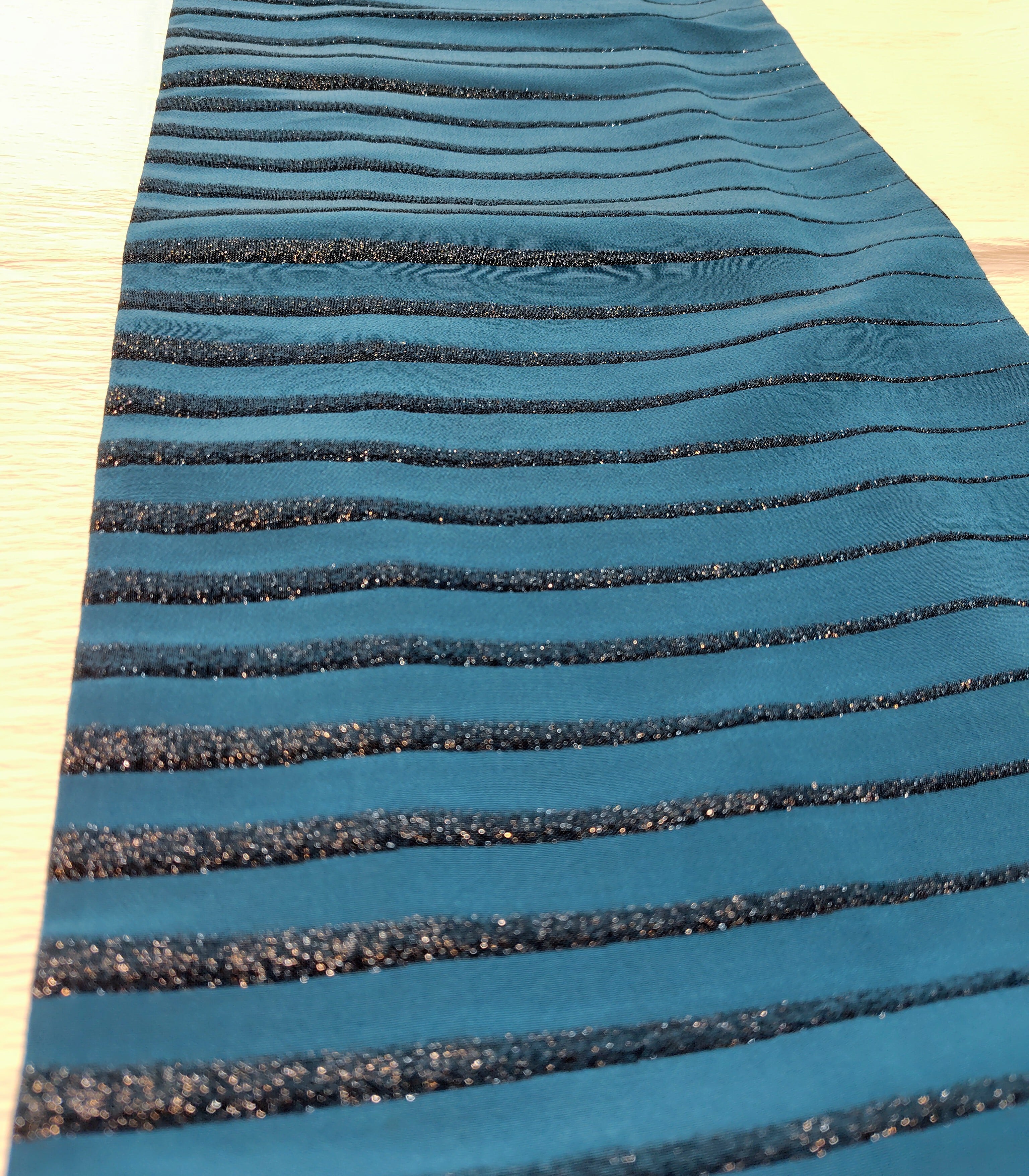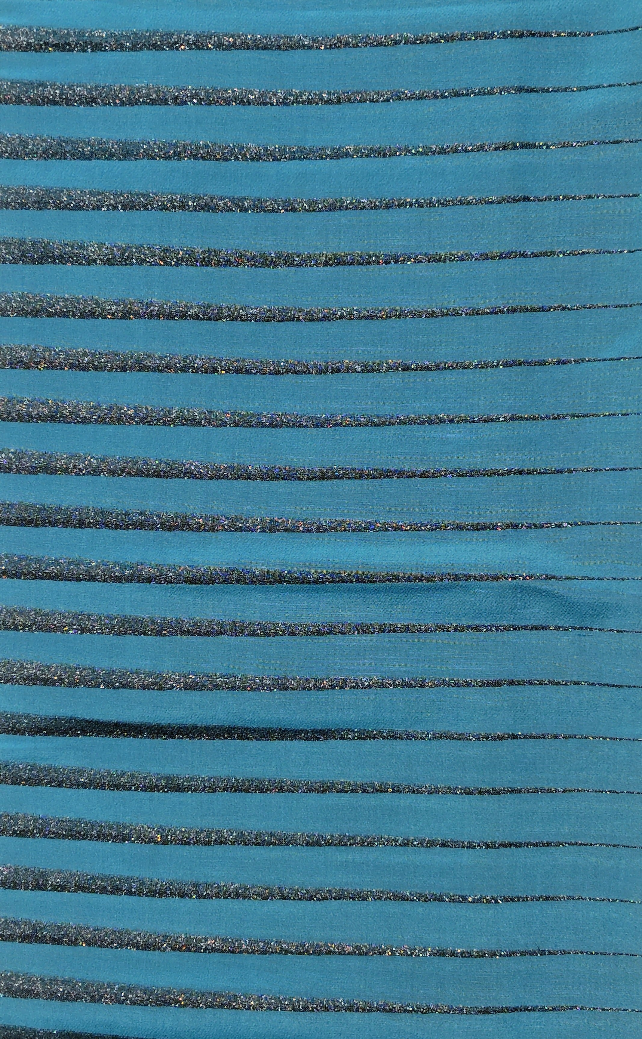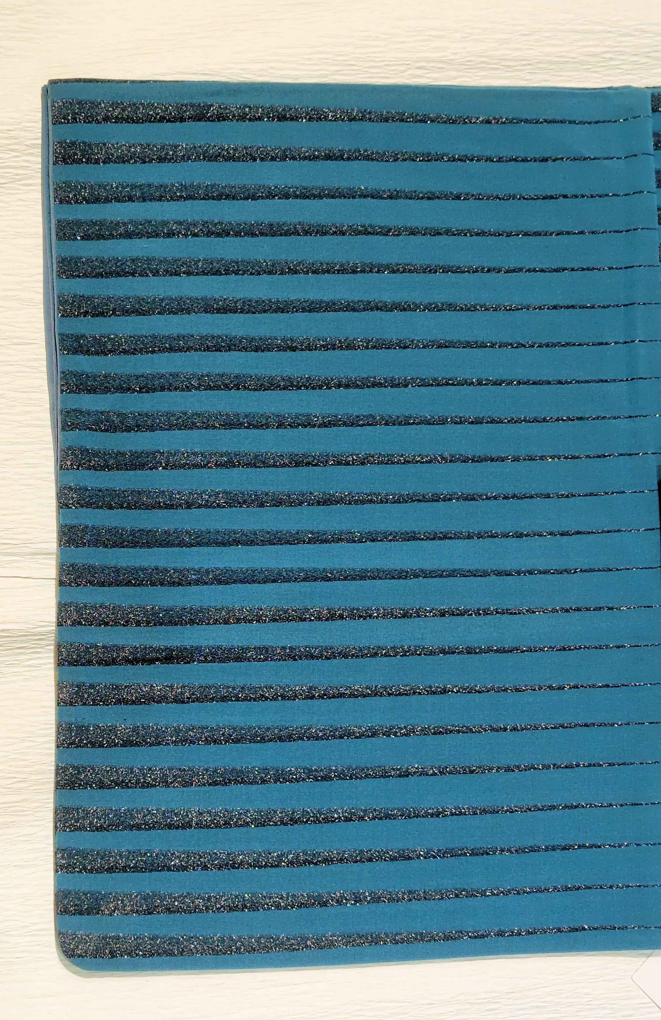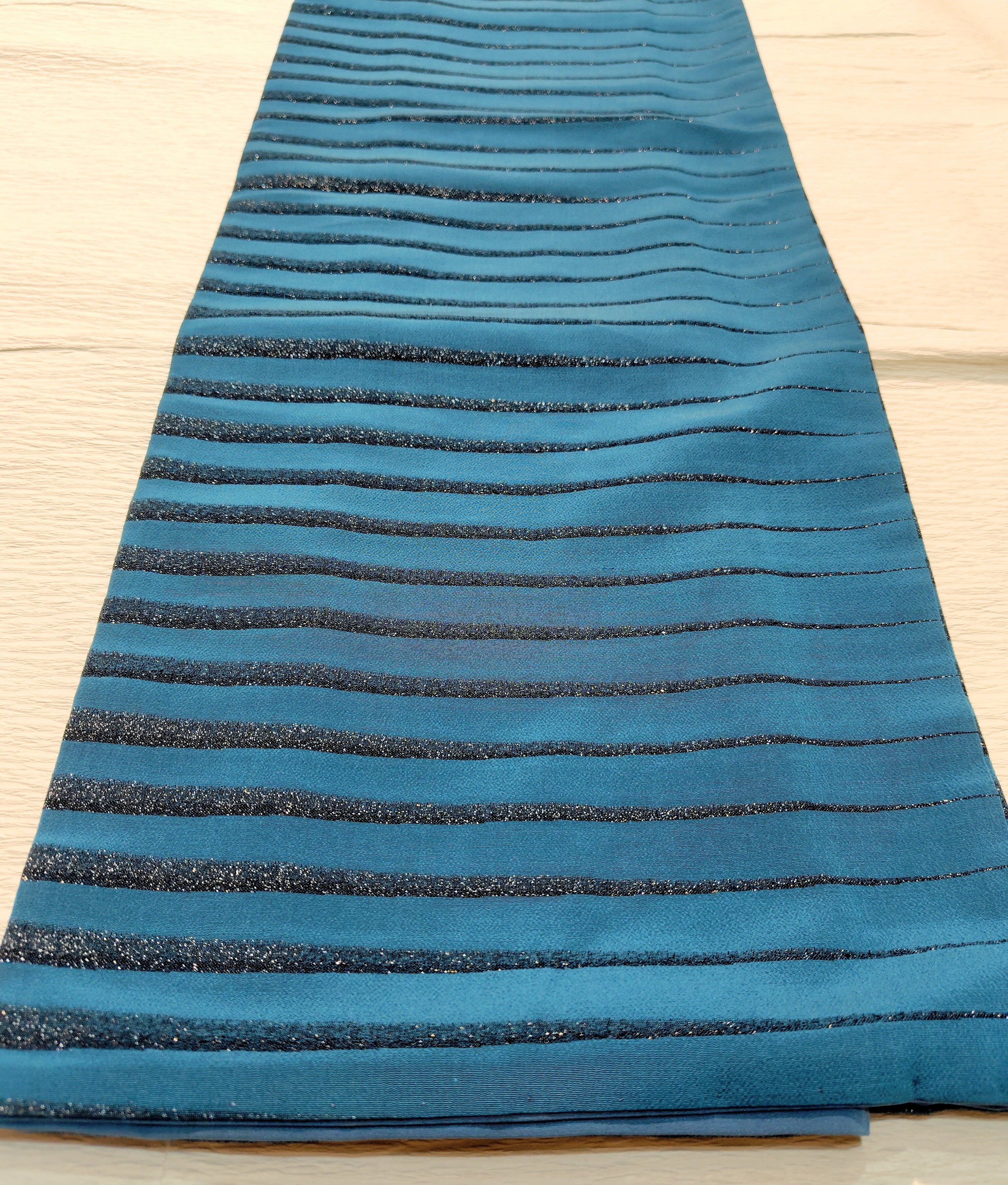 ターコイズブルー系のお色の地に、黒色のボーダー柄。