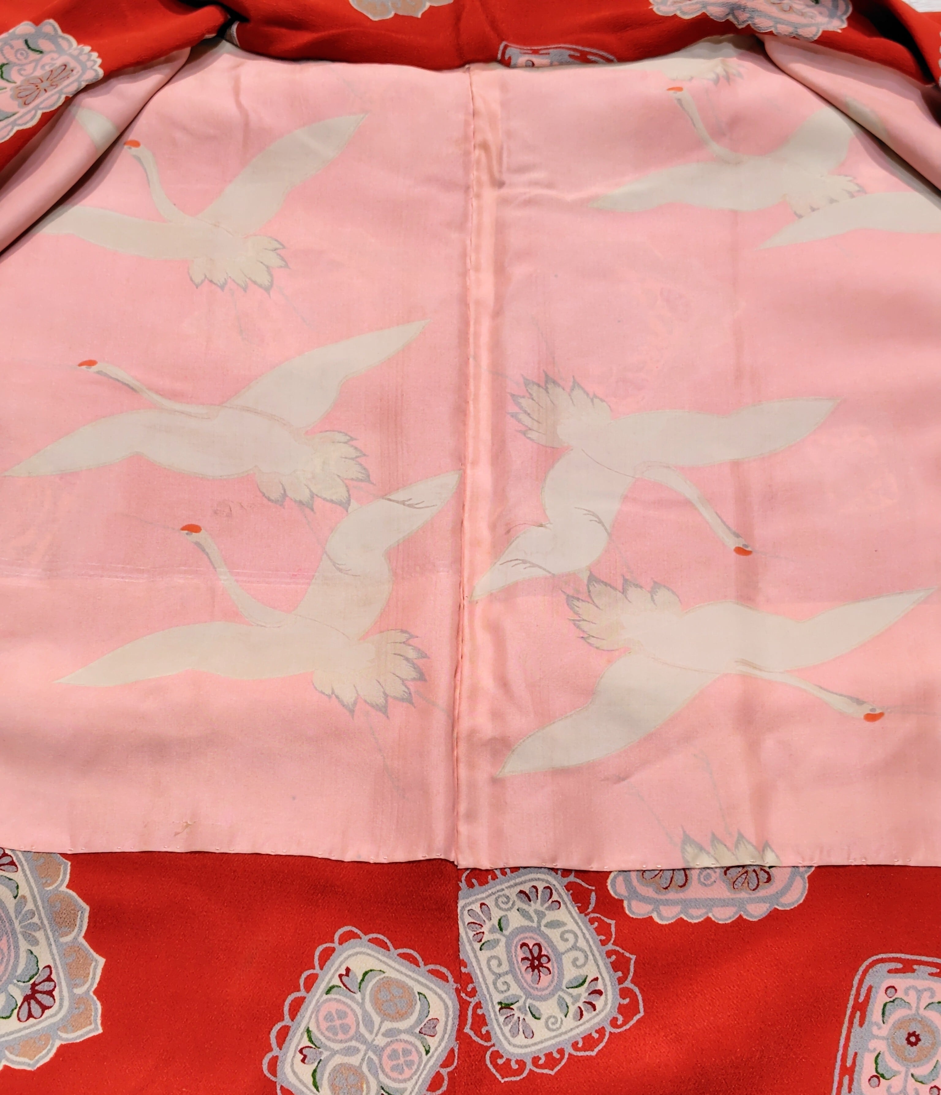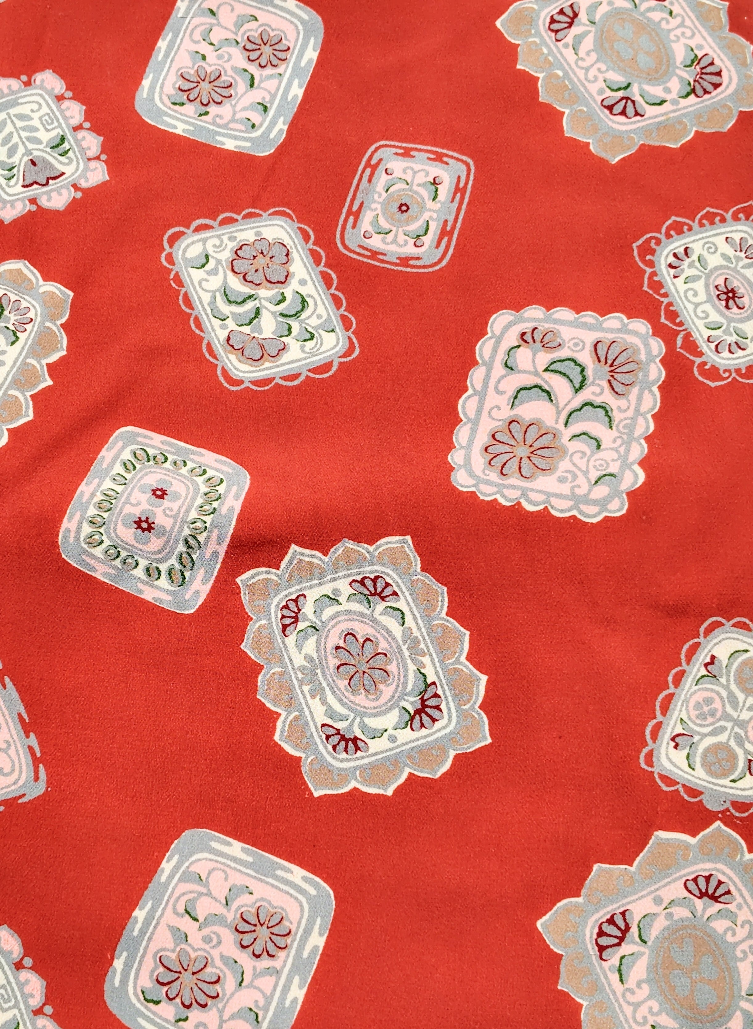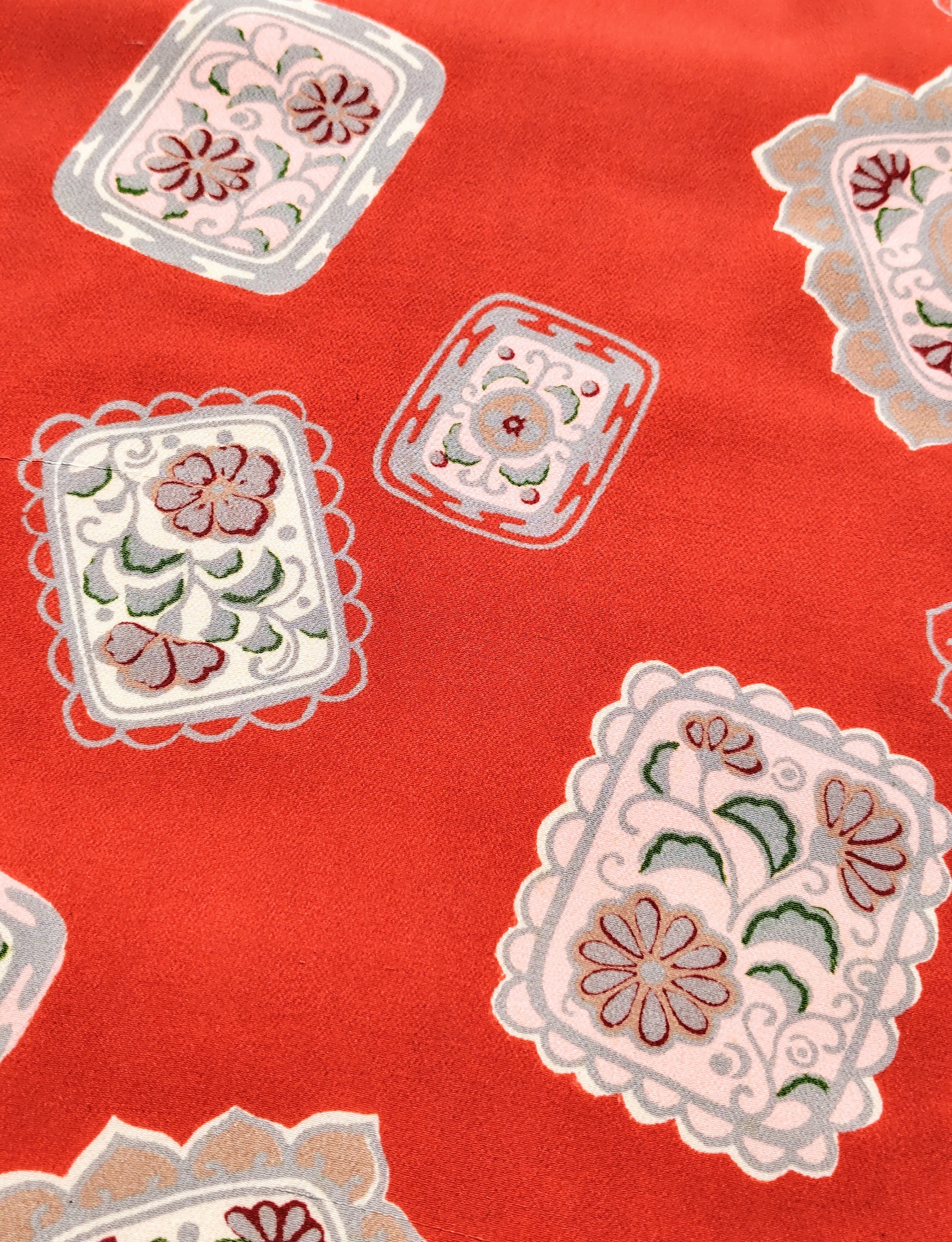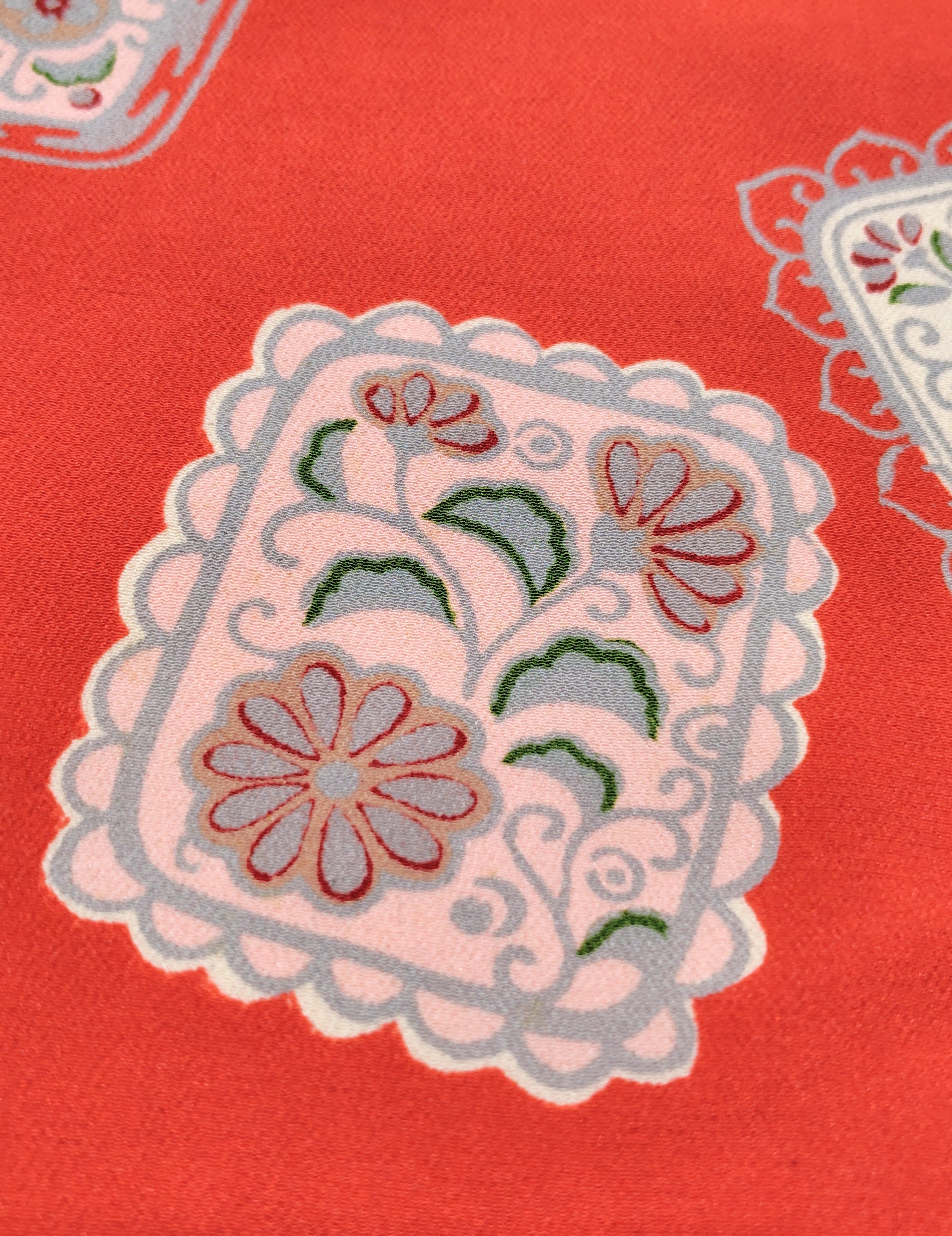 アンティーク長羽織〜朱色に西洋的なモチーフ柄〜です。