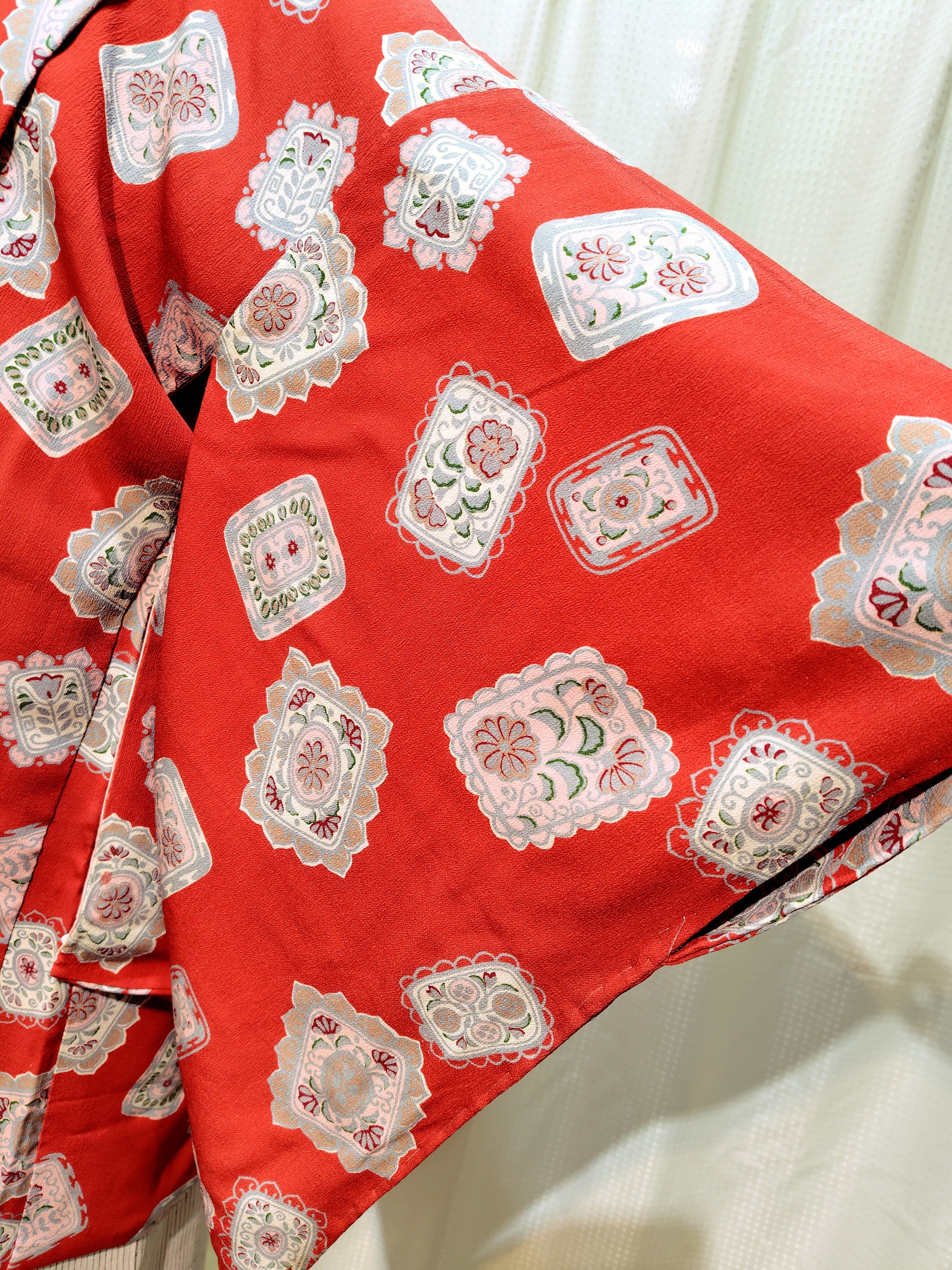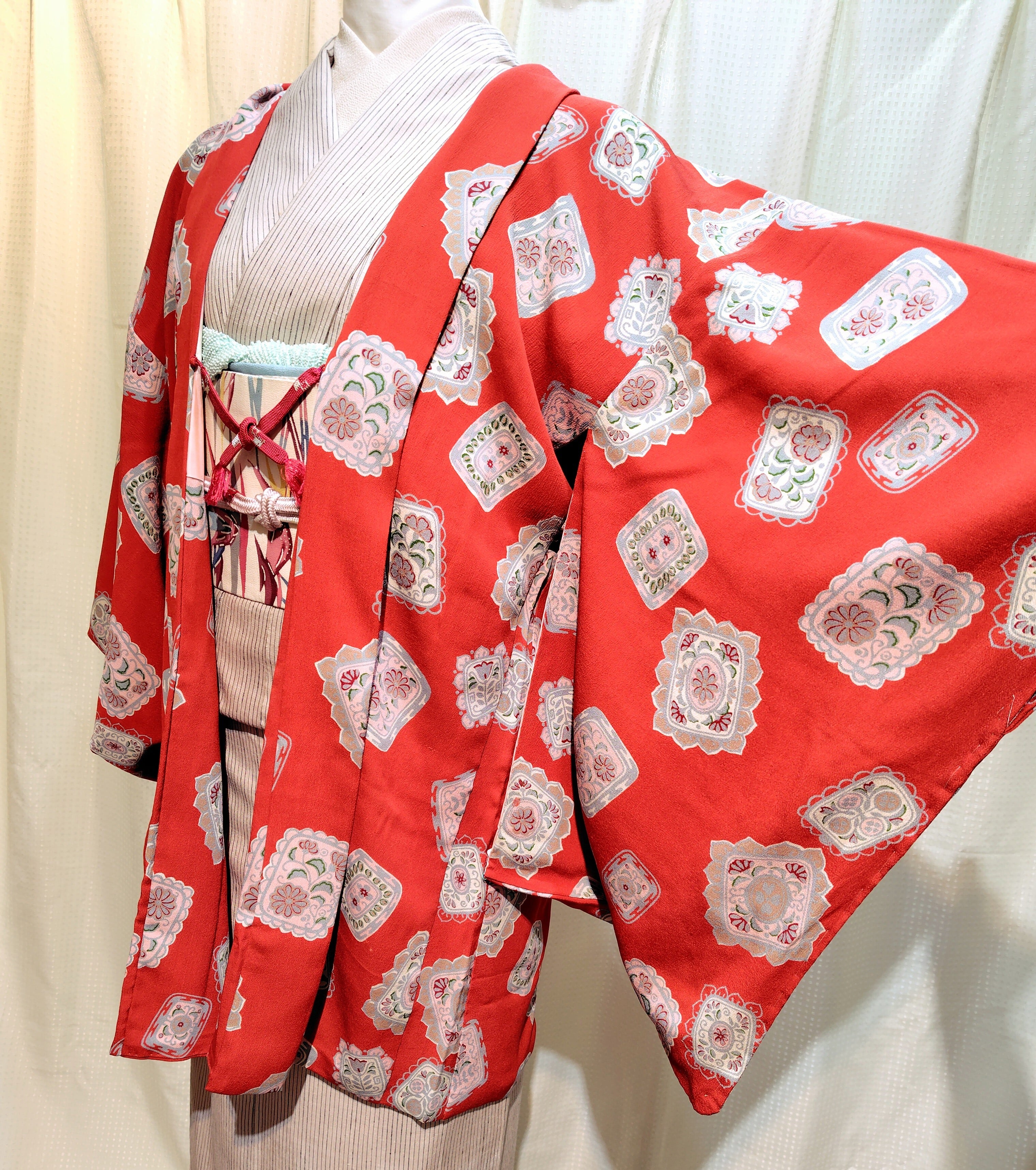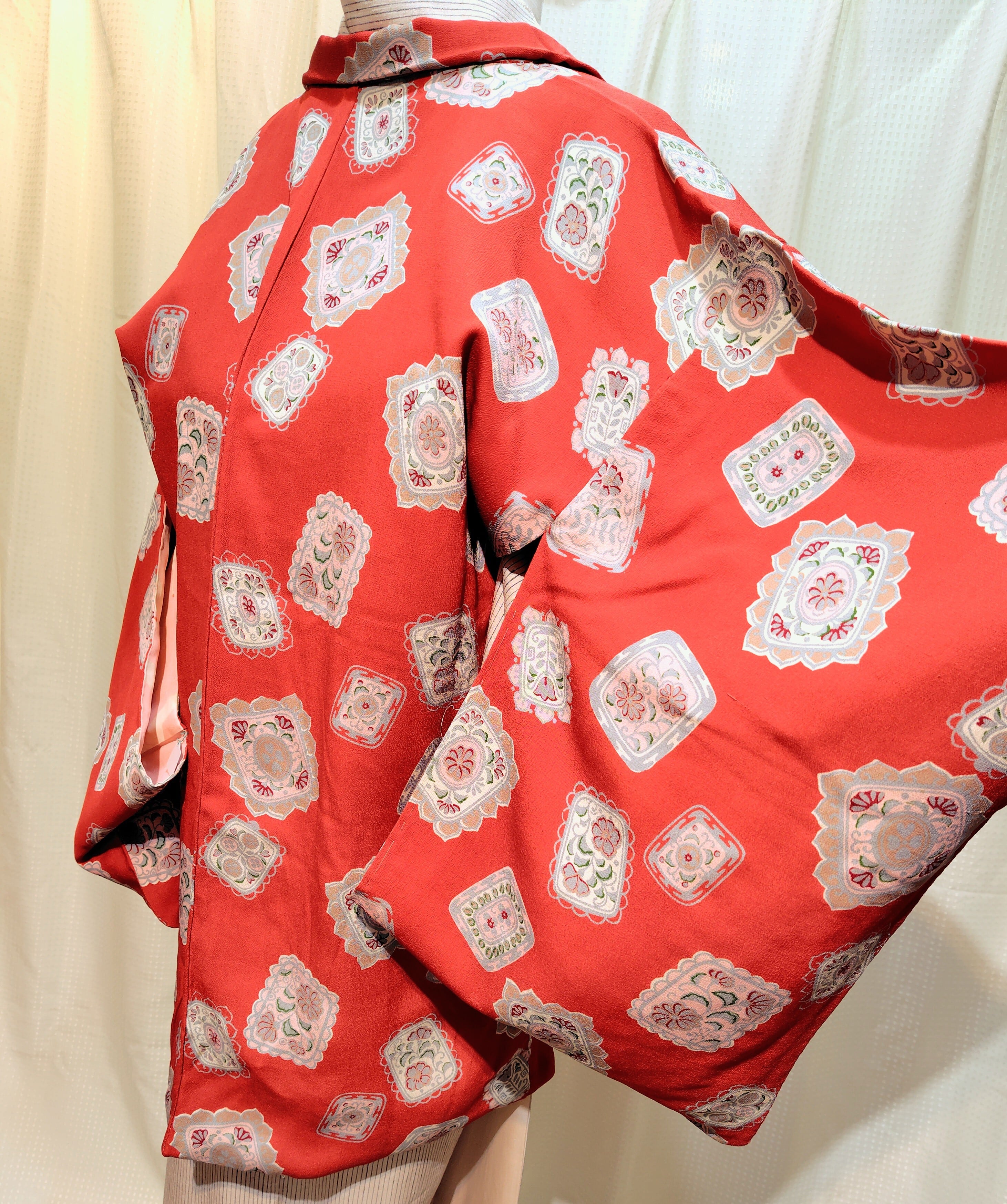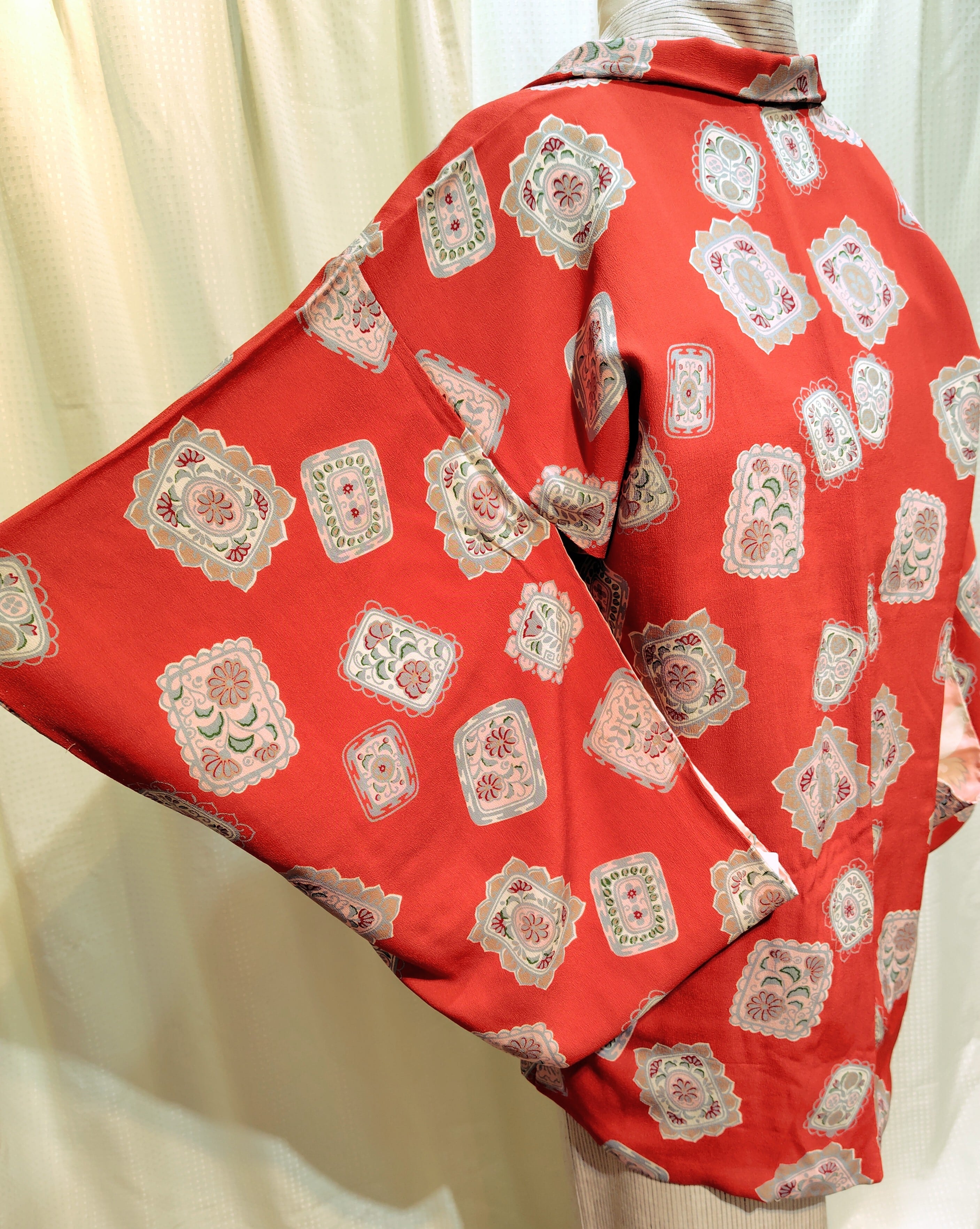 アンティーク長羽織〜朱色に西洋的なモチーフ柄〜