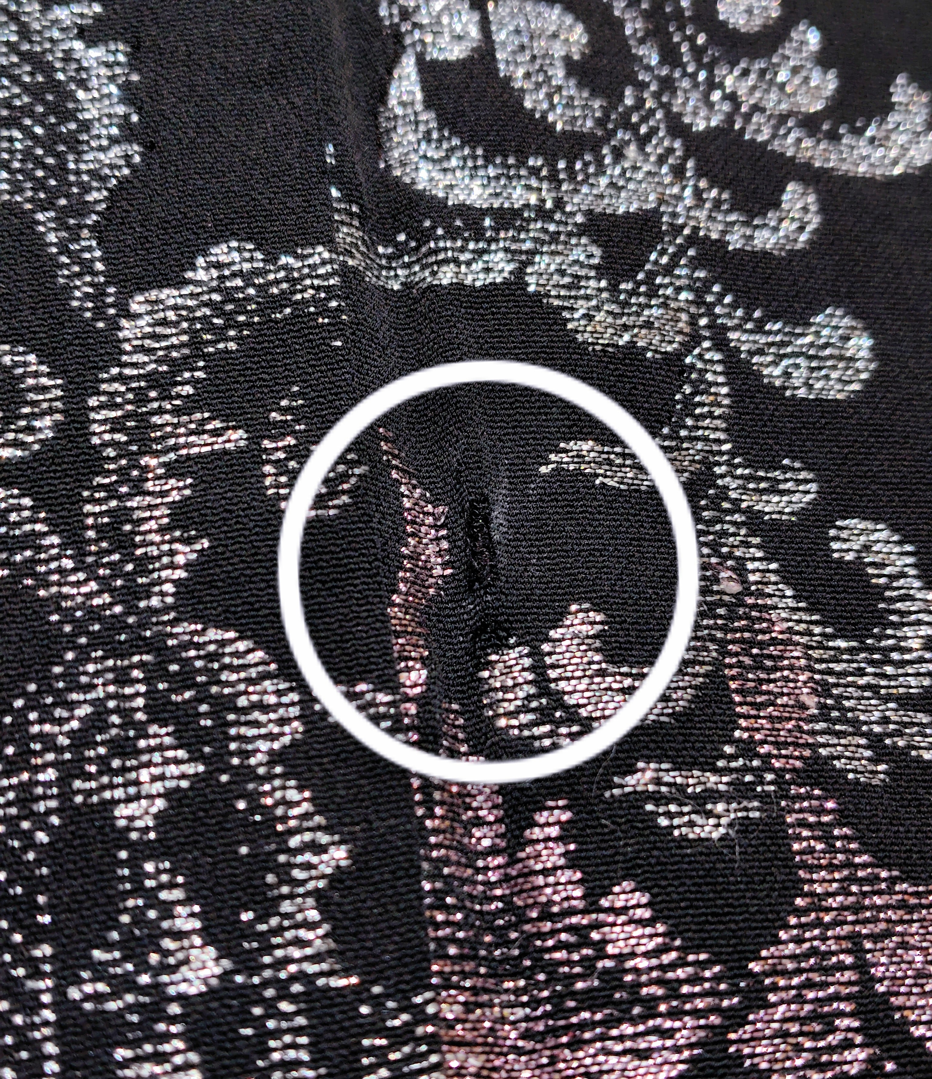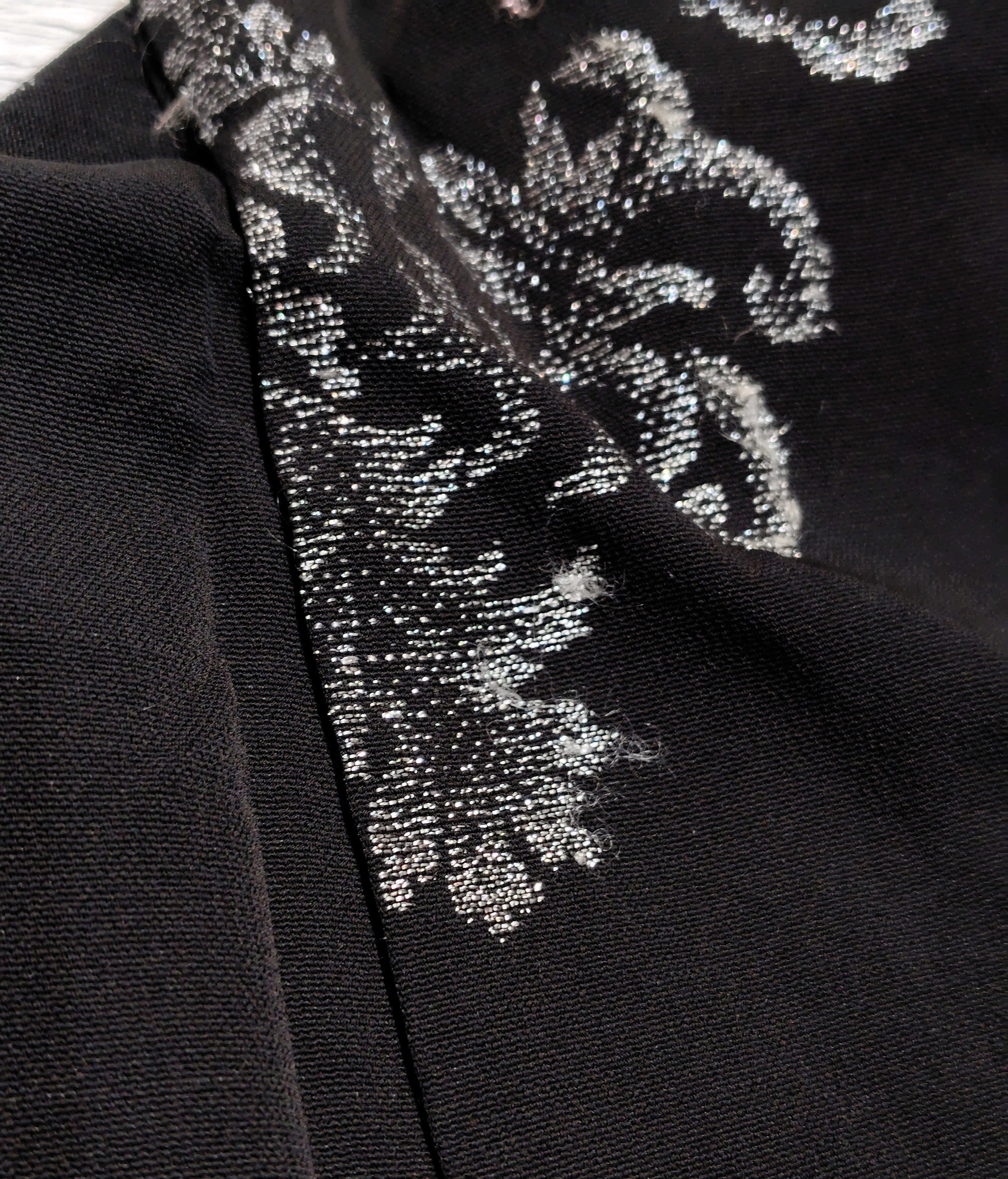 こちらも黒地に銀色とピンク色のきらきら輝く糸のみ。
