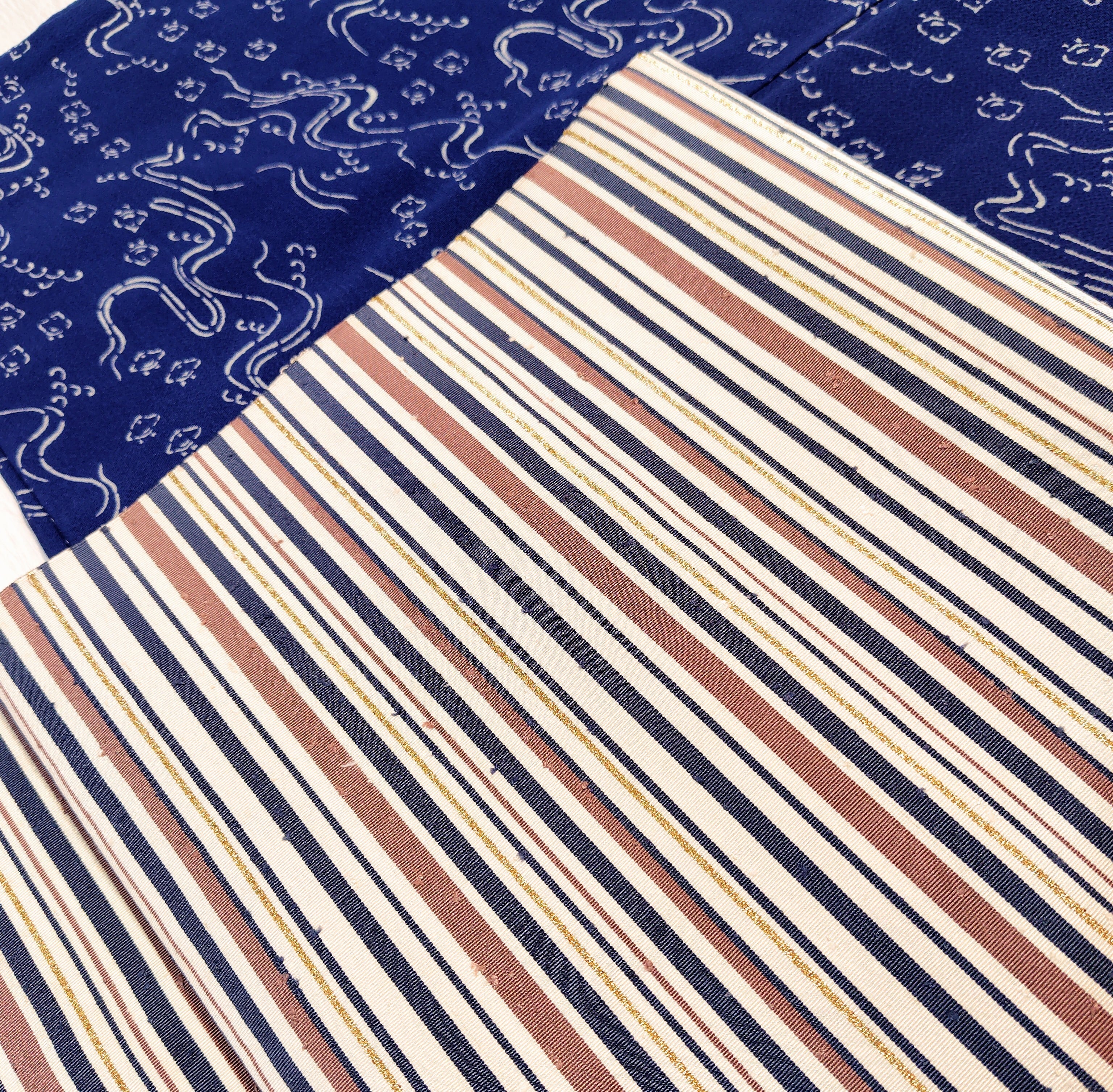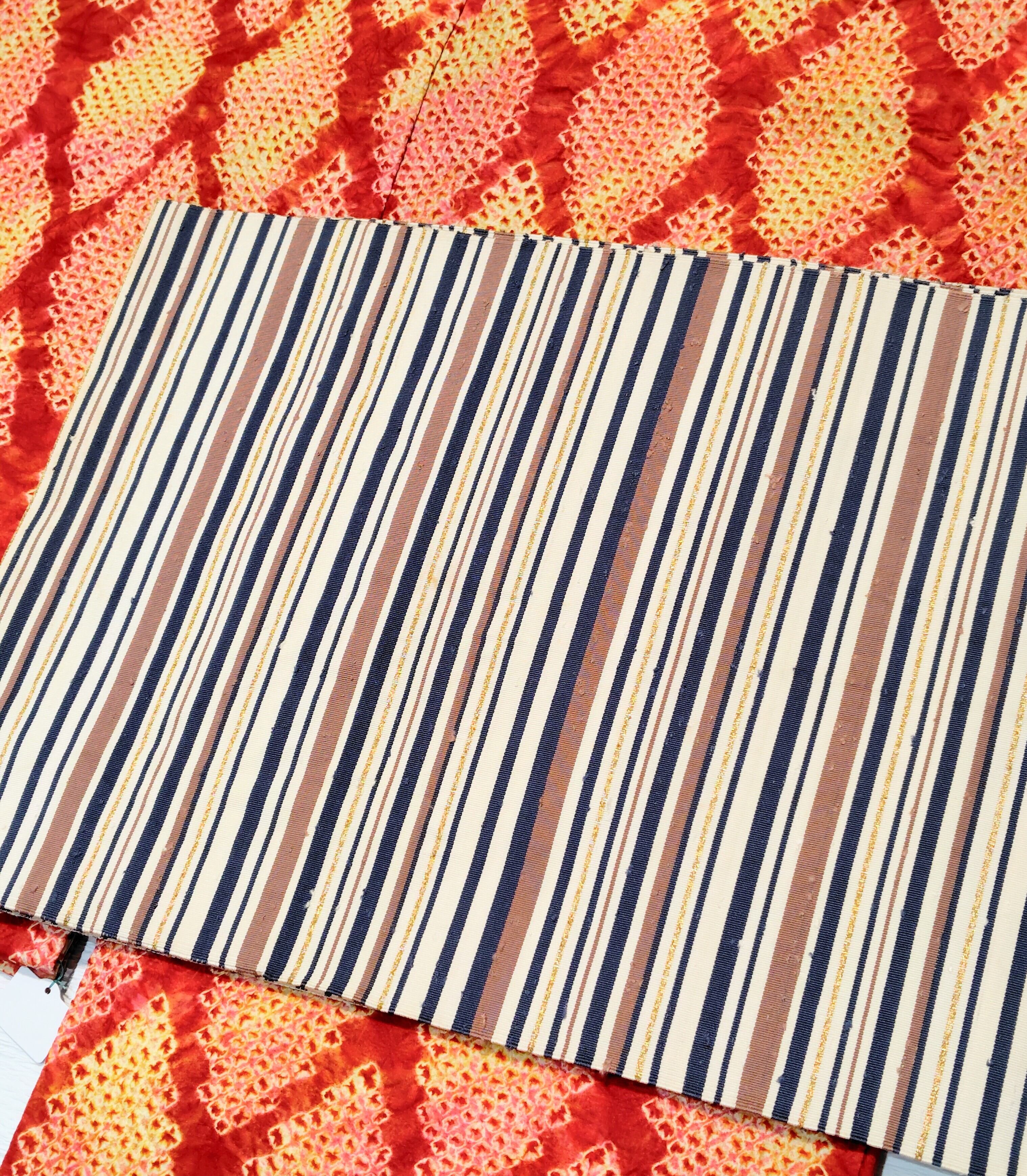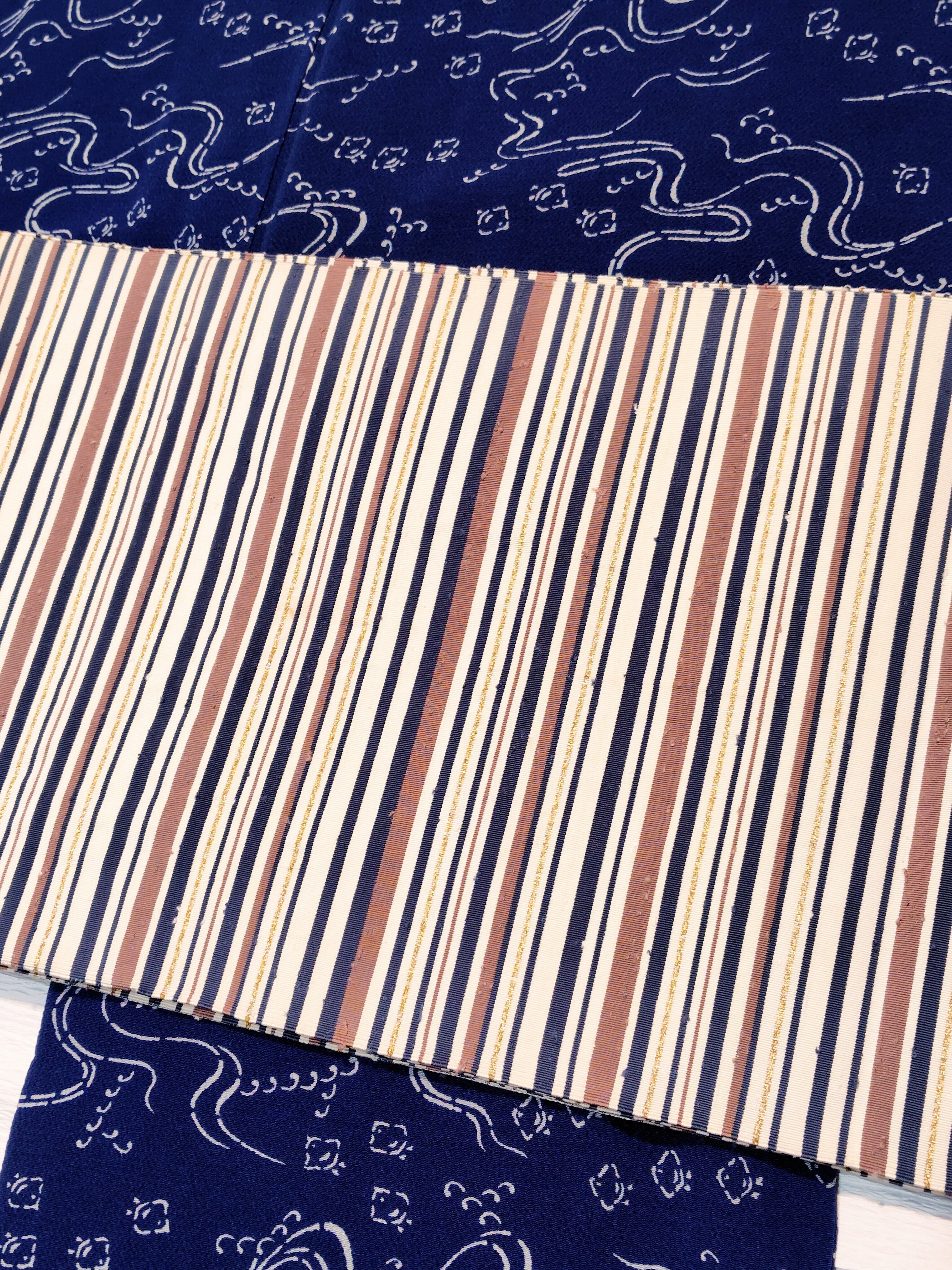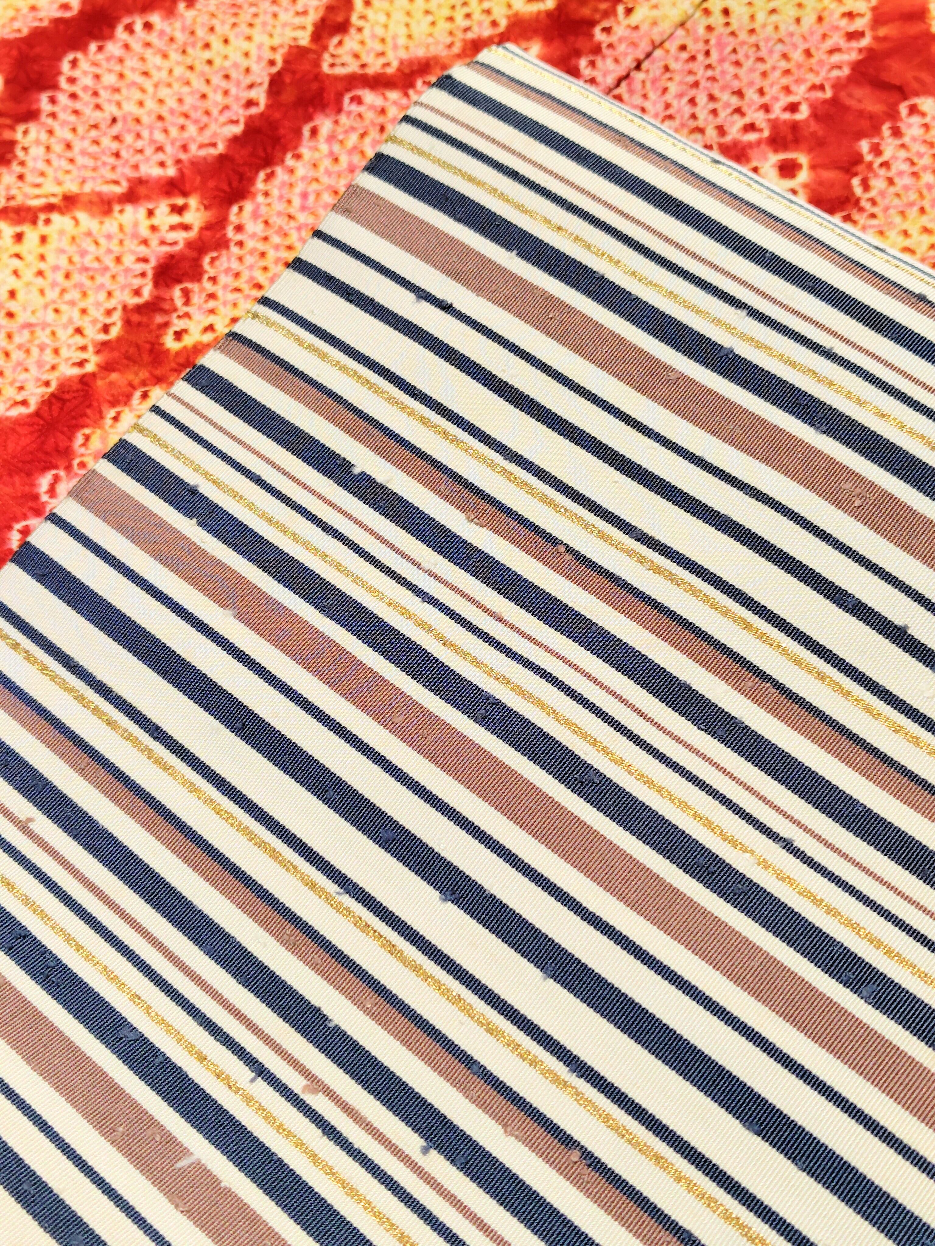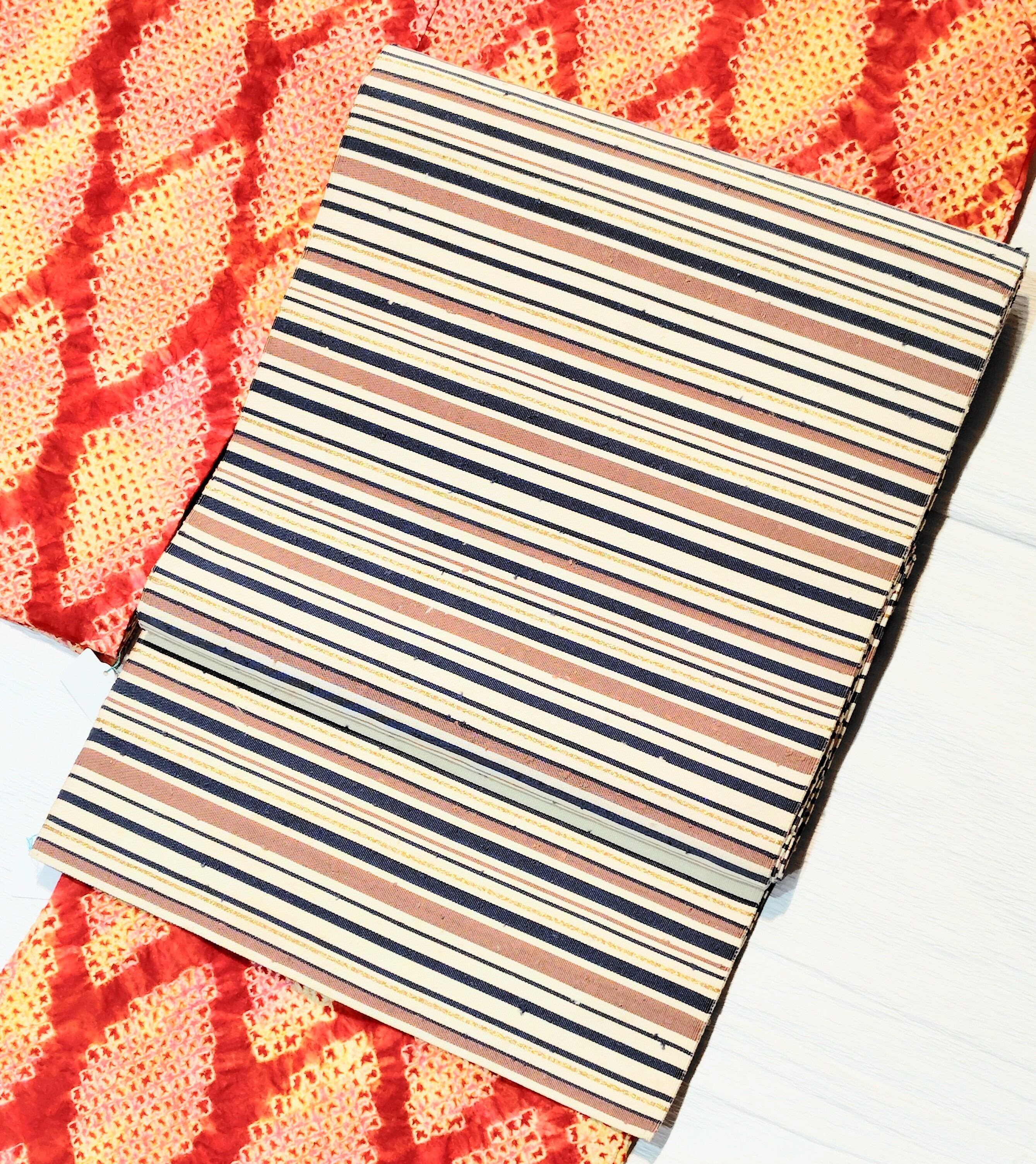 お太鼓部分は細いボーダー、前柄は細いストライプ柄(縞柄)になります。