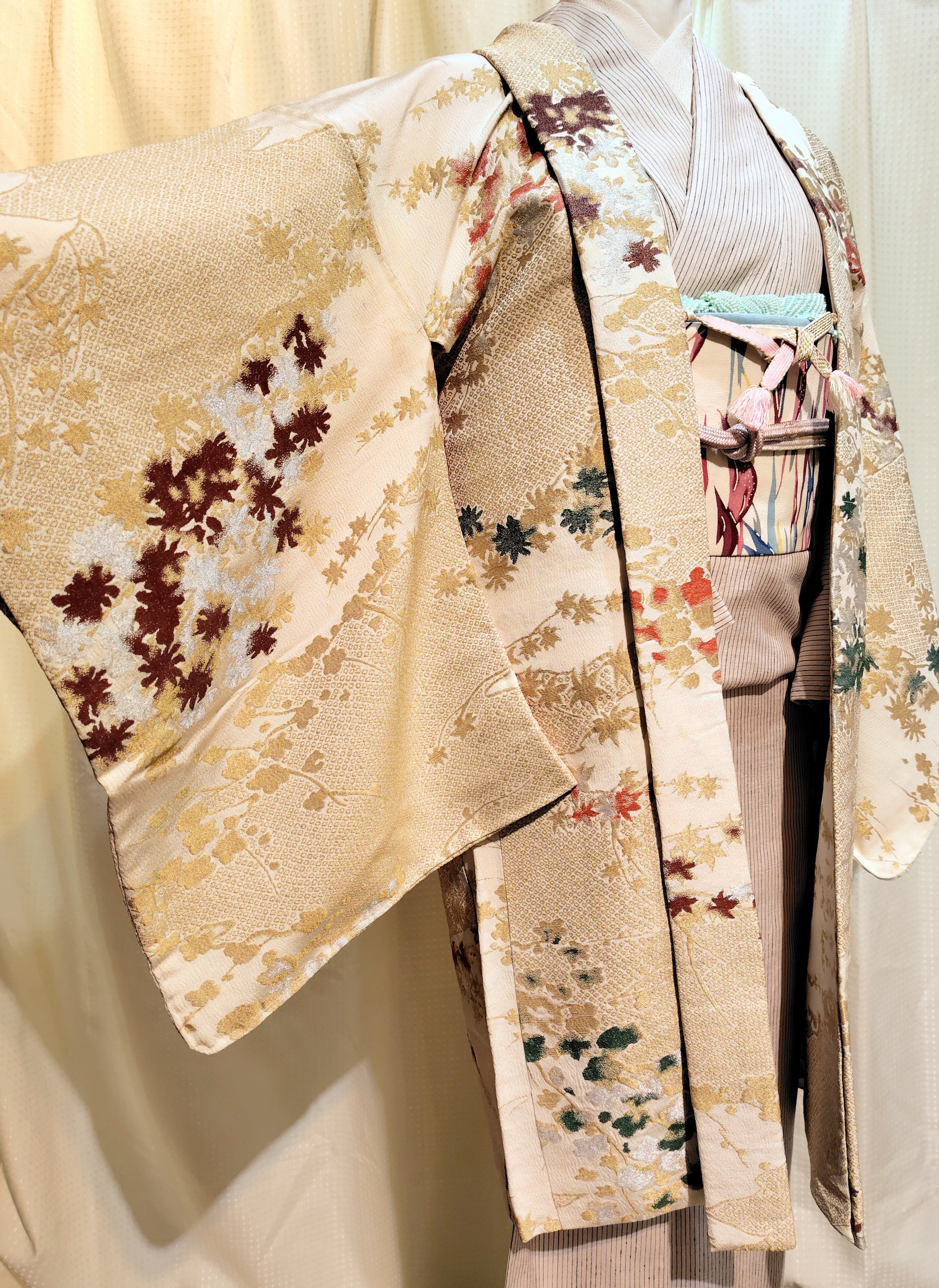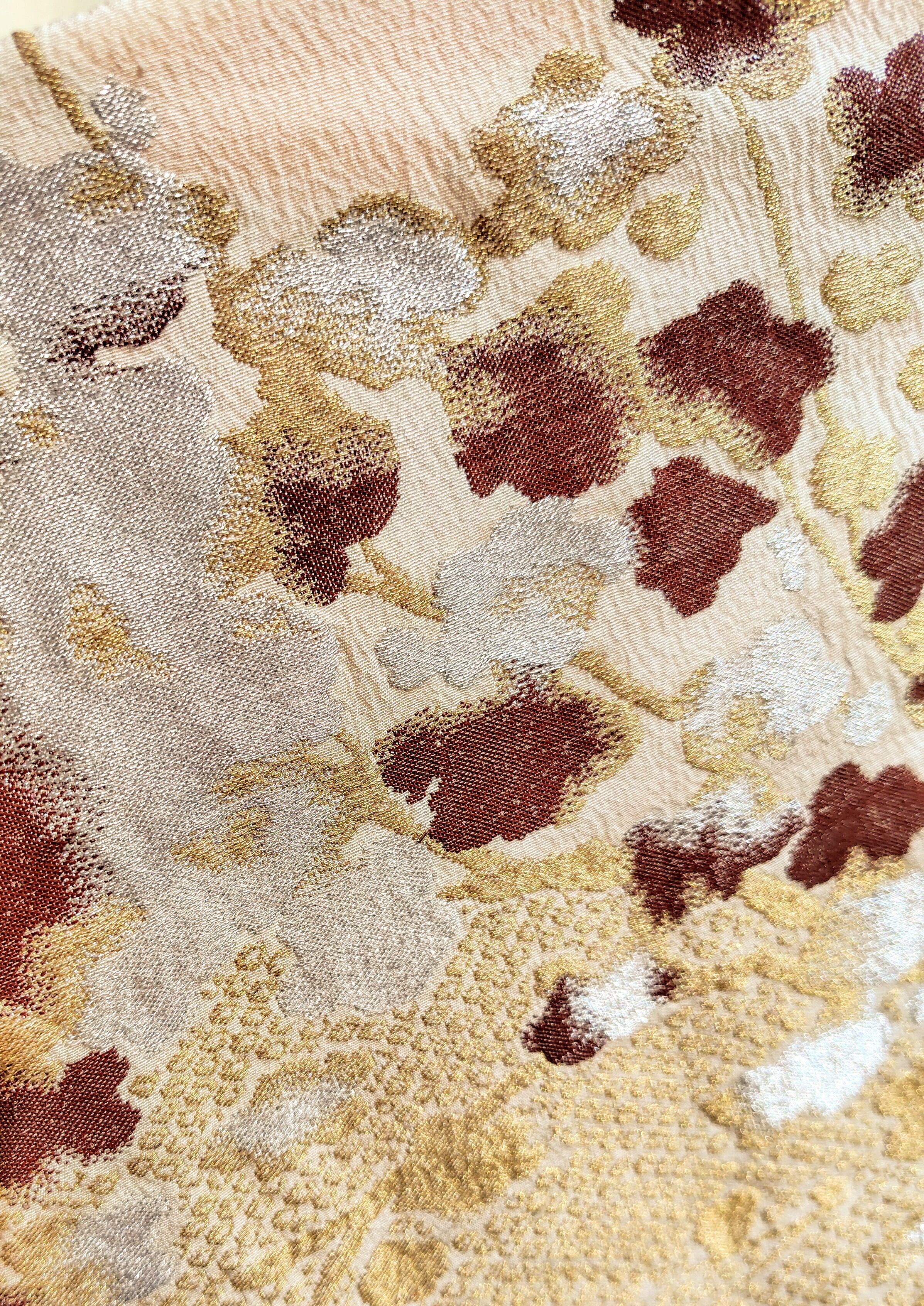 こちらはアンティークの膨れ織&金銀が美しいマジョリカお召。