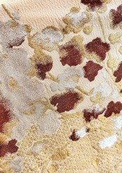 そこに金銀色の糸がライトの光を受け、まるでアンティークジュエリーのように煌めきます。