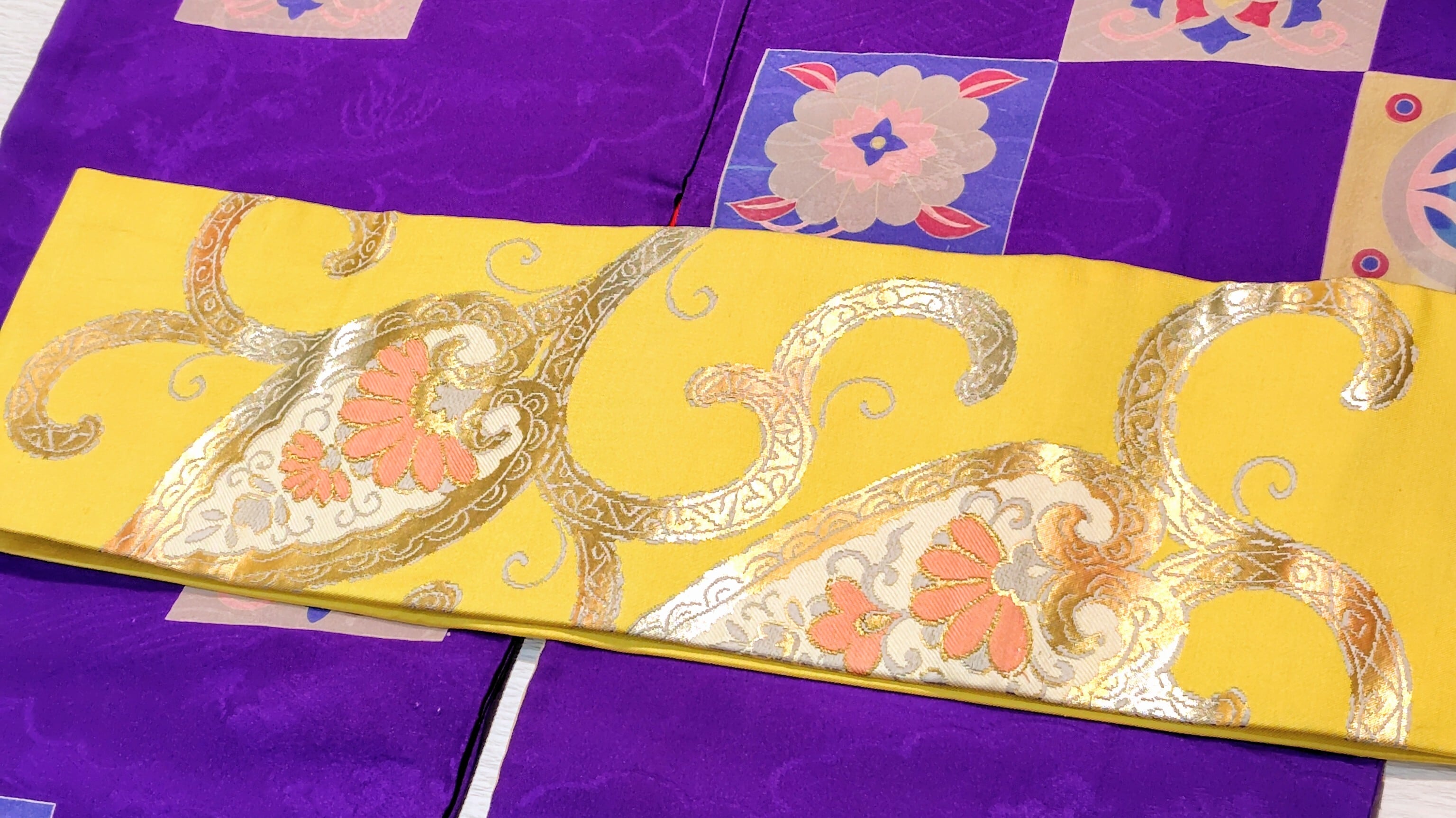 黄色の名古屋帯はとても珍しいです。