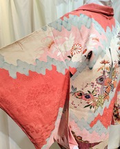 アンティーク長羽織り コーラルピンク〜華やかな絵羽模様に刺繍~です。