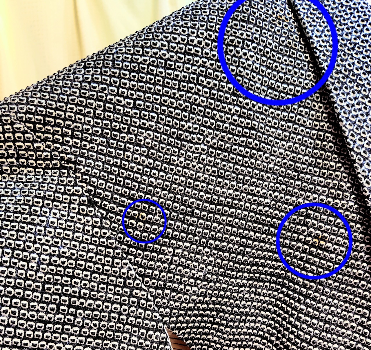 (右袖や右胸元付近などに茶色の糊シミが少々あります。
