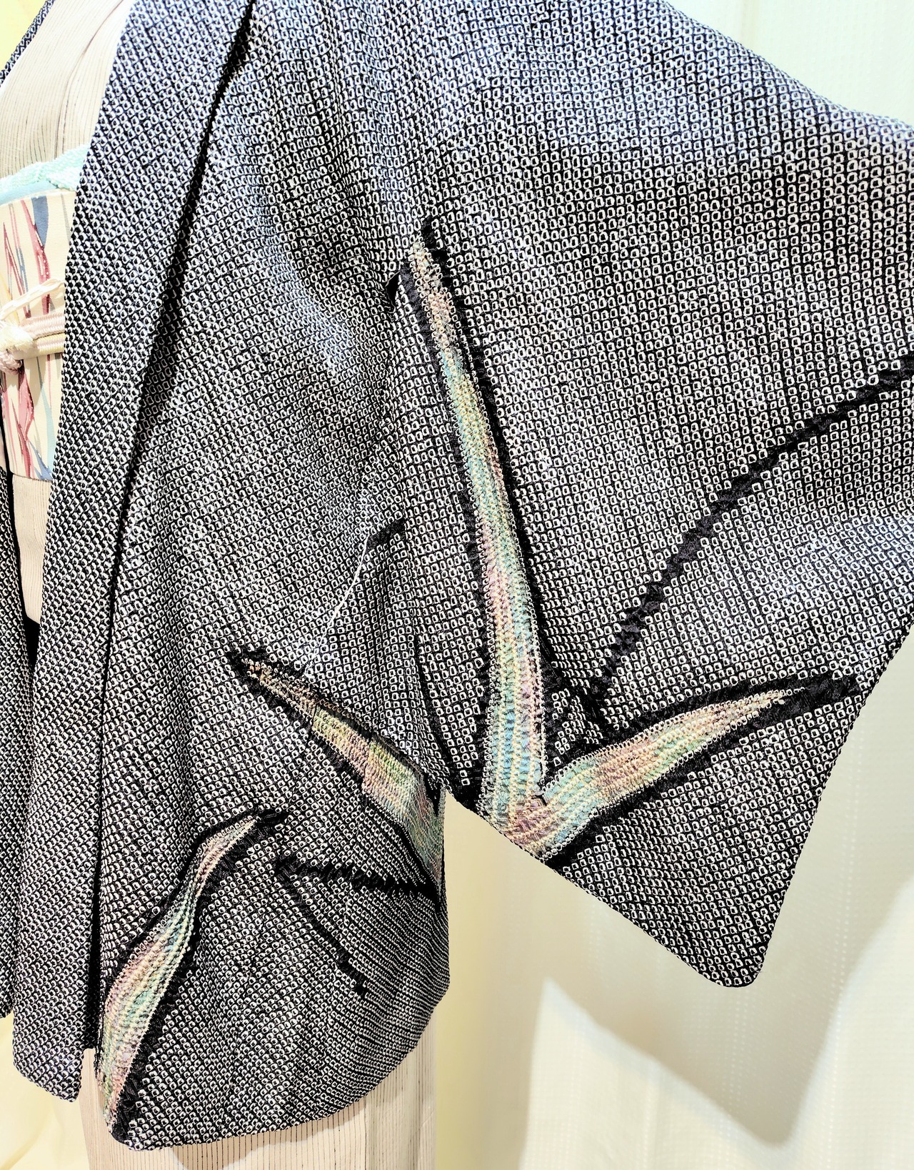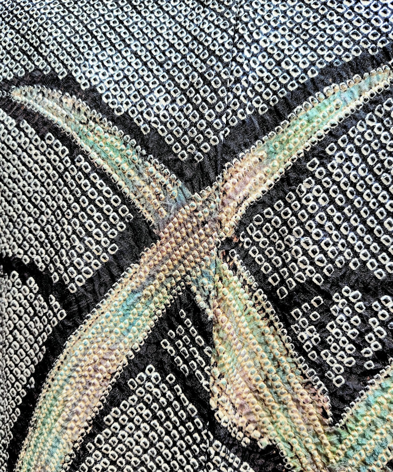 黒地に白色の総絞りの羽織り〜不思議な葉っぱ柄〜