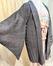 また美しい黒地がアンティークの繻子のようで、現代物だけでなくアンティークのお着物と合わせて頂くのもおすすめです◎