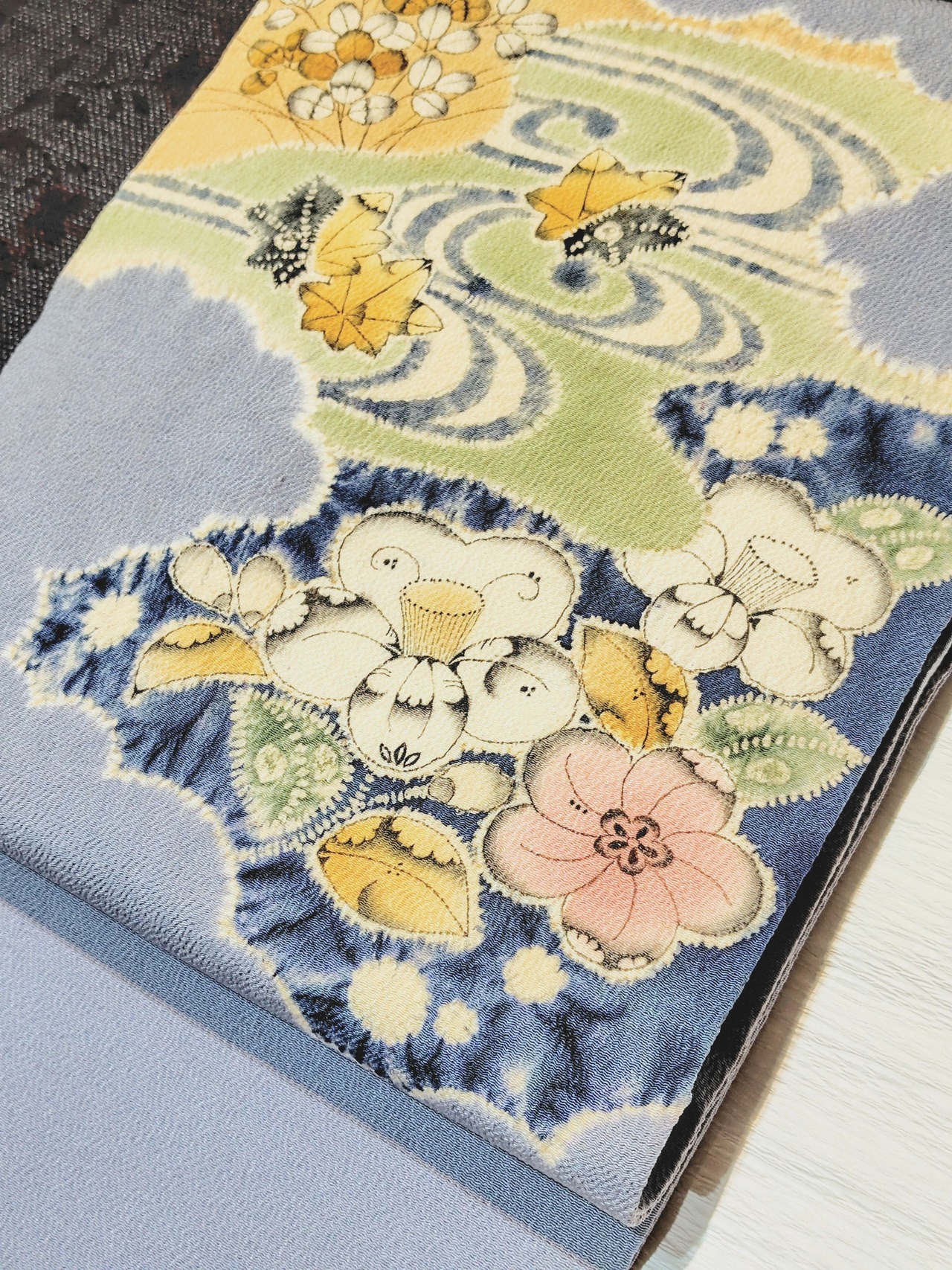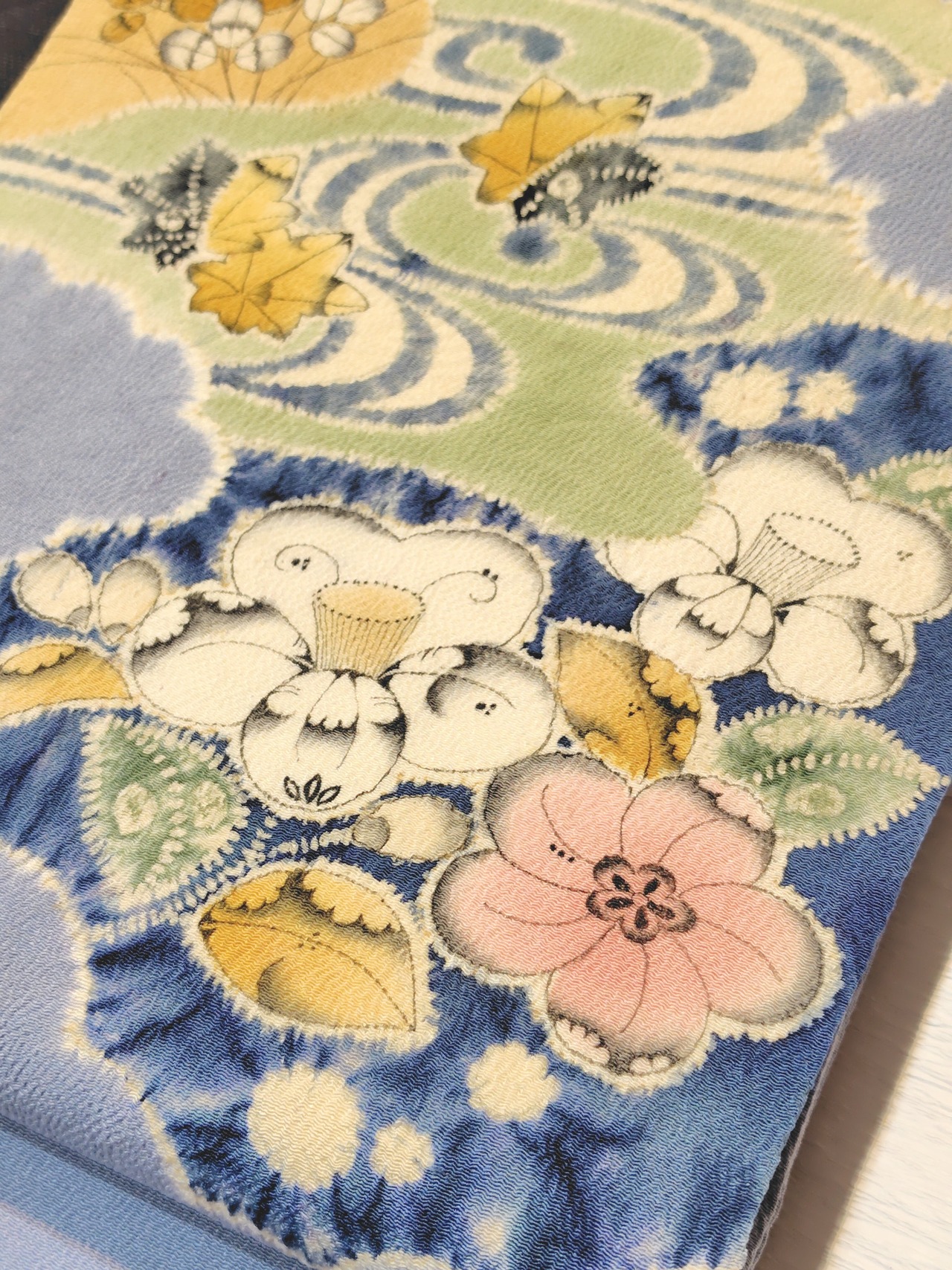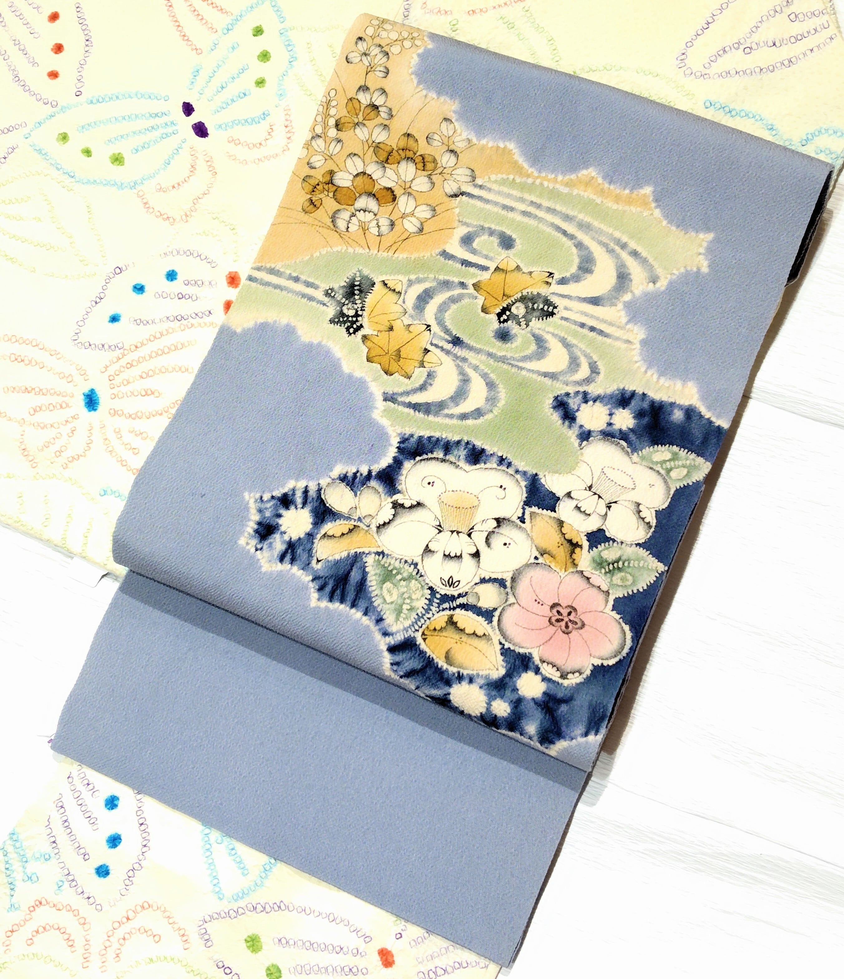 暖色系の帯が多い印象の辻ヶ花の帯、ここまでブルー系が主色の物は珍しいと思います◎