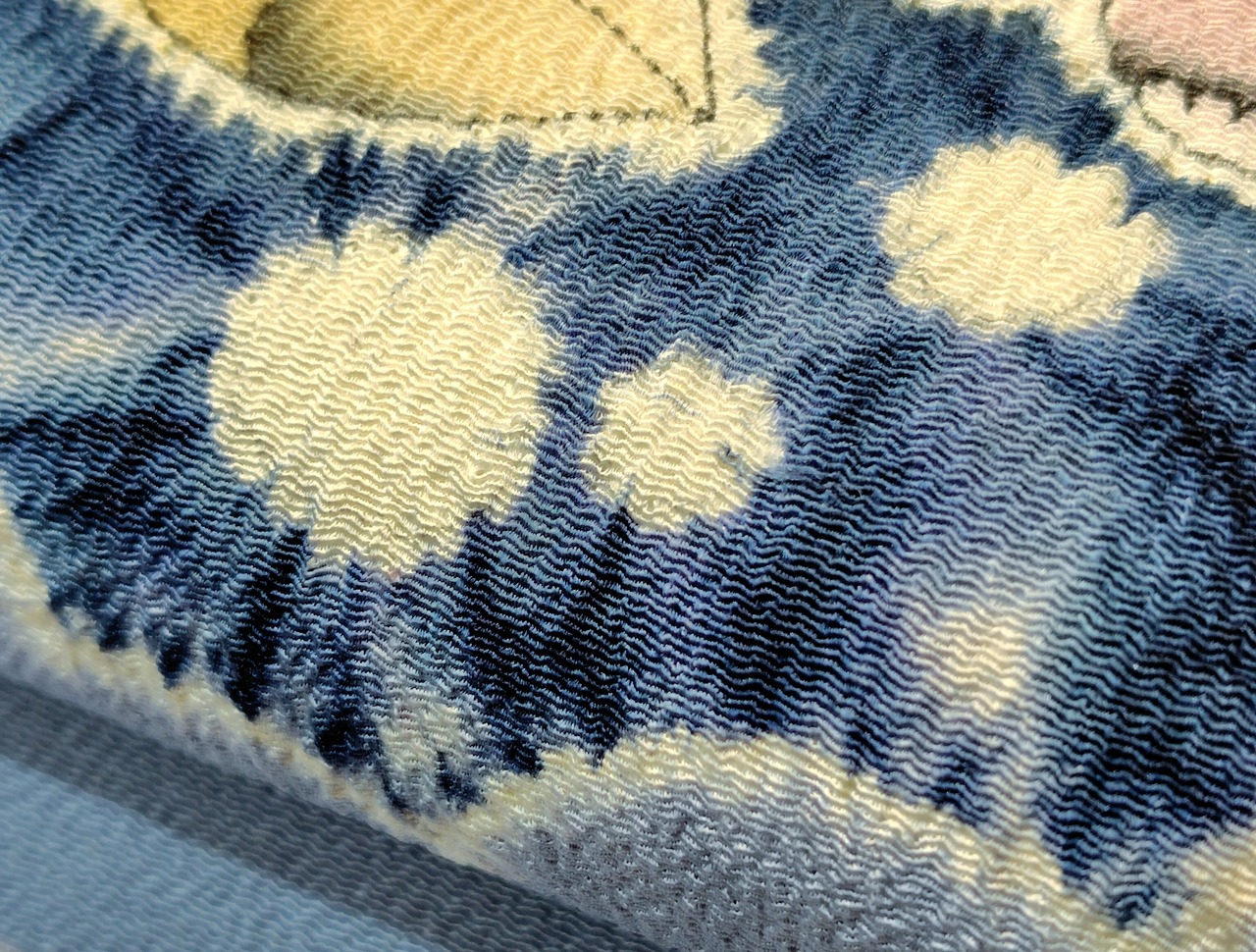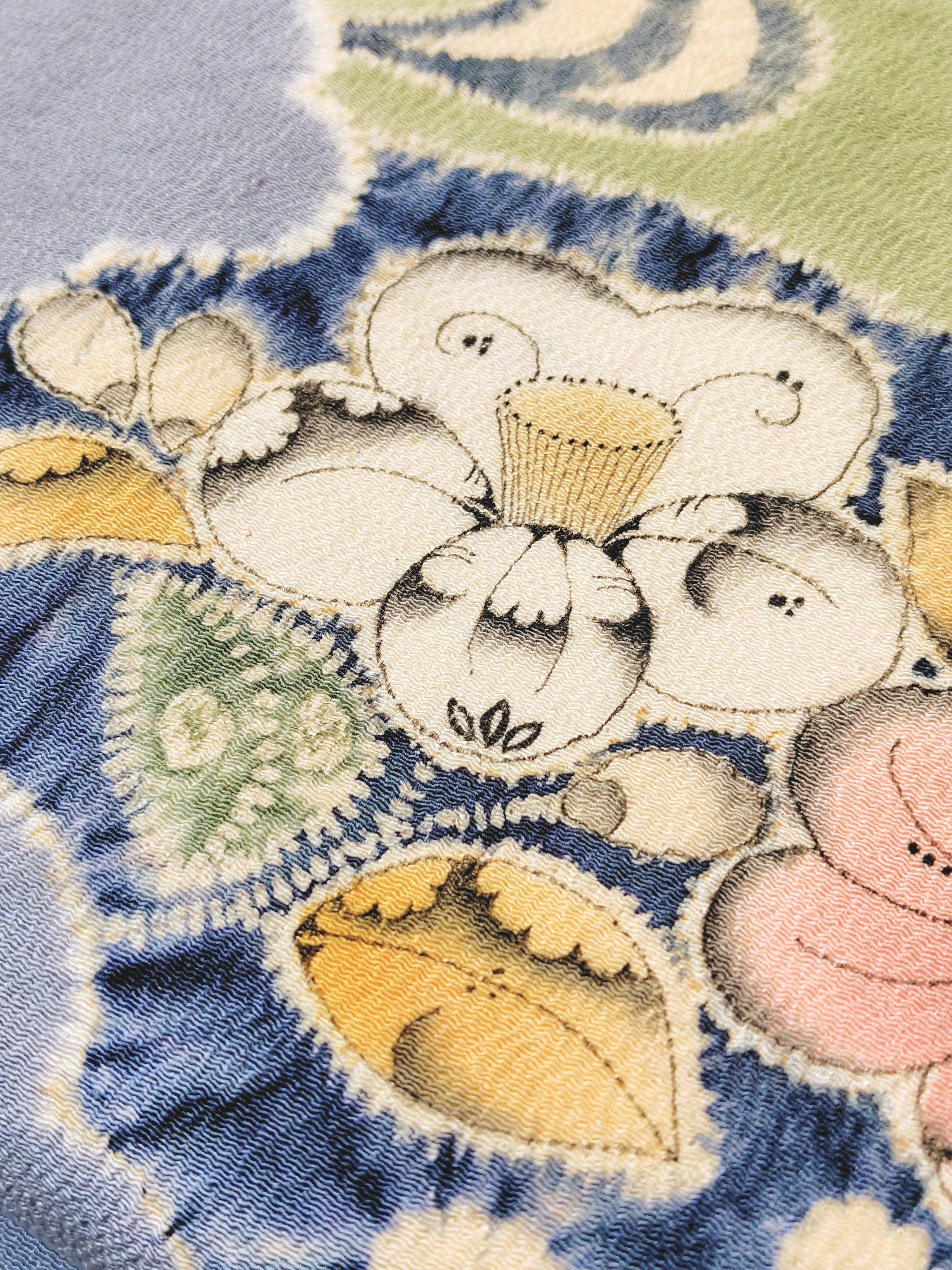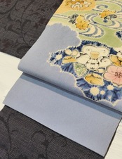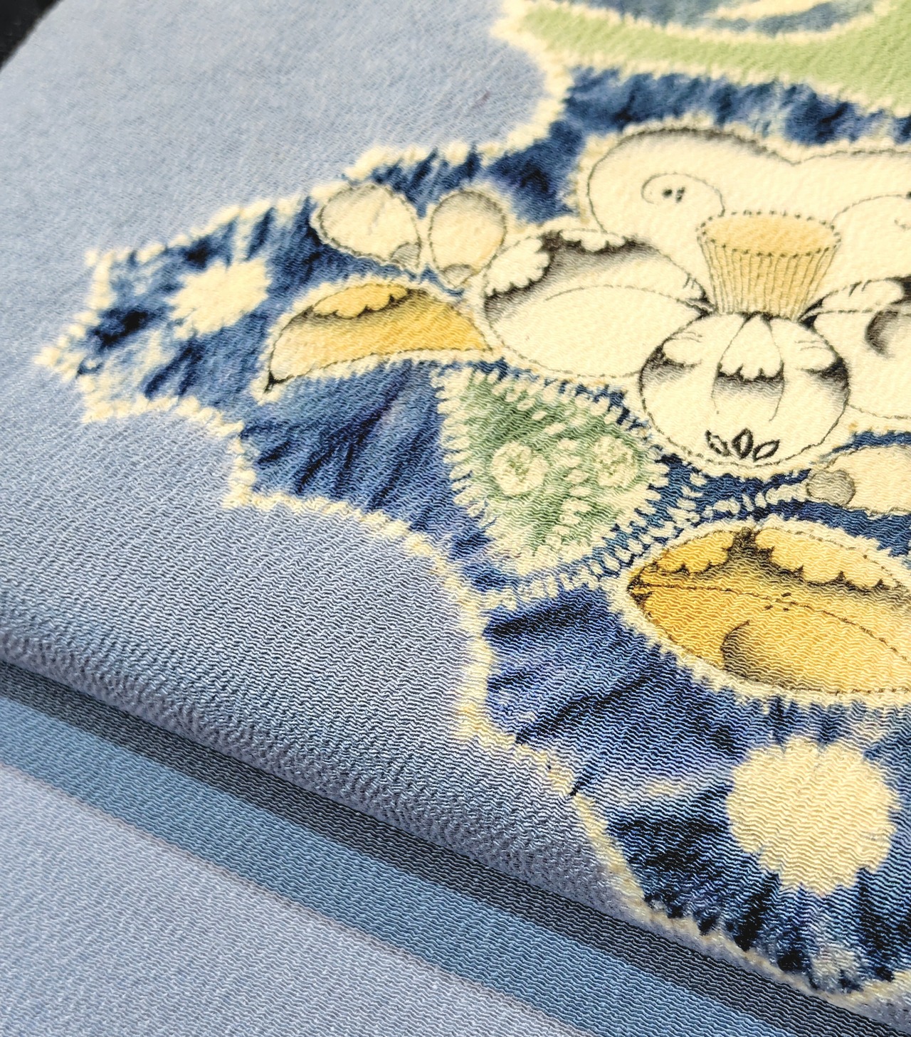 暖色系の帯が多い印象の辻ヶ花の帯、ここまでブルー系が主色の物は珍しいと思います◎