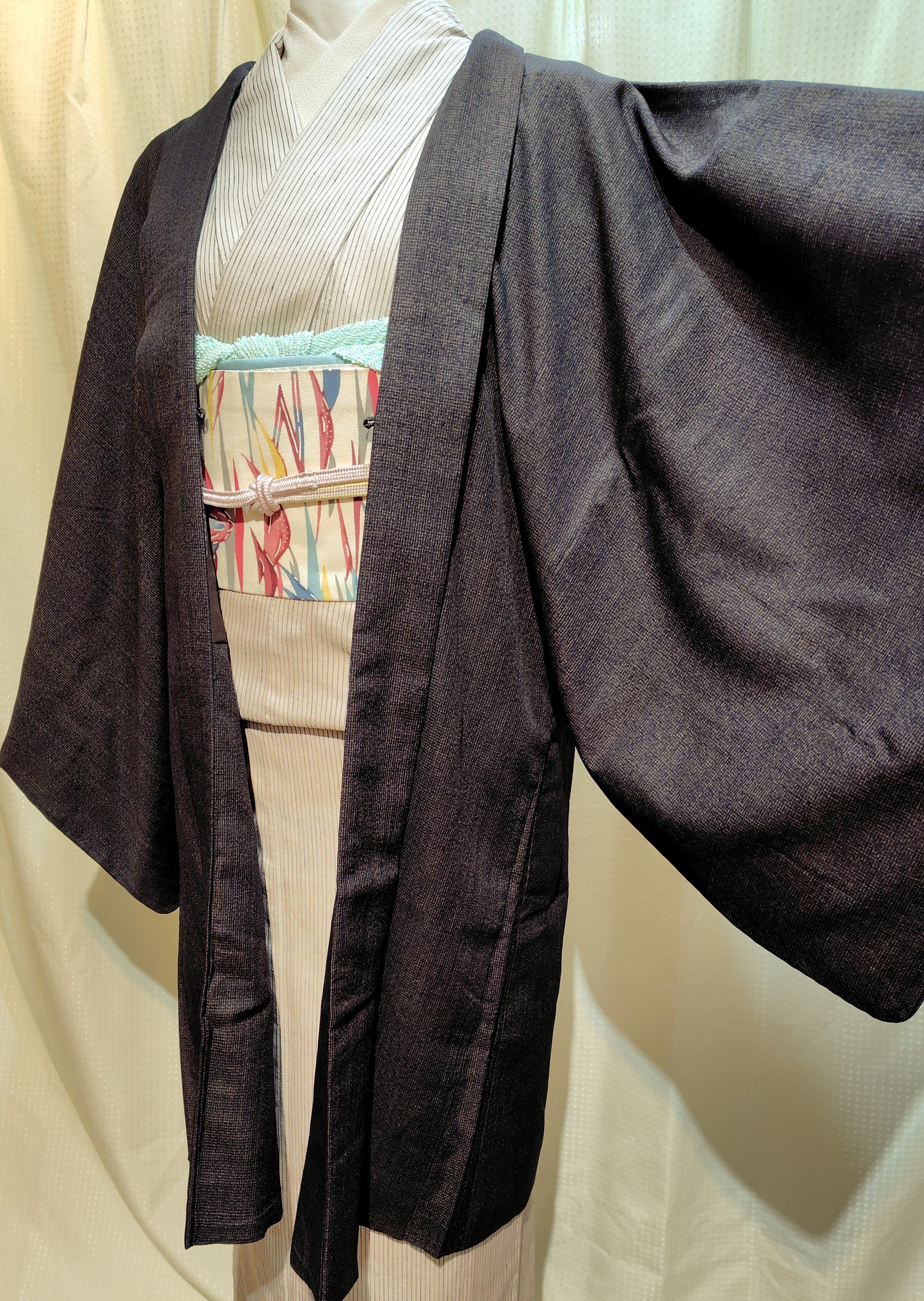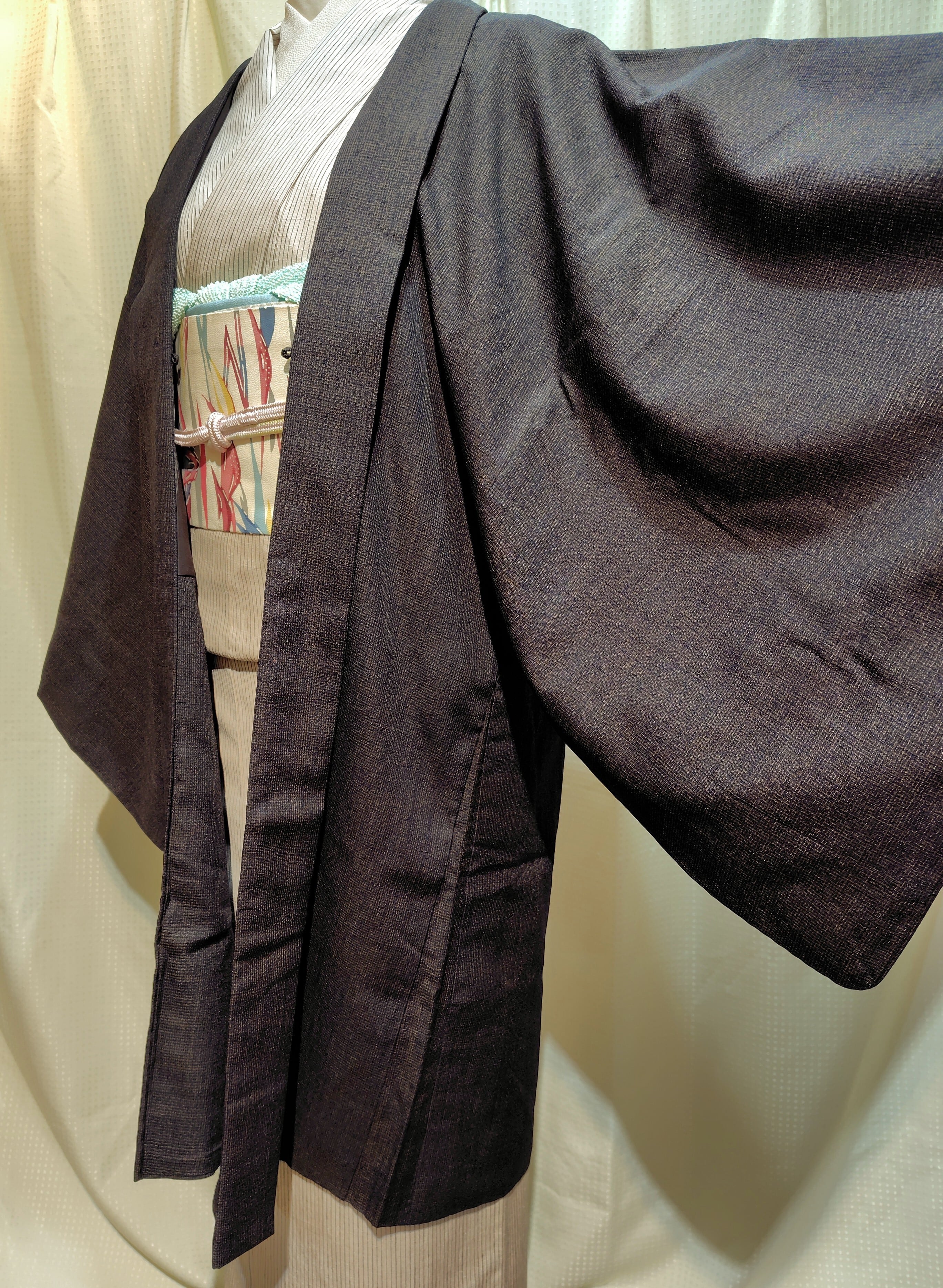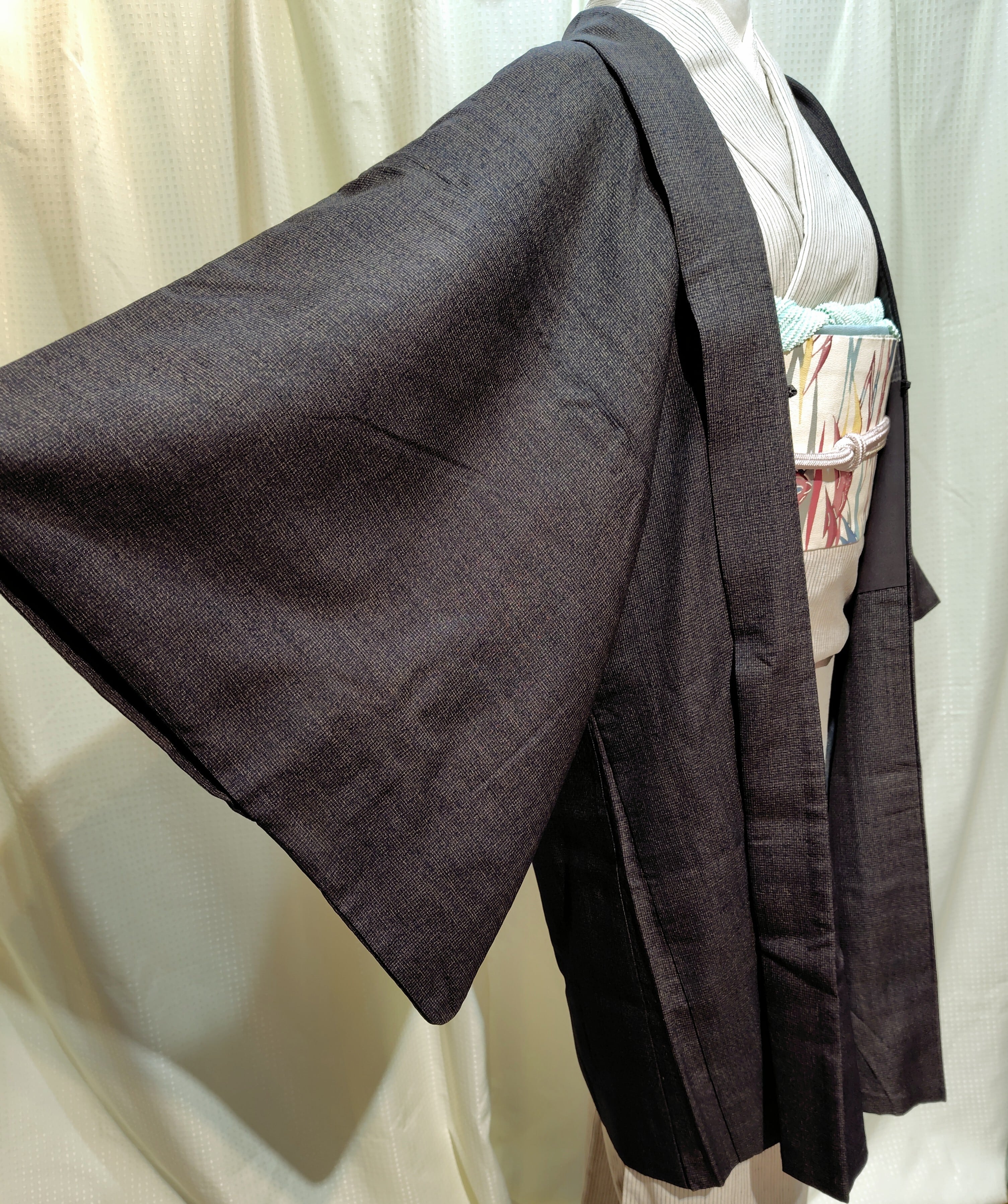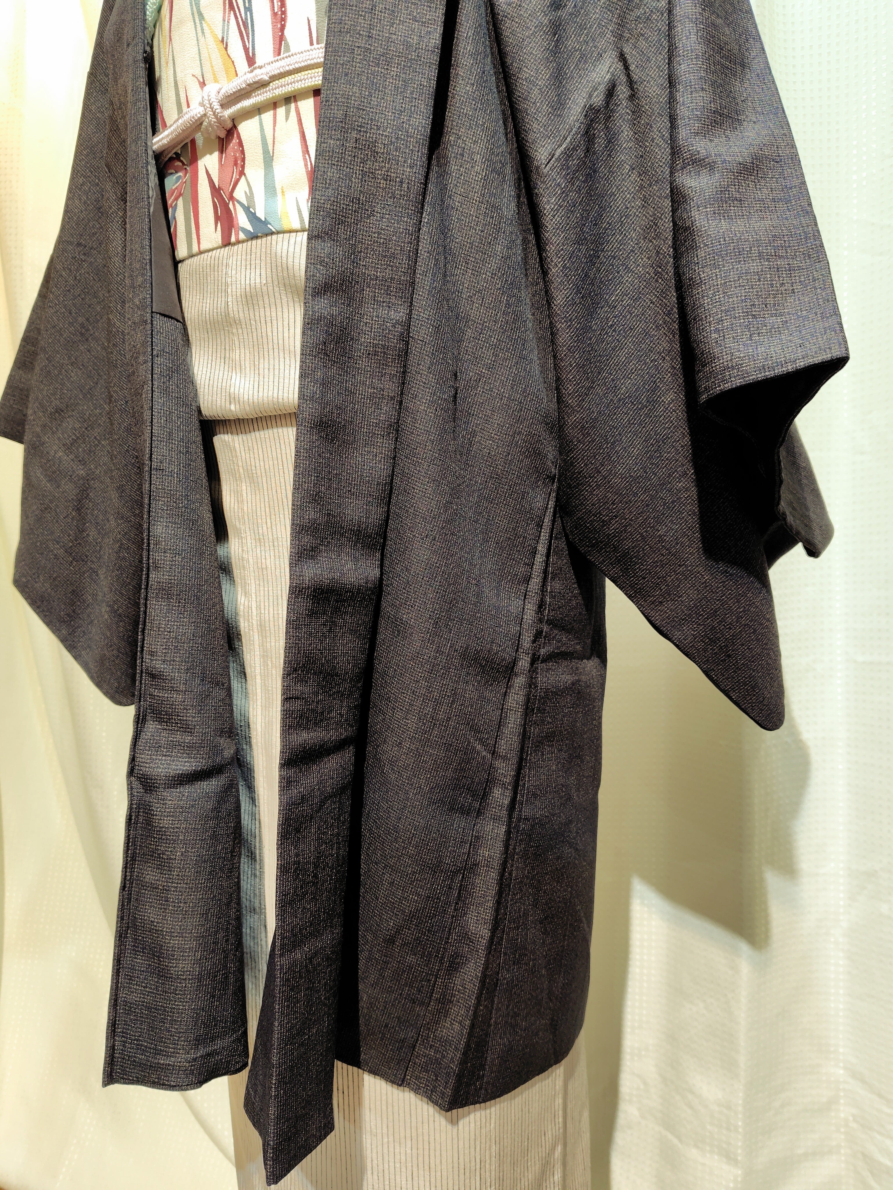 男性物のお仕立ての羽織は、身八つ(脇)が閉じてあるため、風が入らず真冬でも暖かく感じます◎