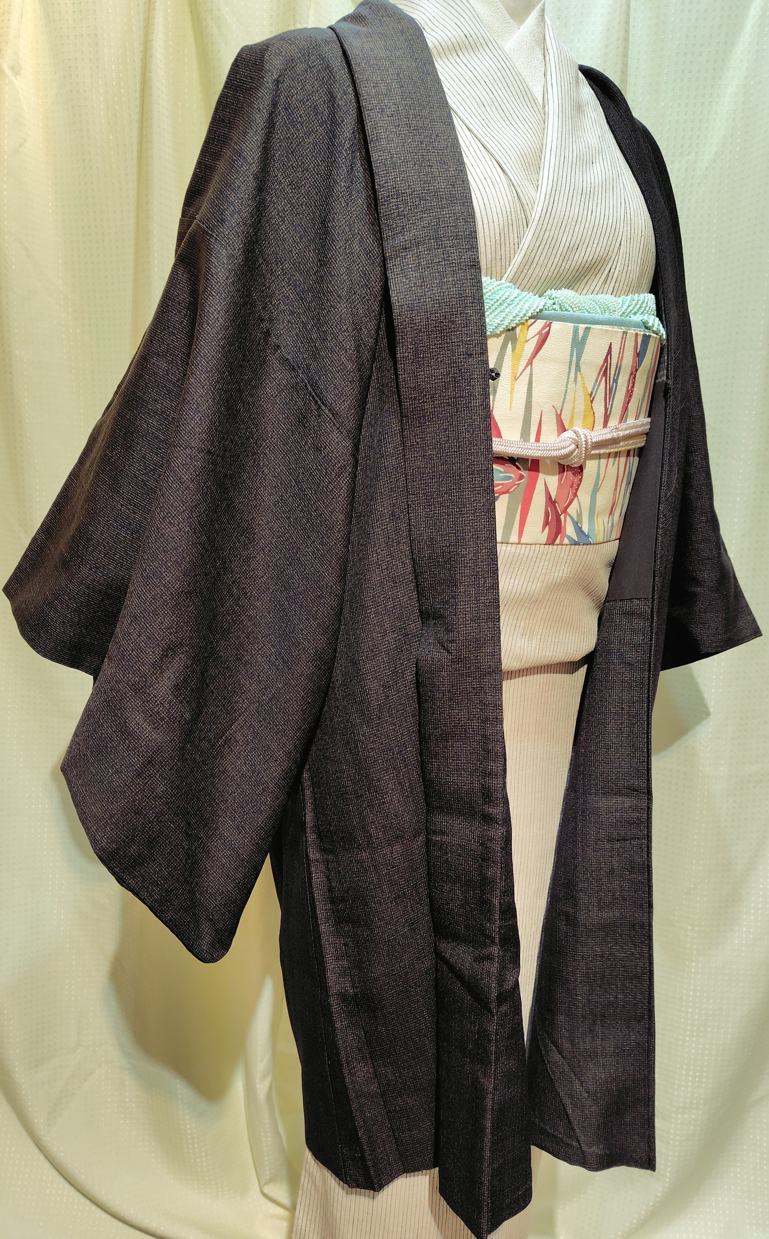 本場結城紬 長羽織 〜黒地 柔らかなタイプ〜です。