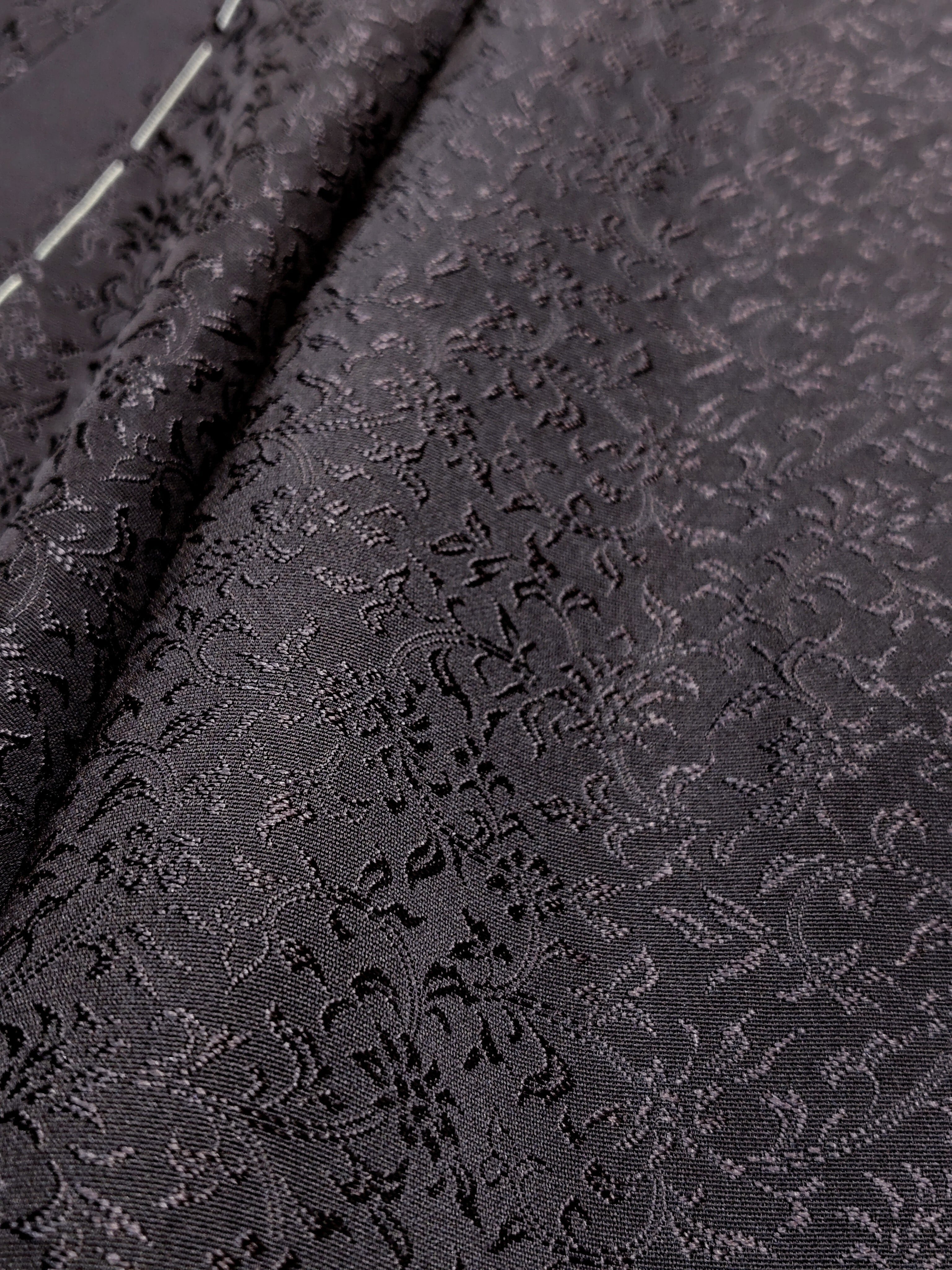光が当たると地紋が、くっきり浮かび上がり、また黒真珠のような美しい艶感もお楽しみ頂けます。