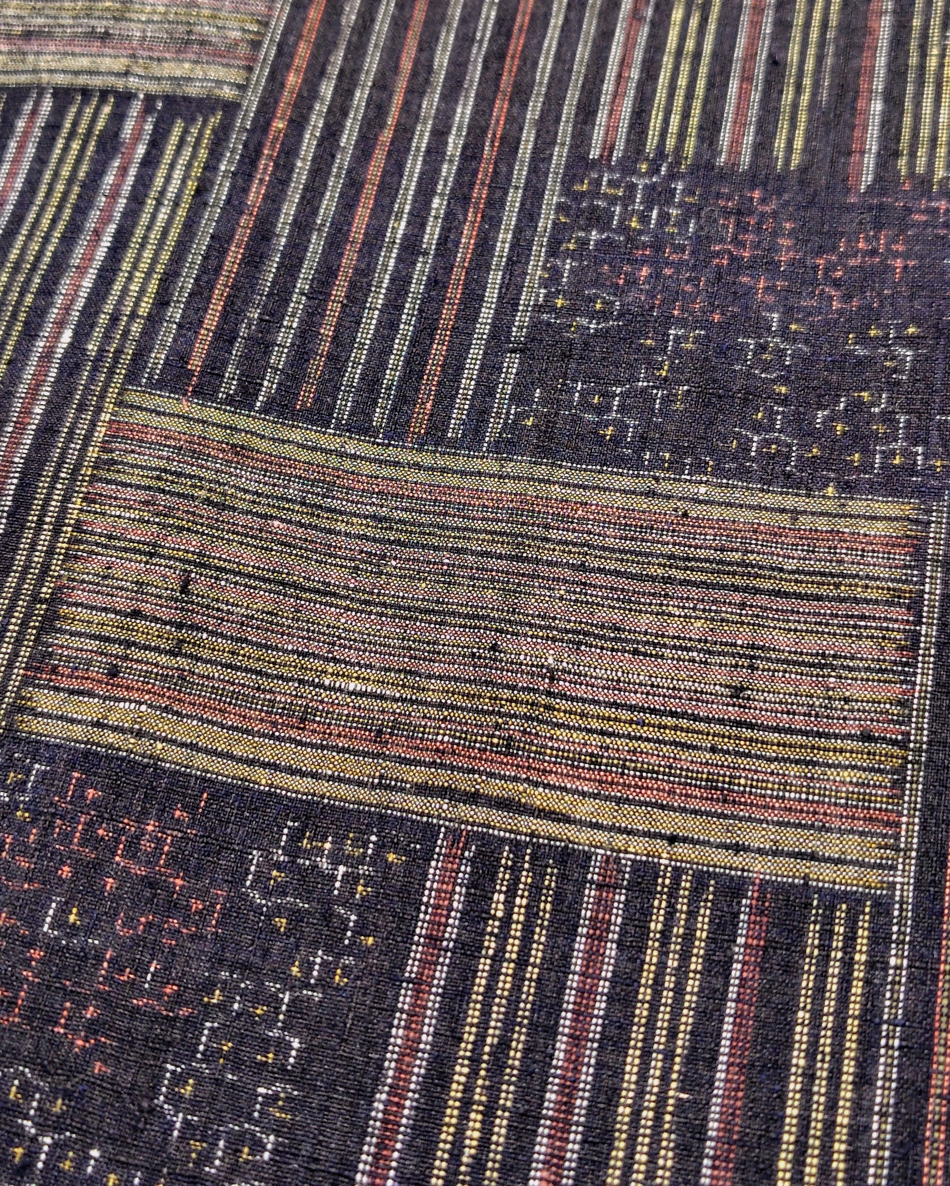 亀甲、ボーダー(段)、ストライプ(縞)の3柄がパッチワークのように交互に組み合わせられているタイプは、とても珍しいです◎