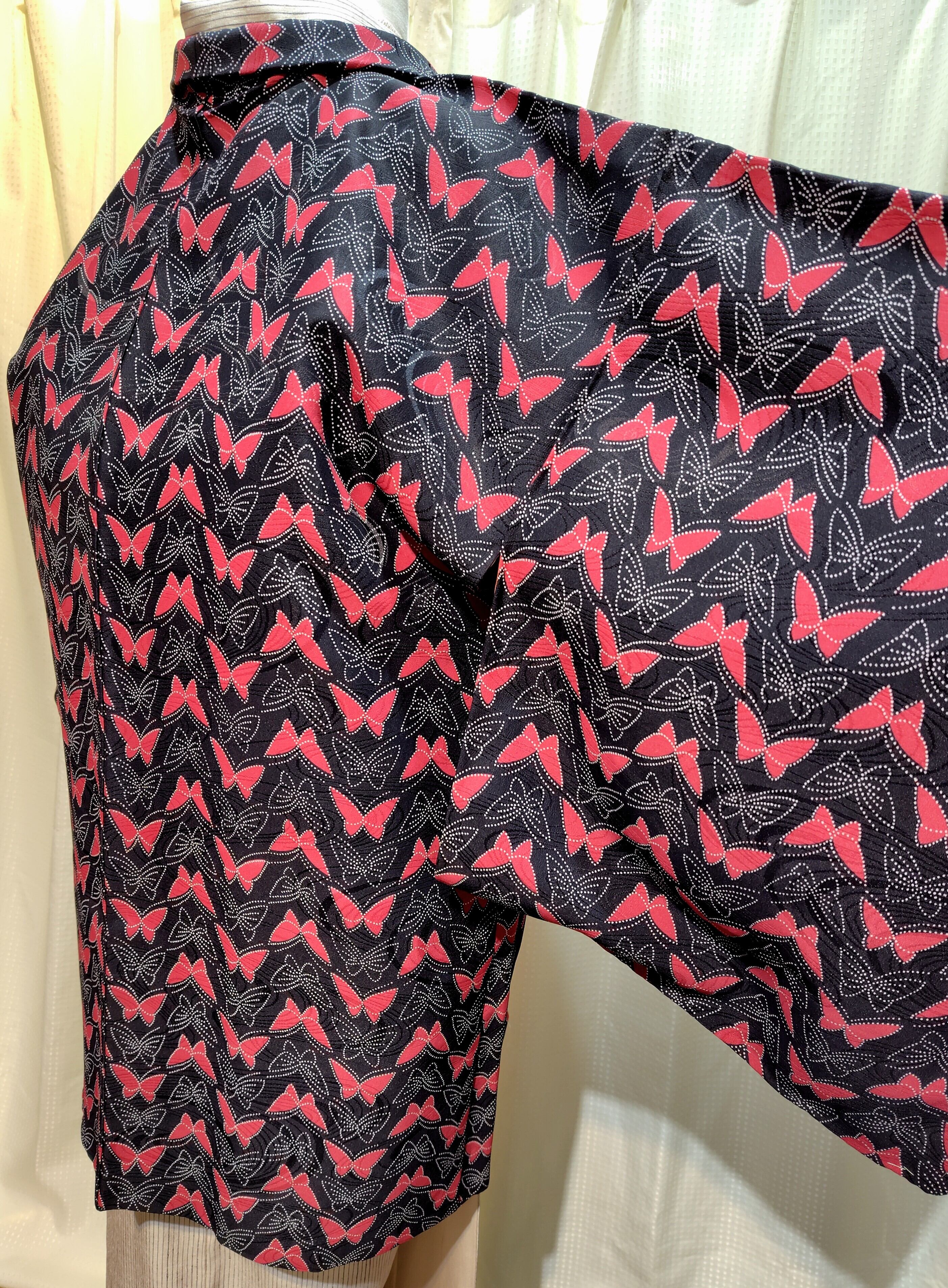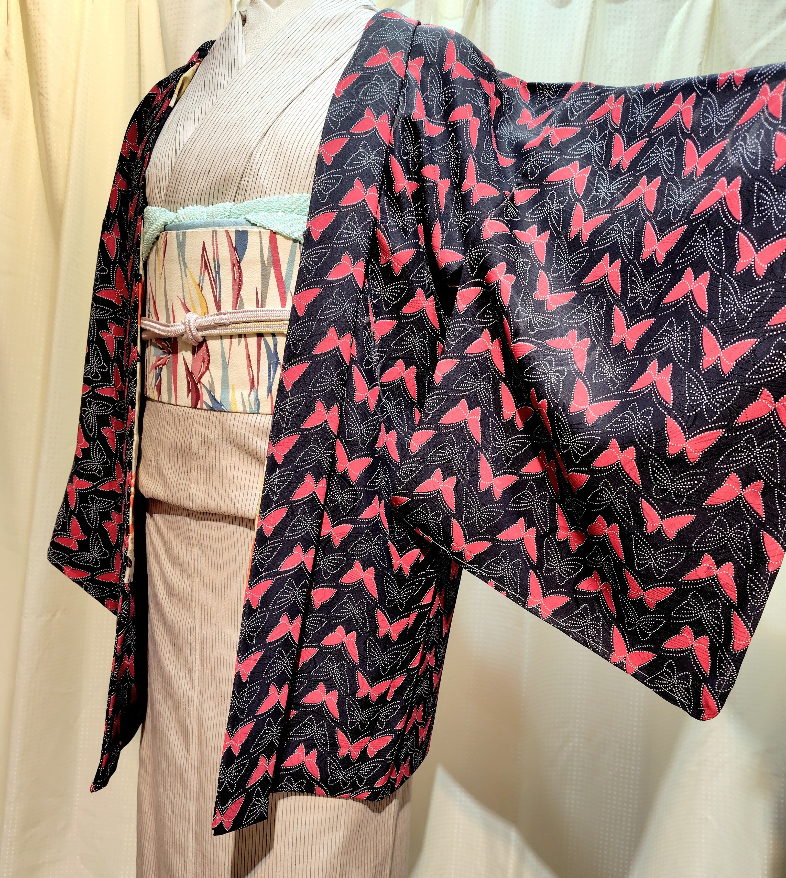 黒地に蝶々柄の羽織り〜大正ロマンな裏地〜です。