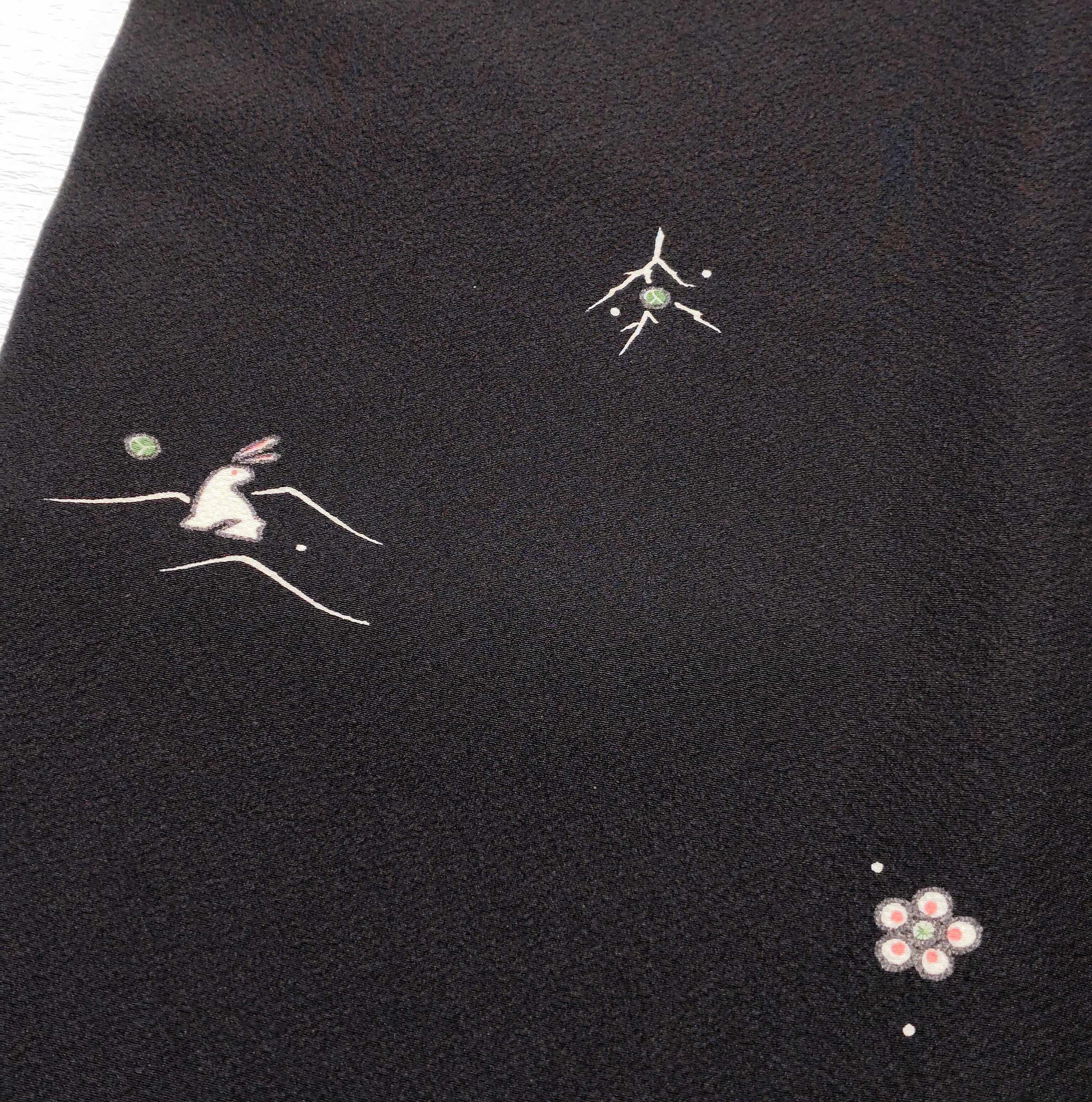 黒地に白うさぎ柄の飛び柄小紋です。