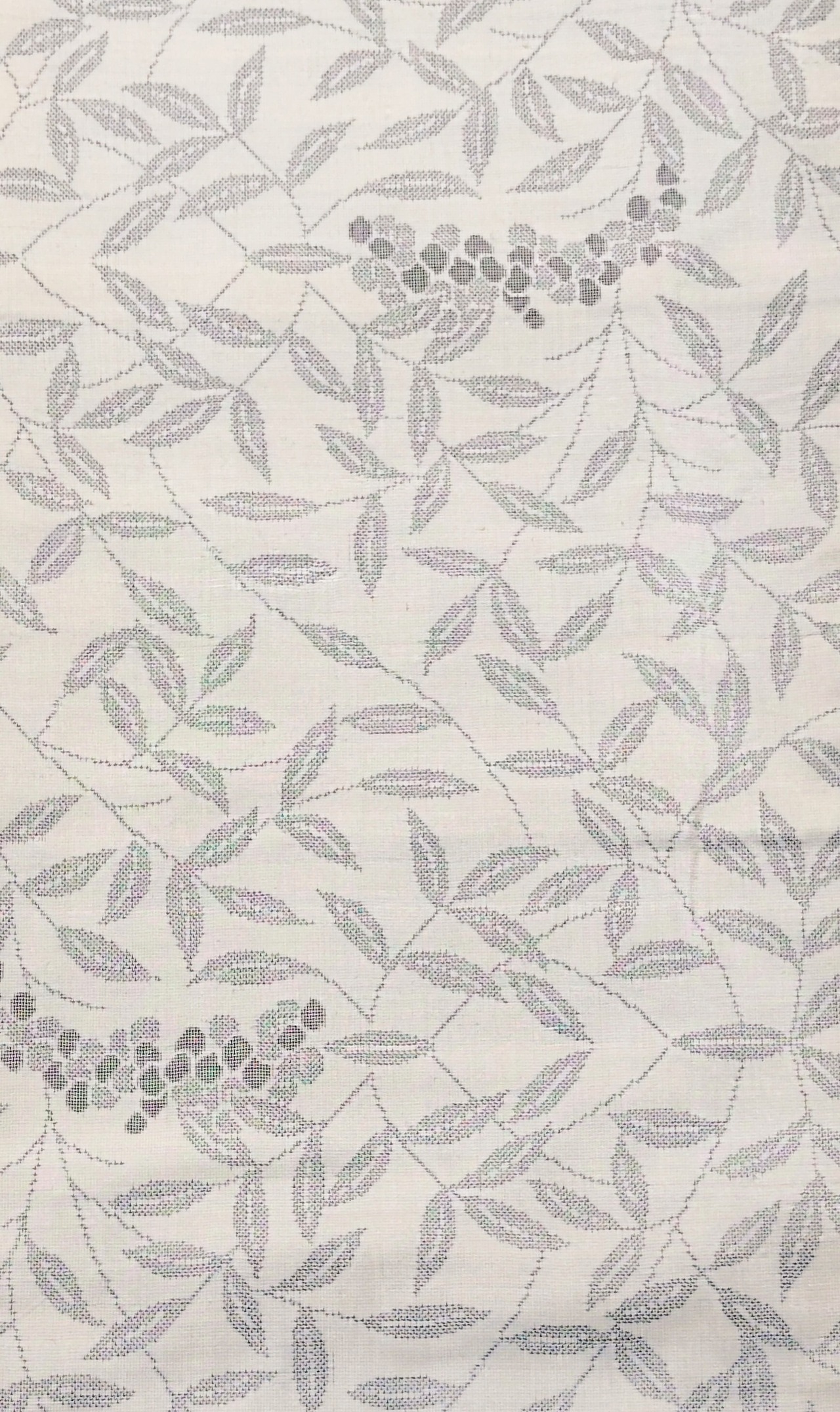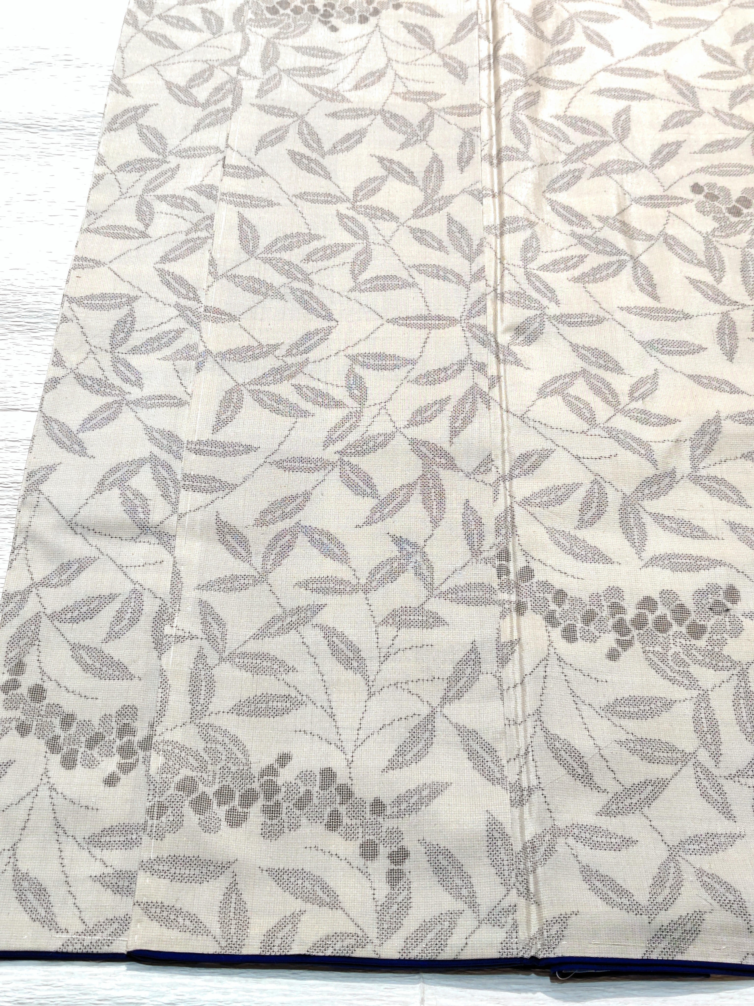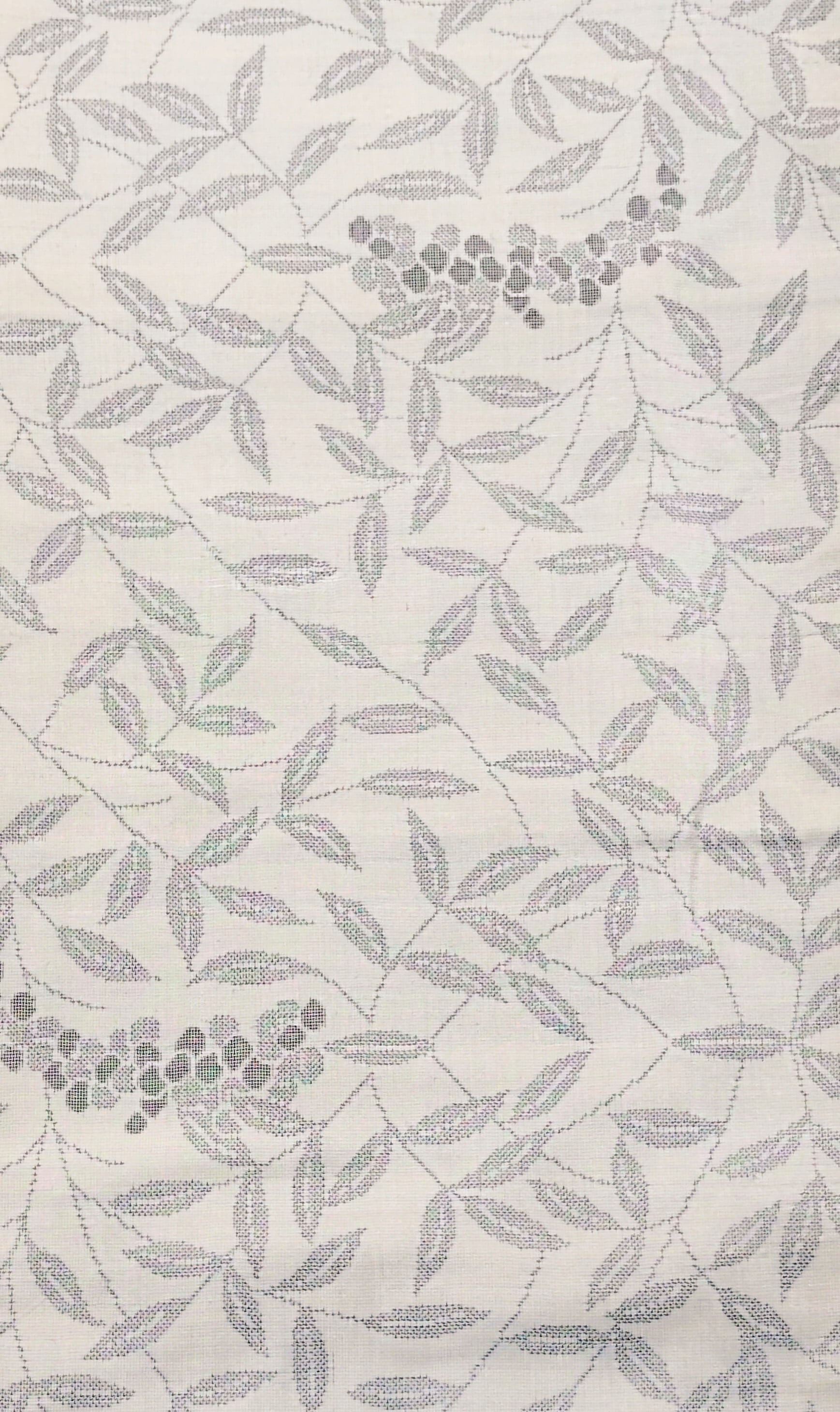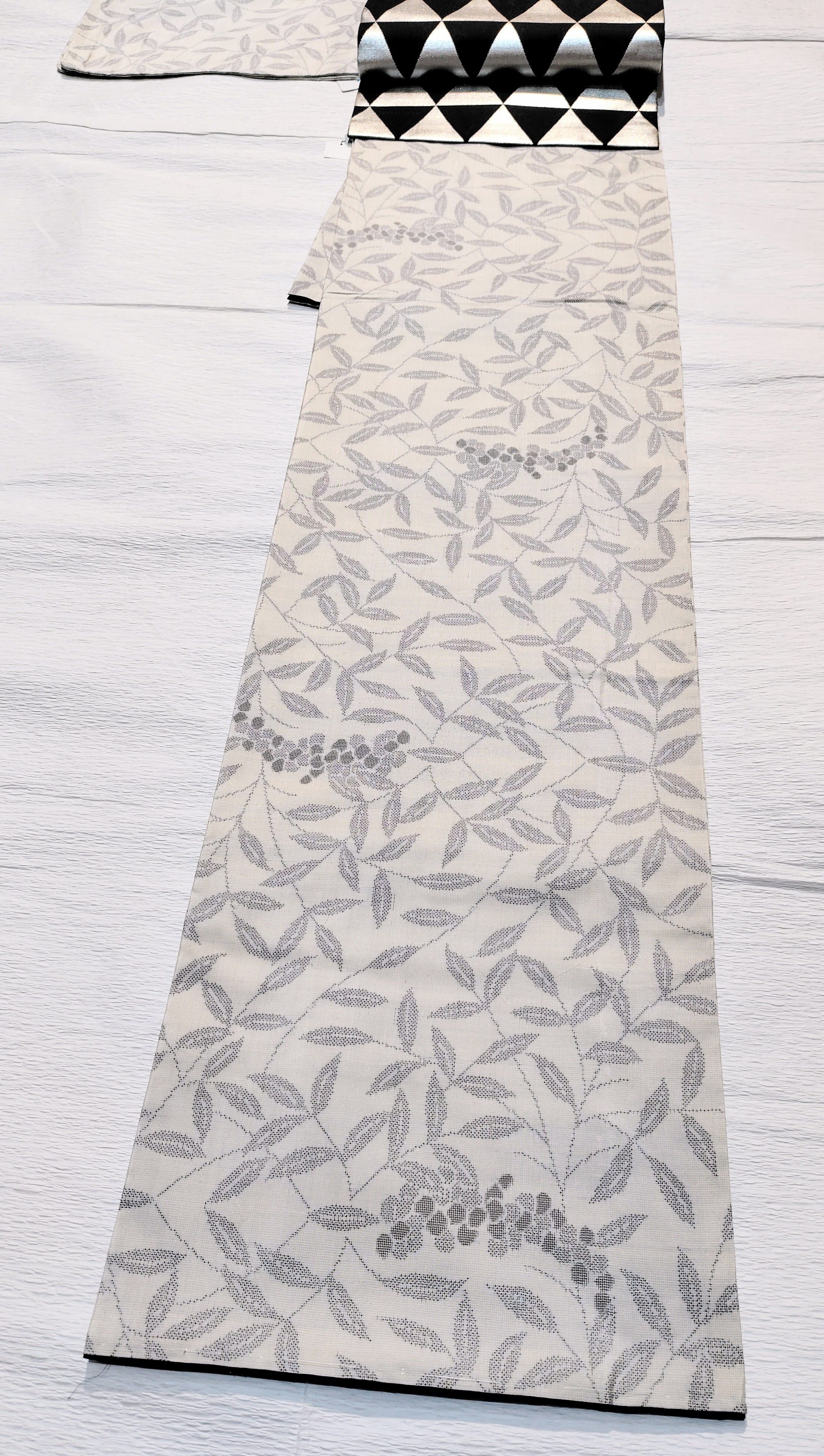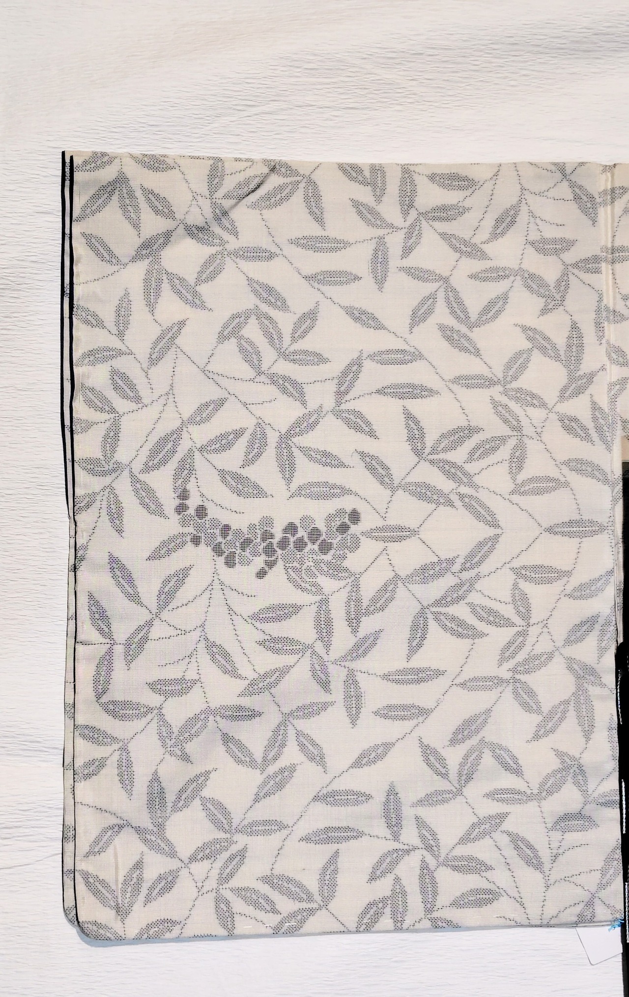 白地にグレーの濃淡で万両(もしくは千両)柄という、シンプルな美しさです。