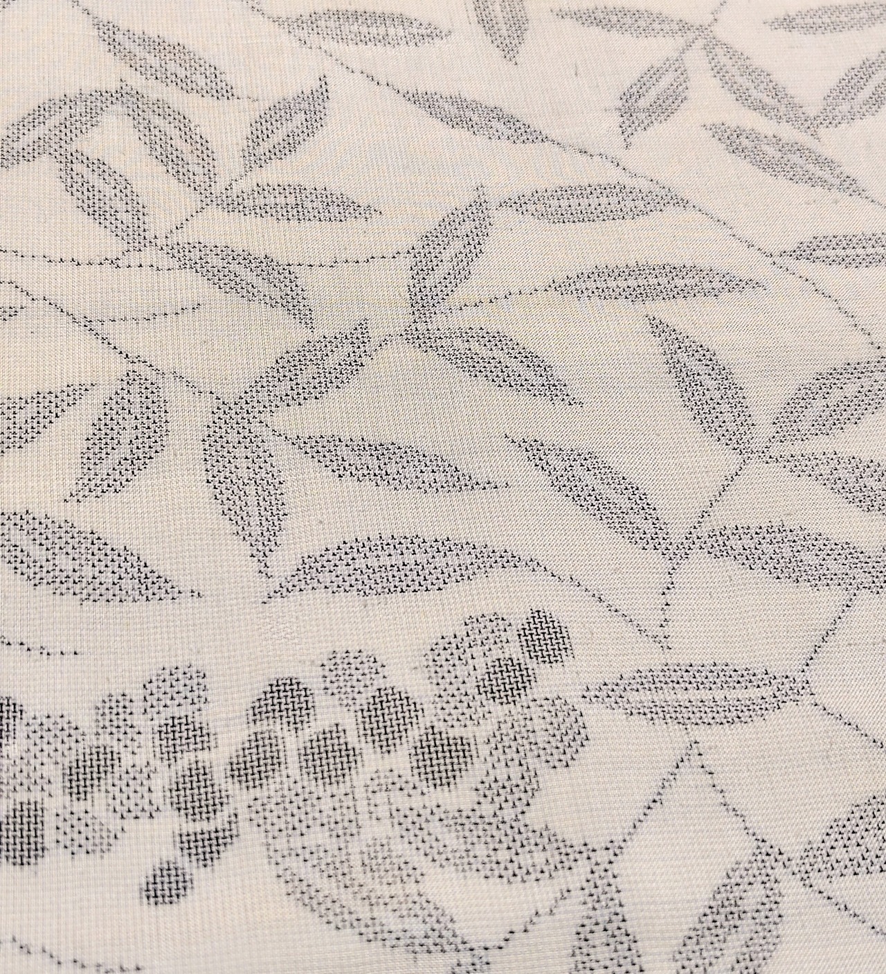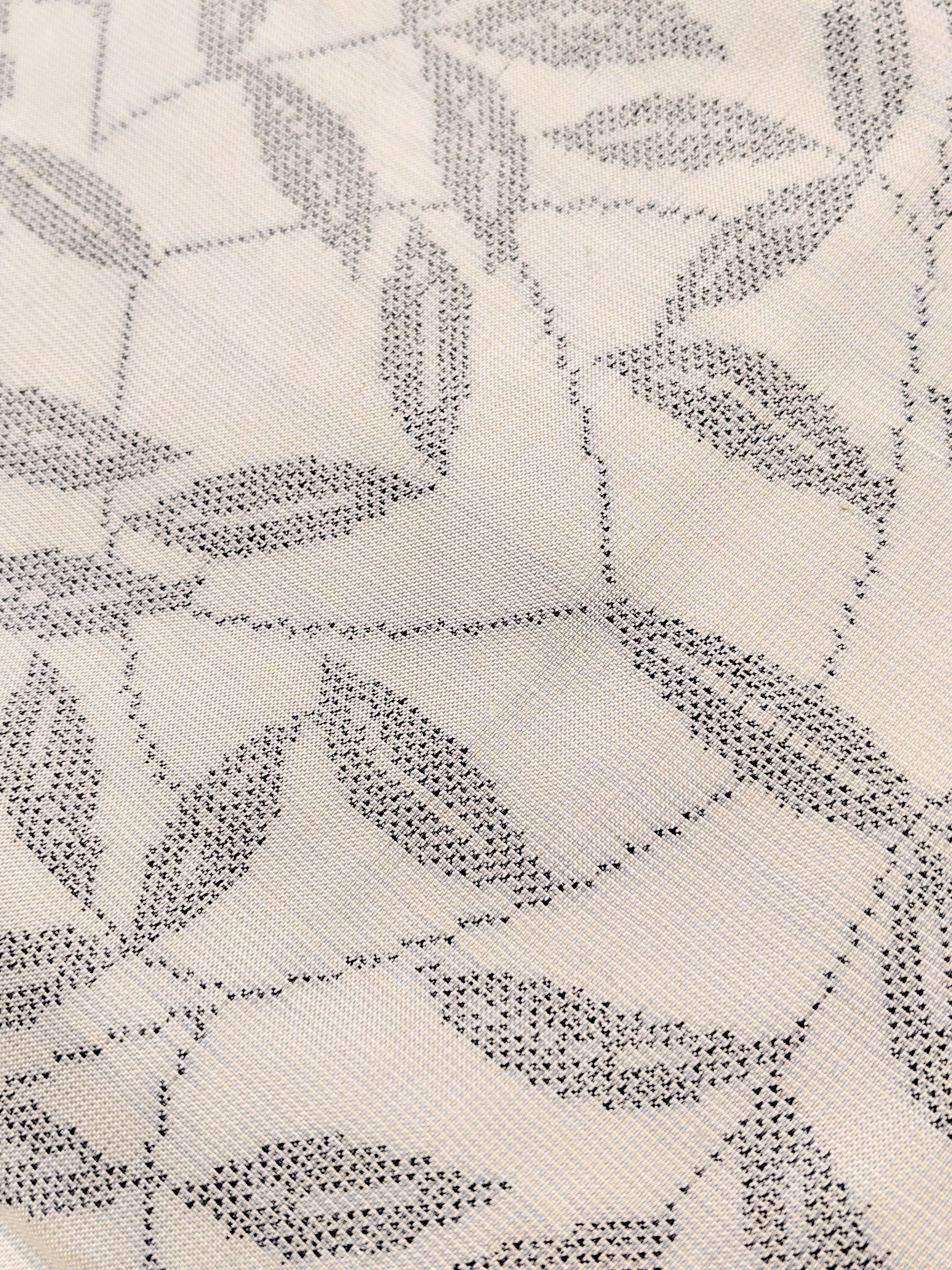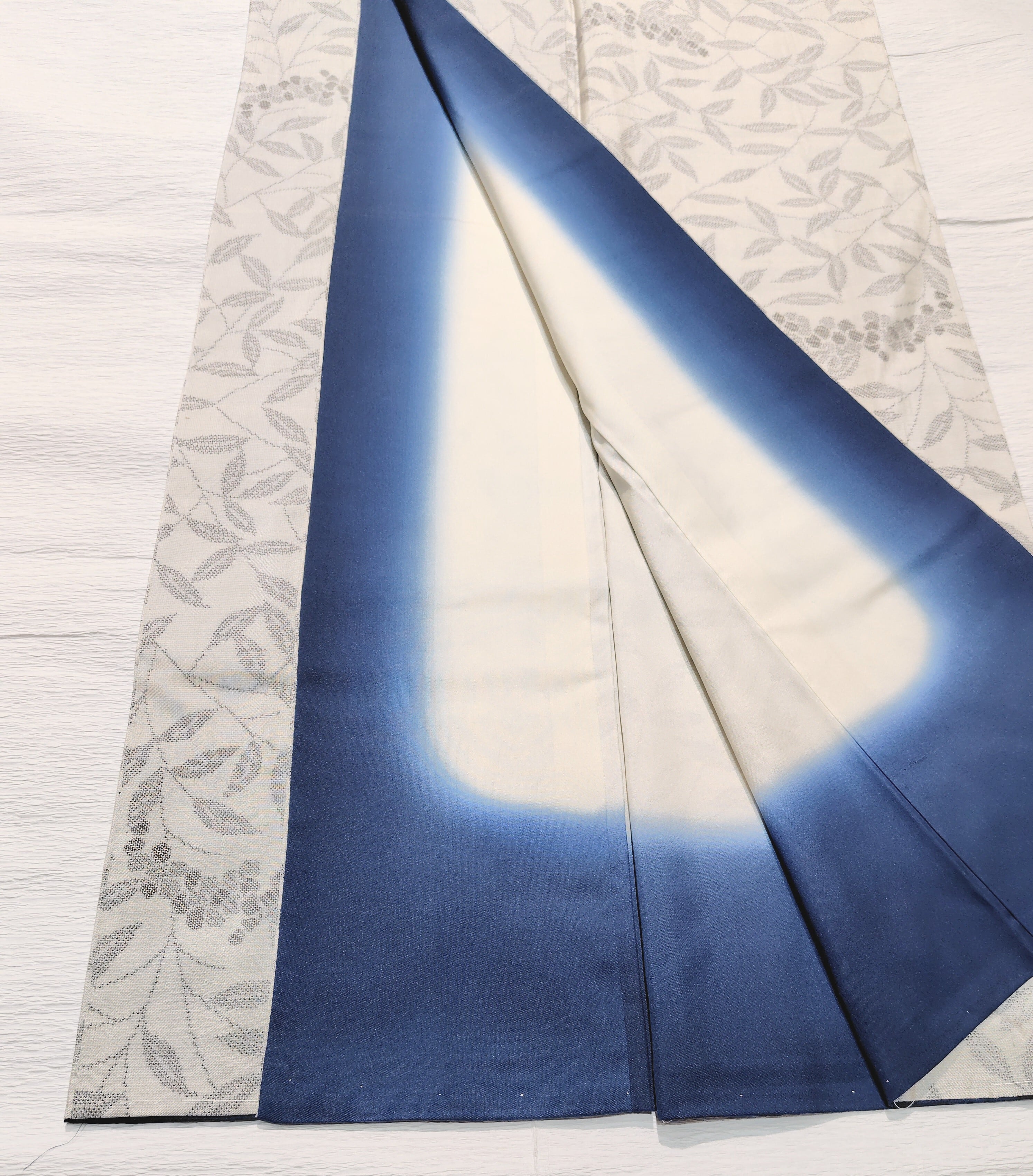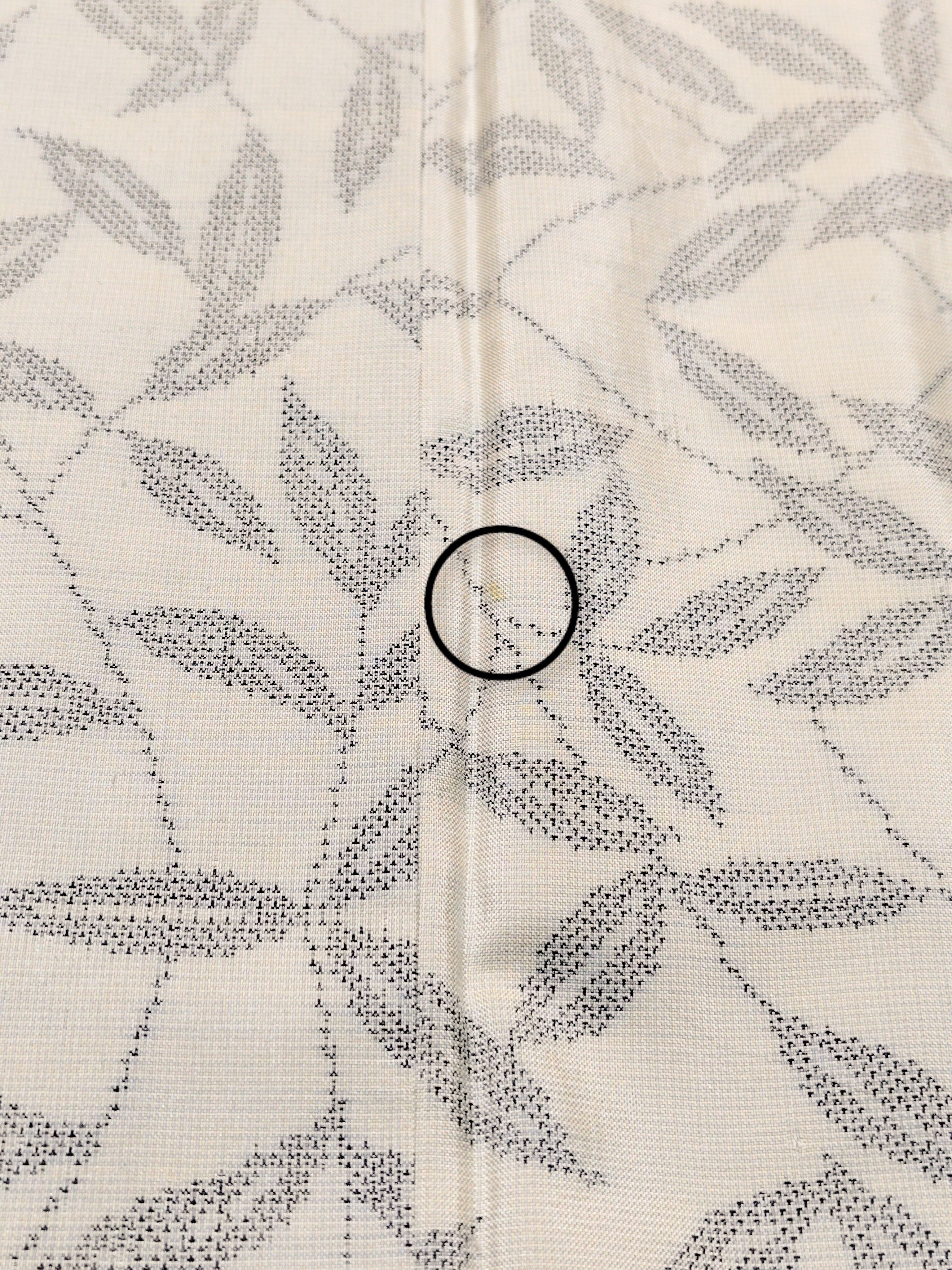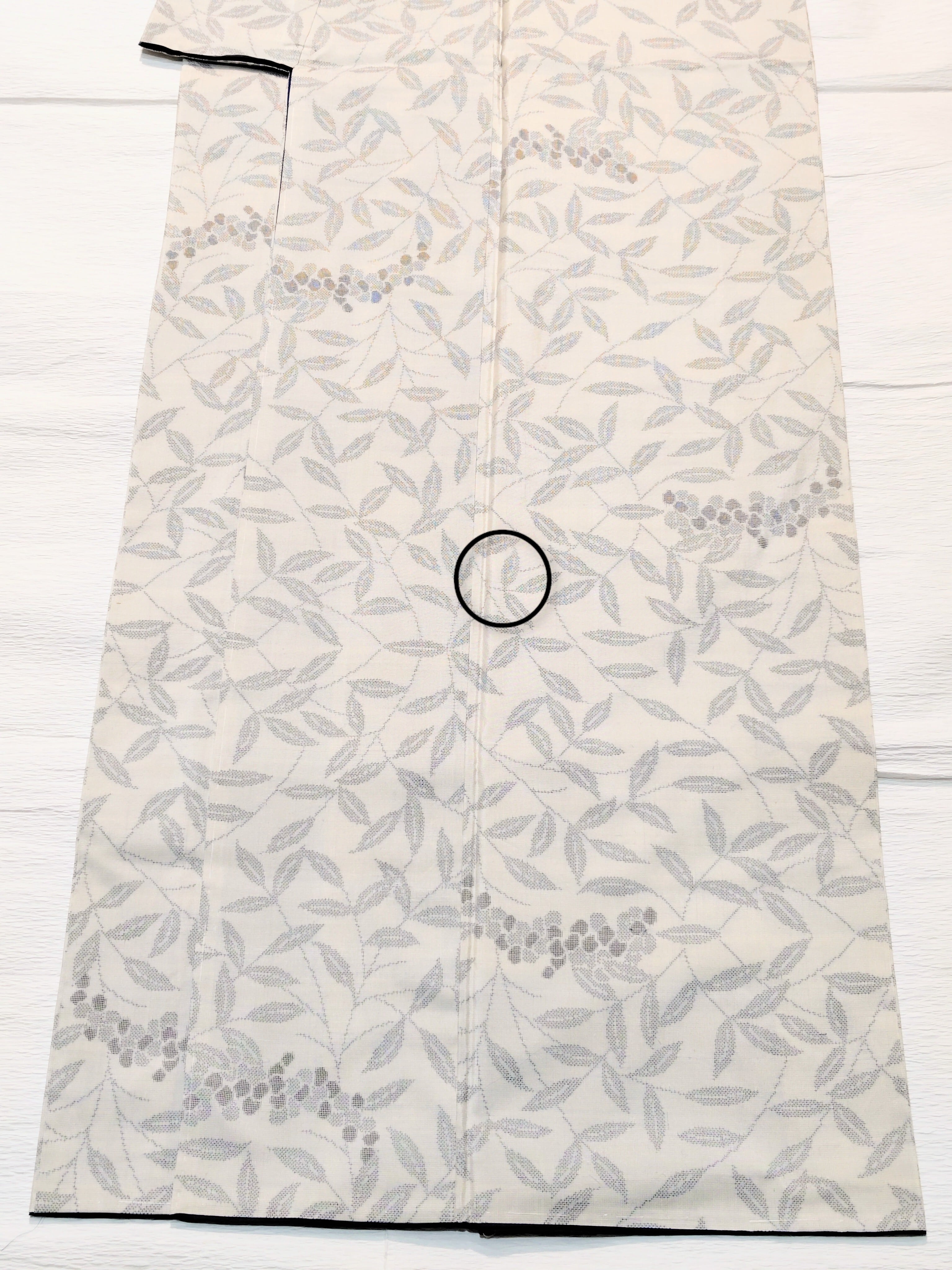 白地の面が多めのこちらのタイプは胴裏、八掛け、縫込みなどの生地が重なる部分など下の布が透けるため白地がアイボリー色やくすんで見え真っ白ではなく感じます。