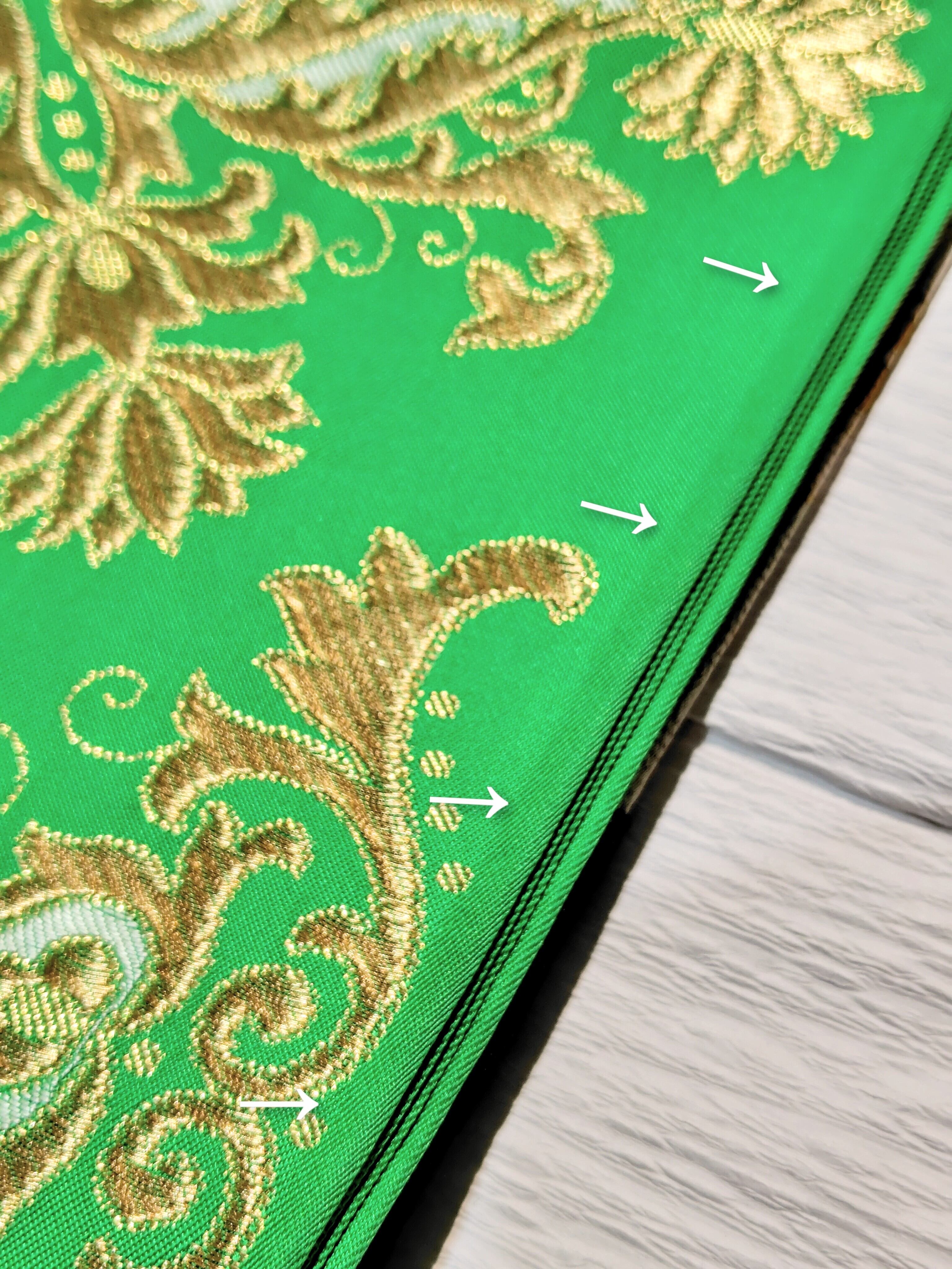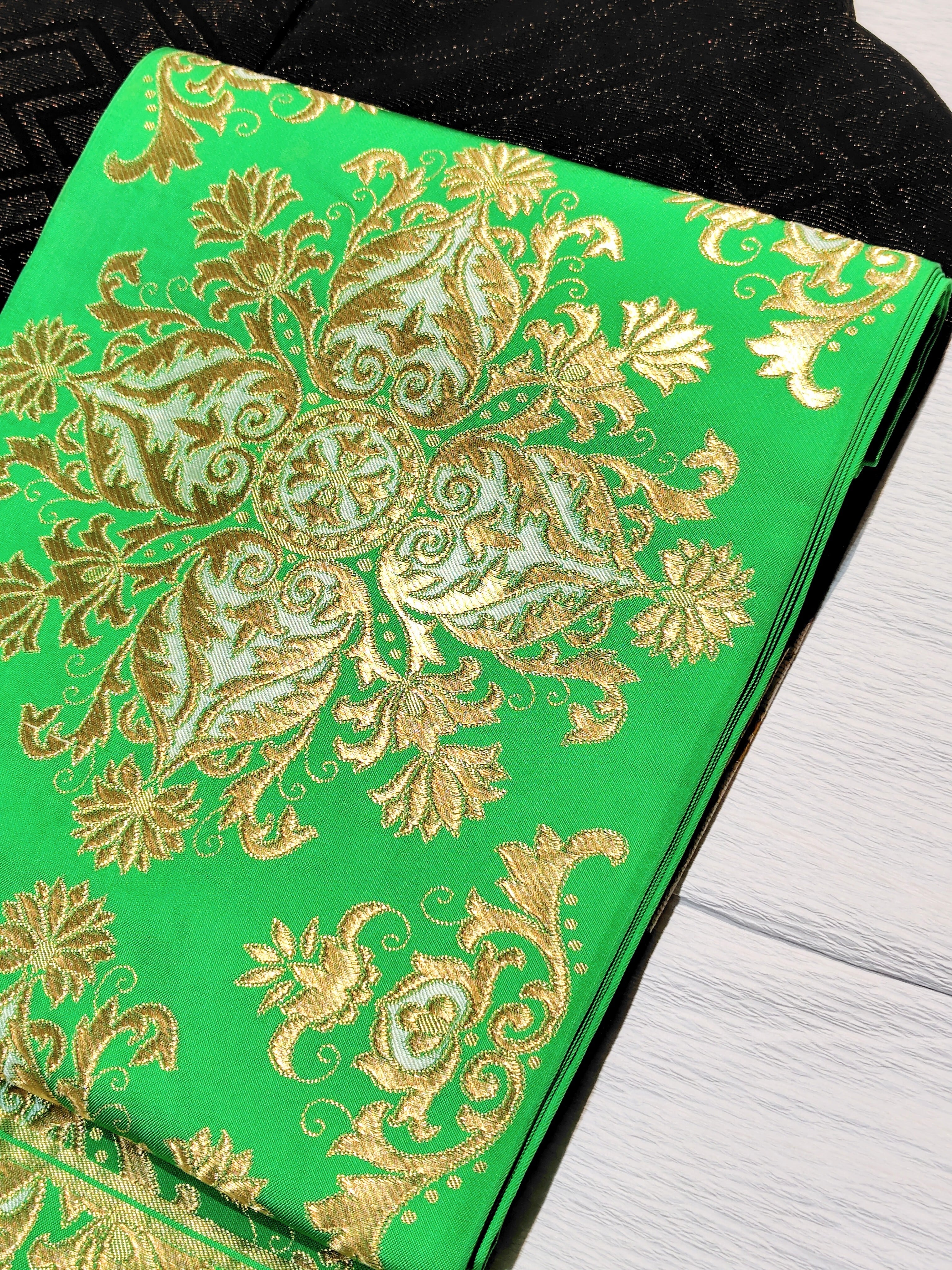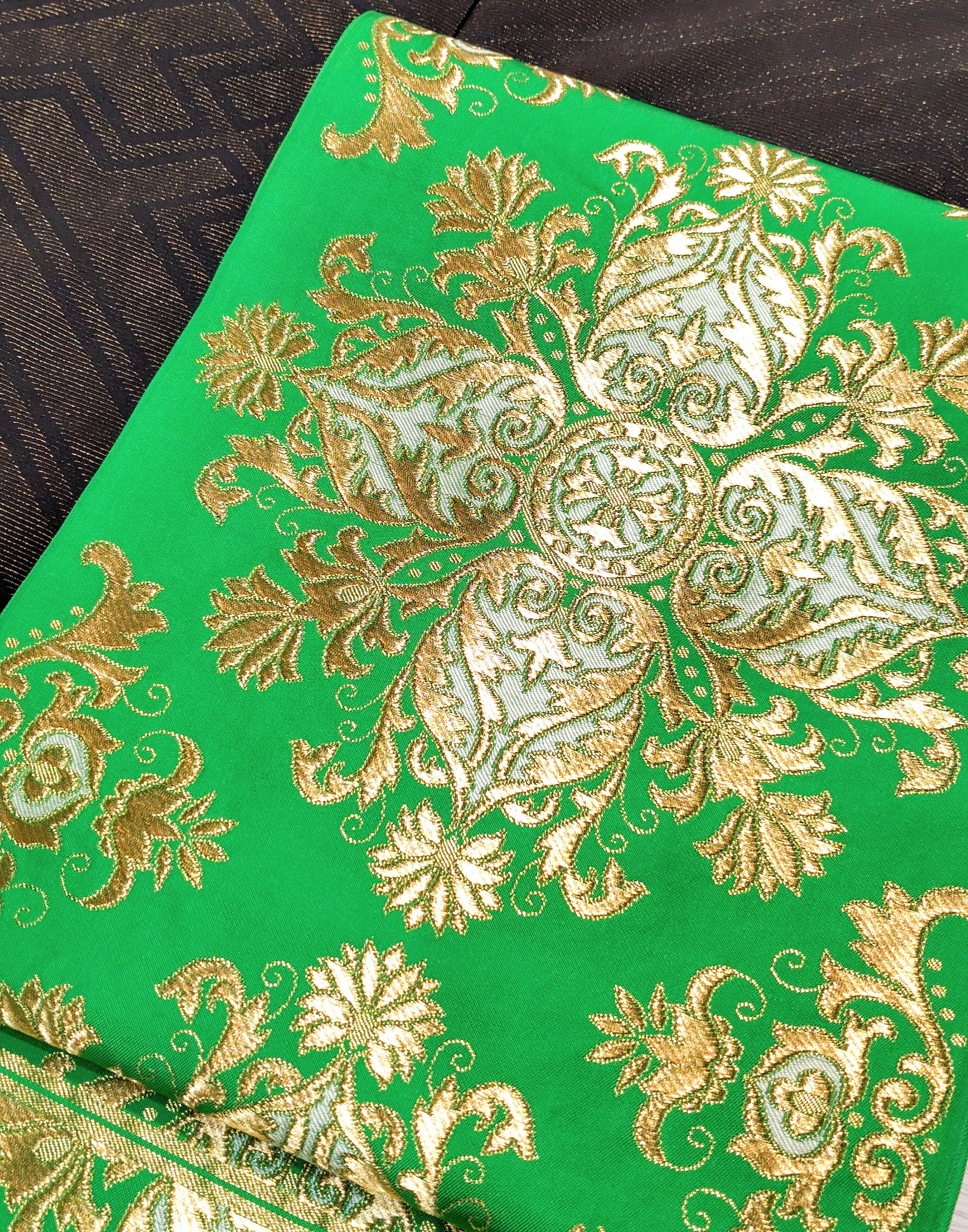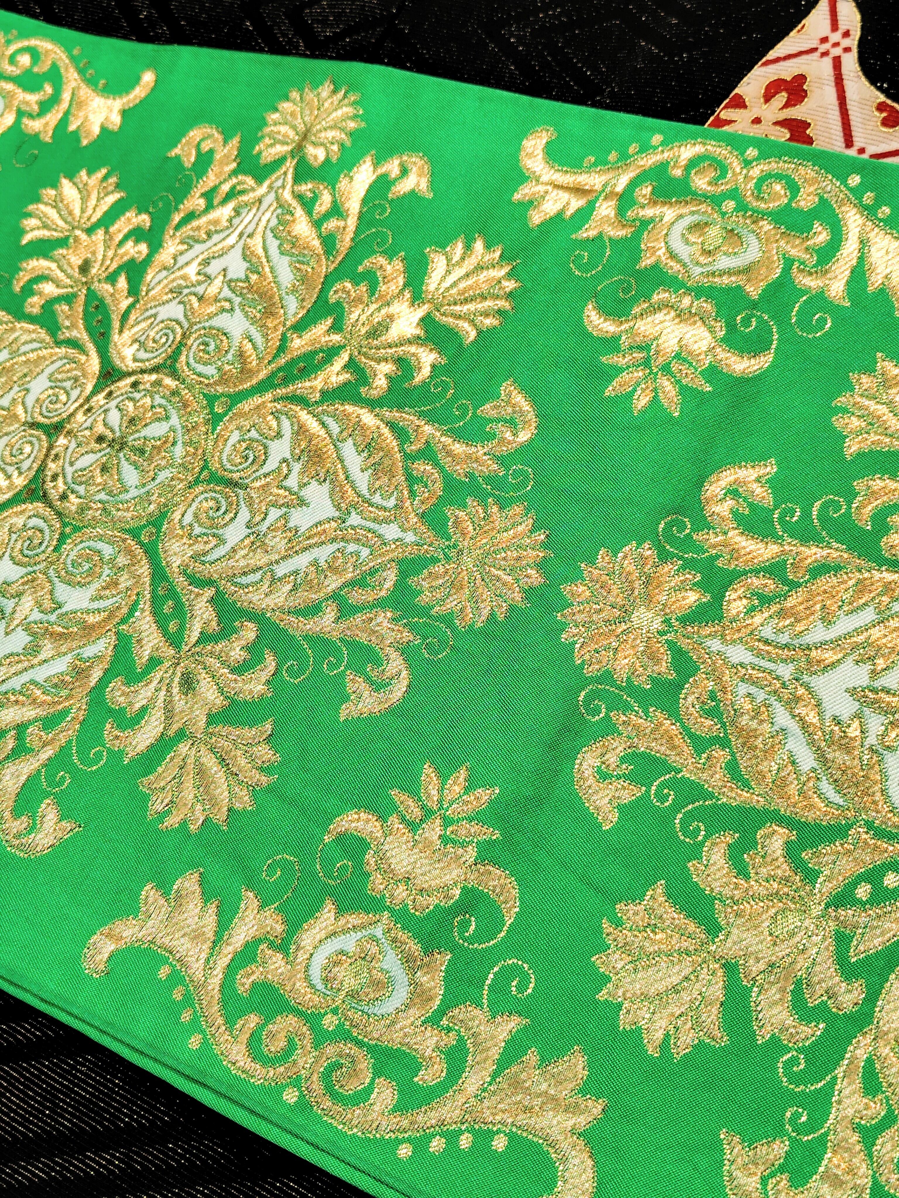はっきりとした発色の緑色ですので、コーディネートの締め色&合わせやすく万能で素敵な帯です。