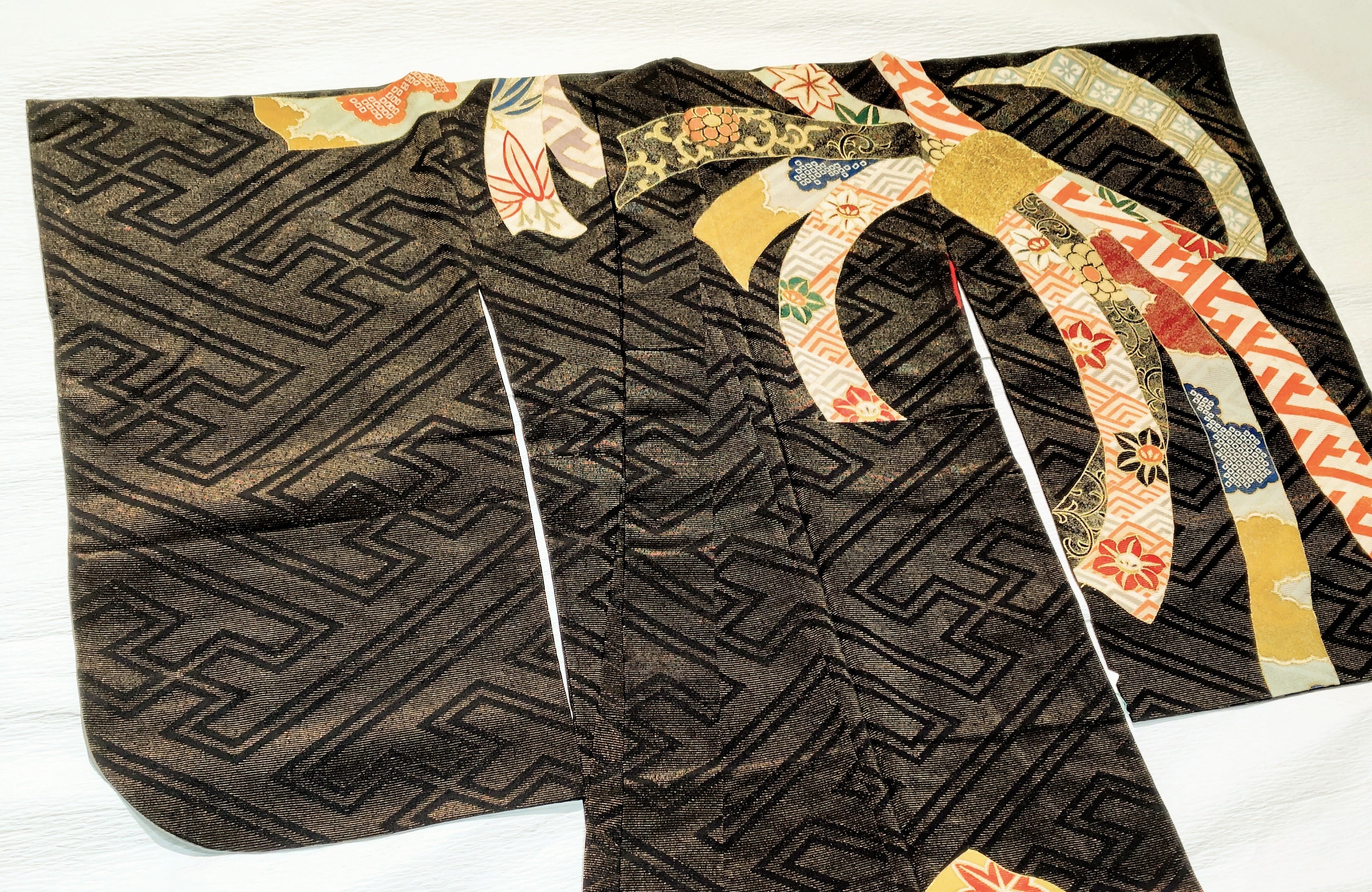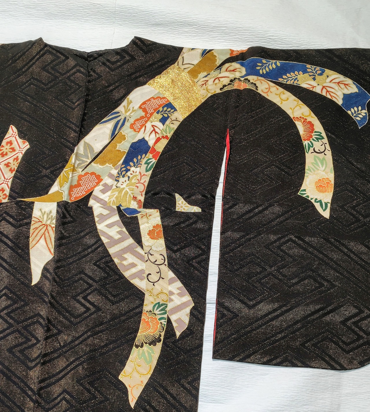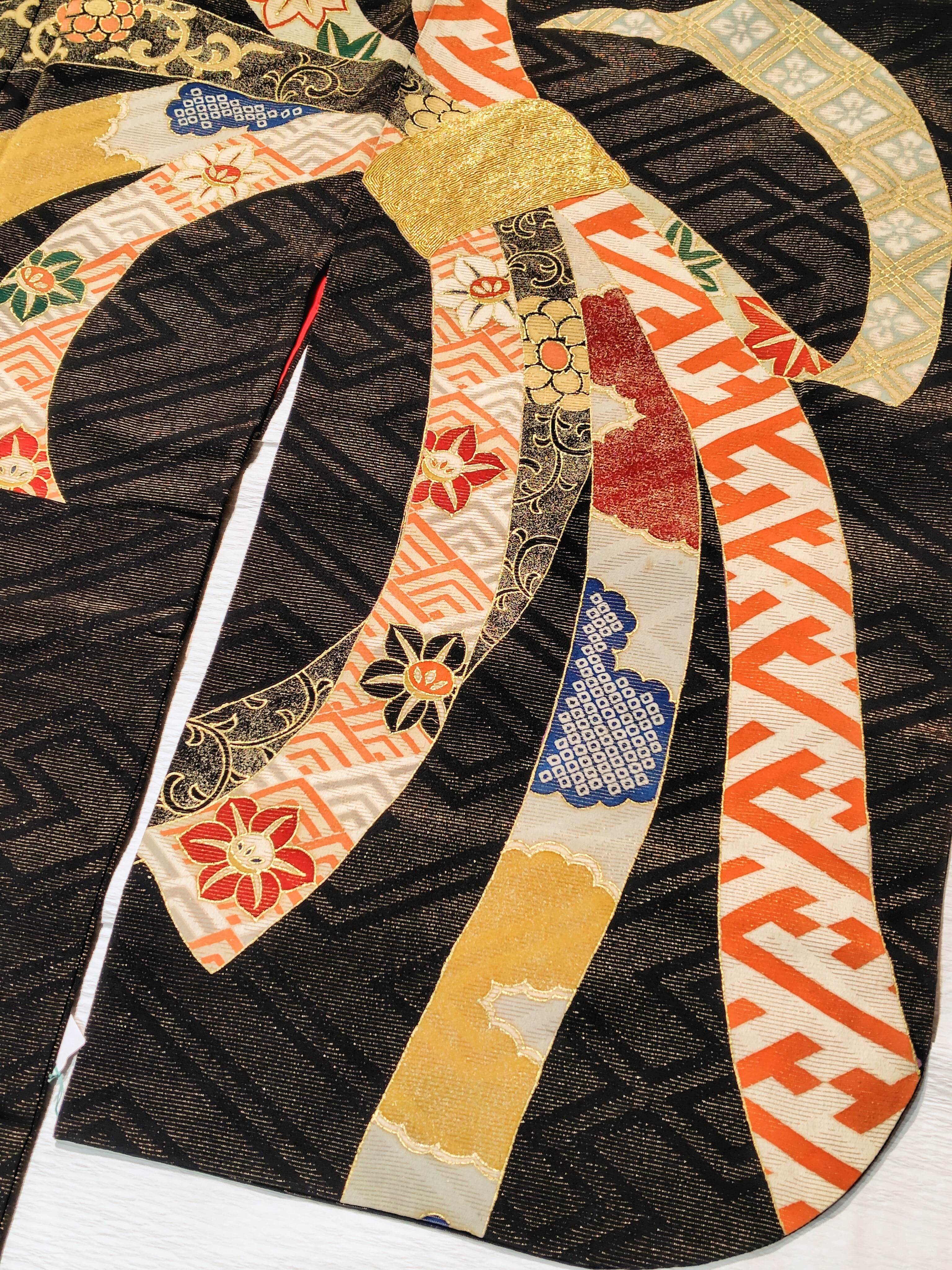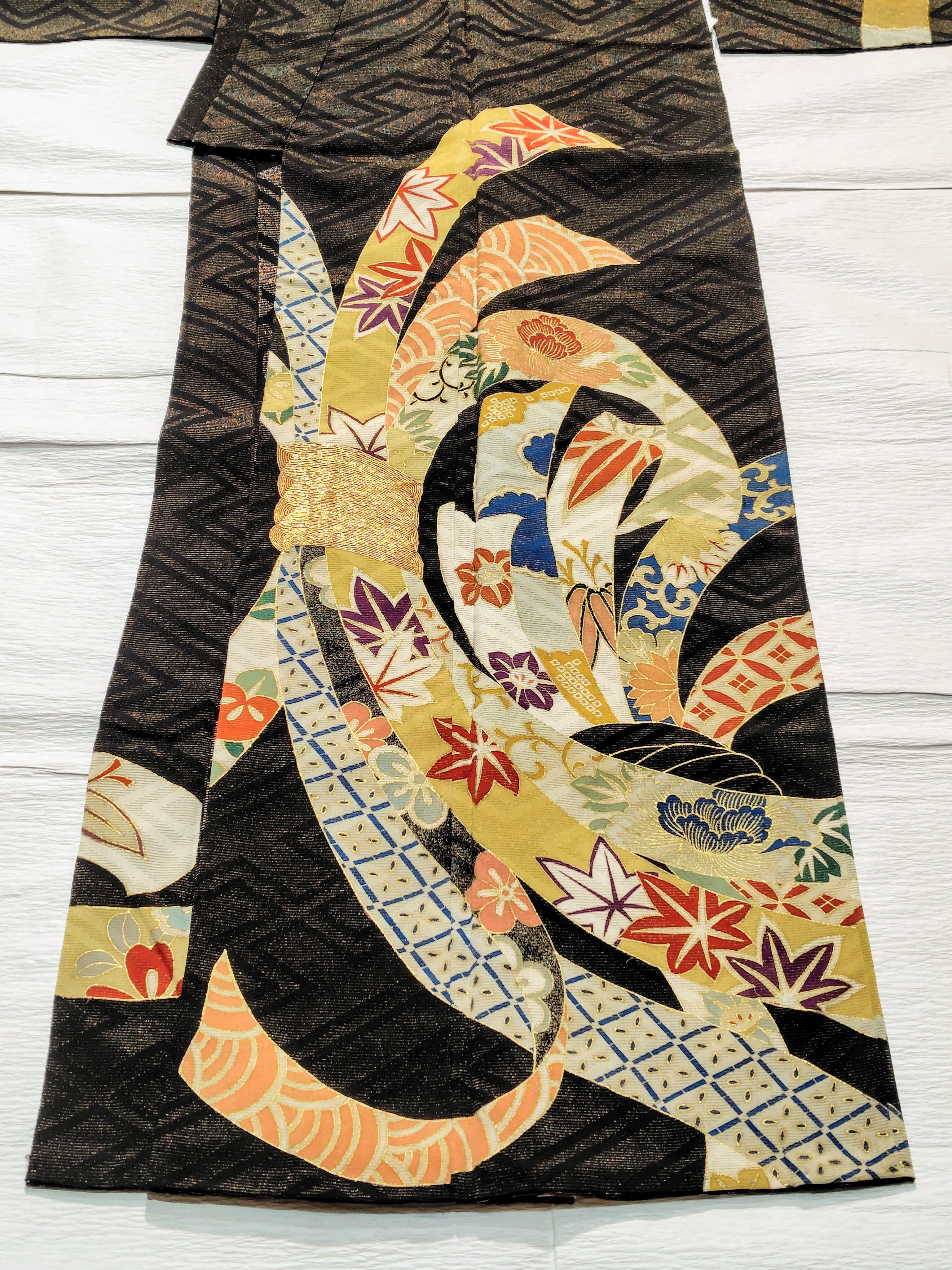 アンティーク 黒地に金糸 豪華な熨斗目柄です。