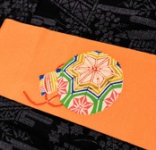 蜜柑の皮や橙色のような柔らかなオレンジ色、とても綺麗な型染めの名古屋帯です。