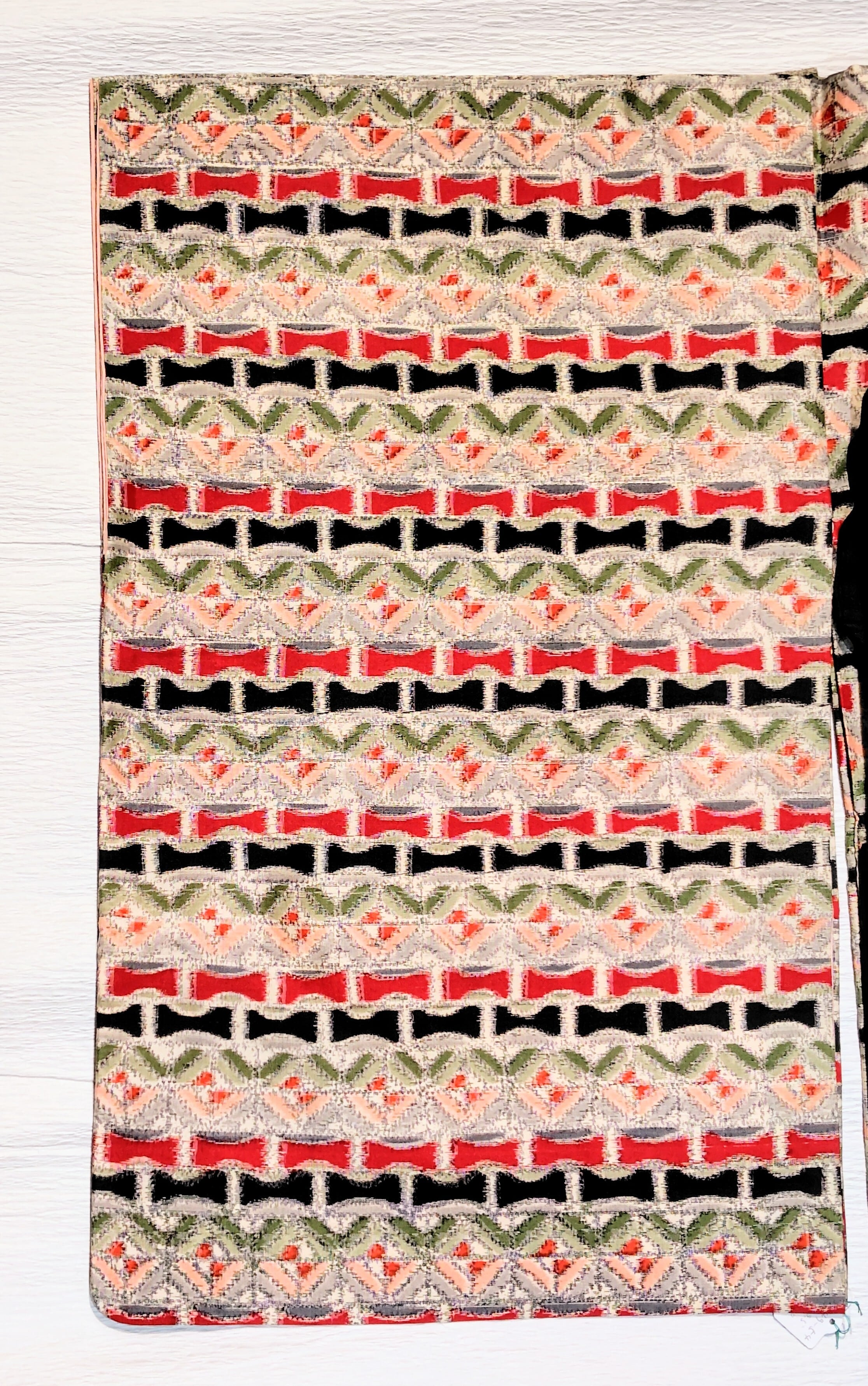 まるでチロリアンリボンのような可愛い抽象的なアンティーク銘仙。